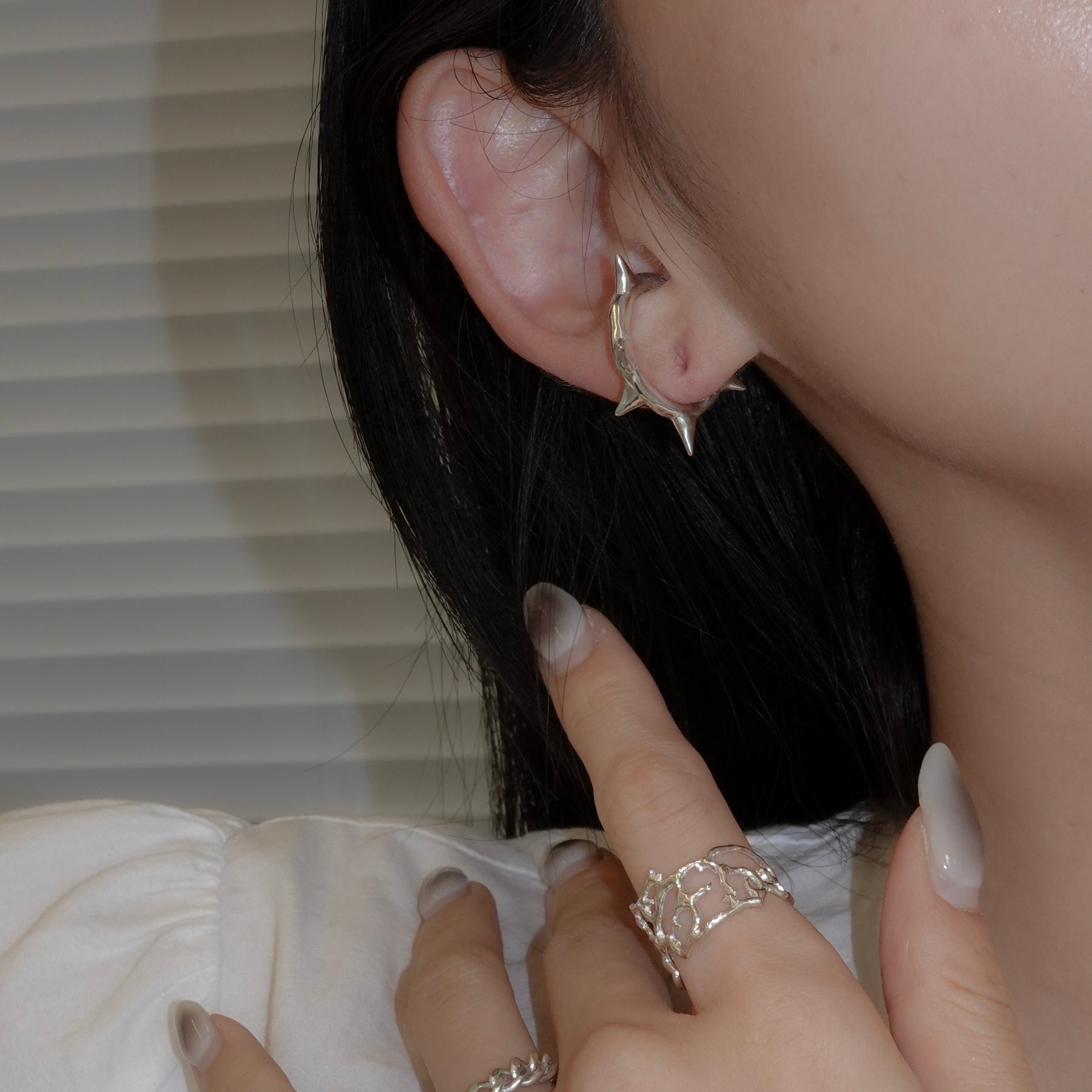 薔薇の棘をモチーフにしたイヤカフ。