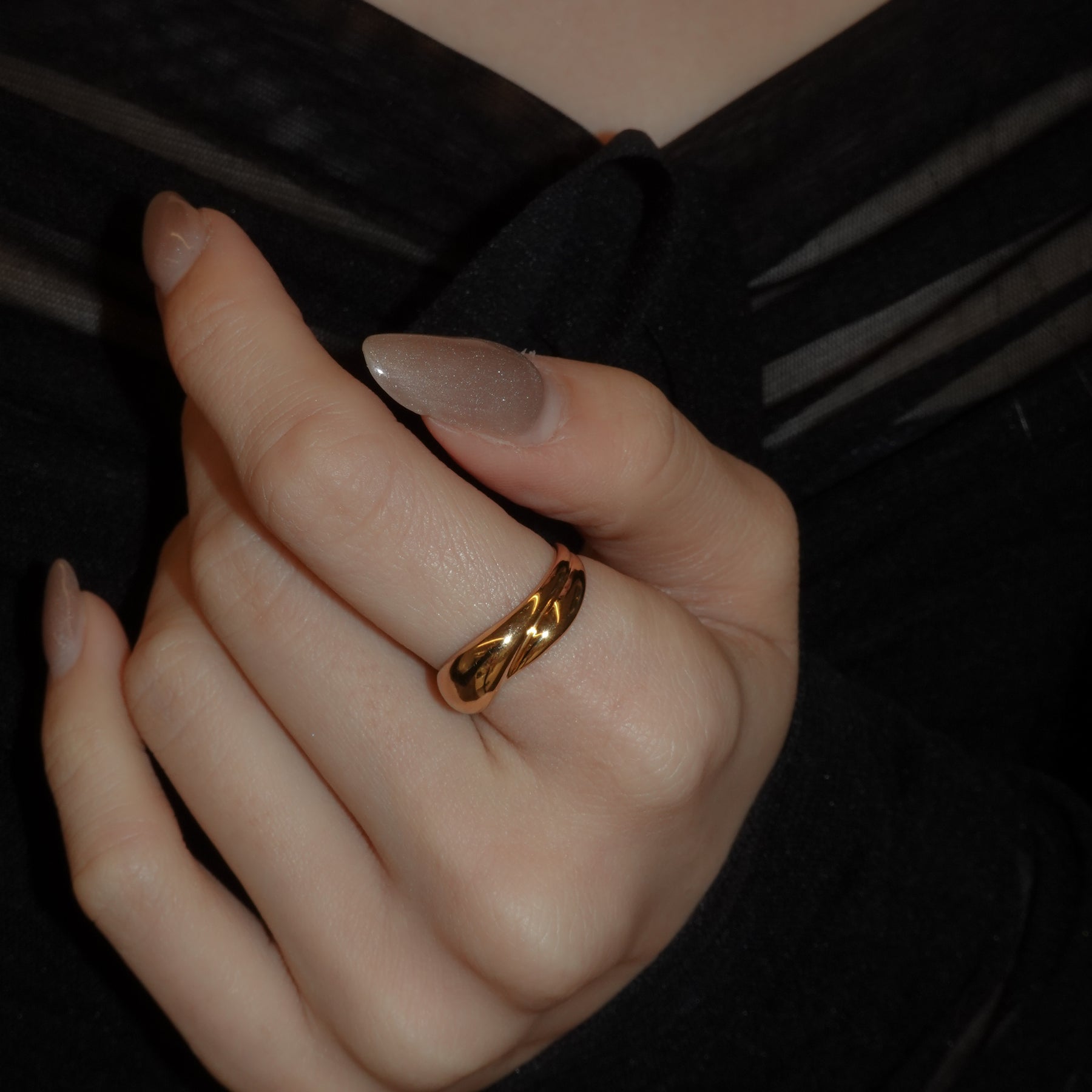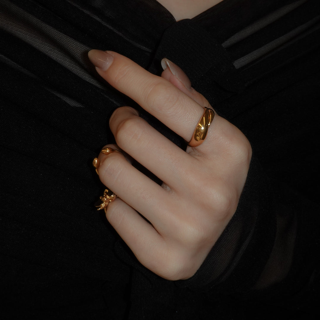 女性の身体をイメージしたリング。身体は人それぞれの愛しい個性であり、脂肪もその一つ。お腹や胸など、脂肪が密着した柔らかくもっちりとした印象をリングに落とし込んだデザイン。1つでもしっかりとボリュームがあり、主張してくれます。