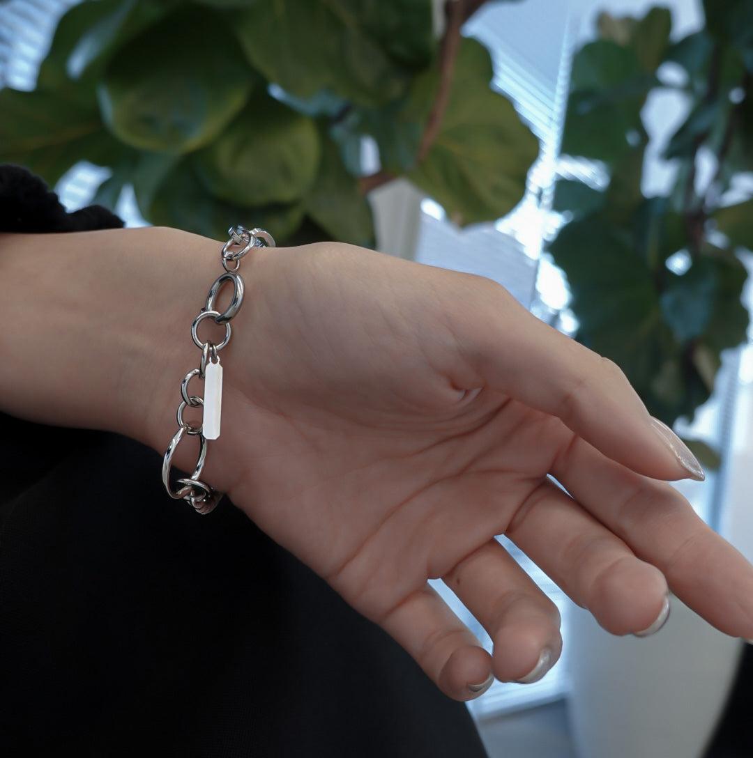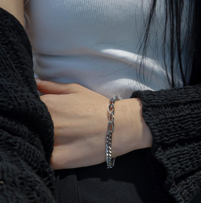 ボールドなチェーンを2種類組み合わせたベーシックなブレスレット。