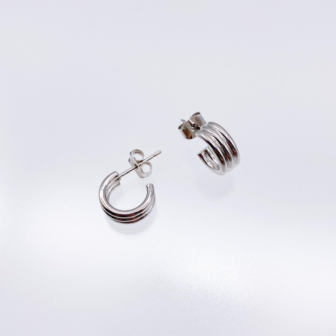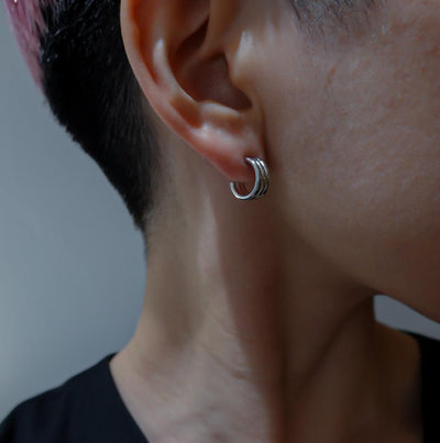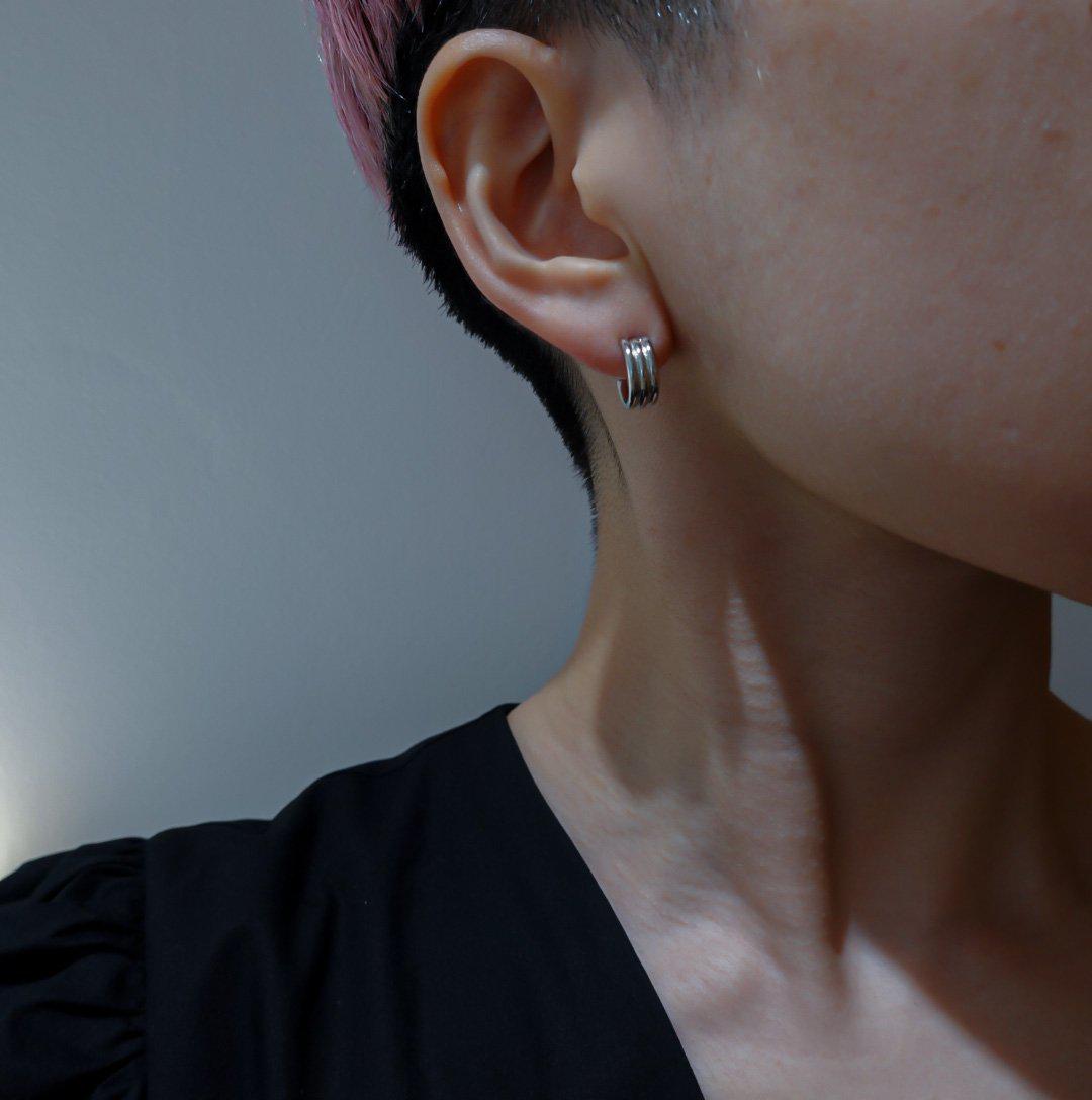 3本のラインが積み重ねられた、シンプルでエッジィなフープピアス。