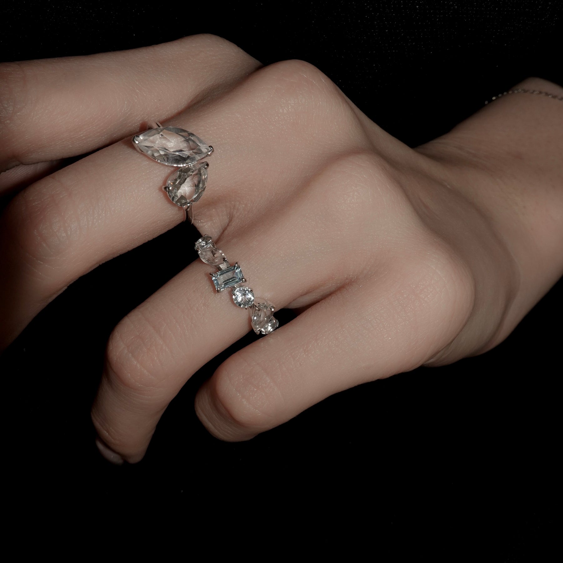 DEW RING_10KWG x White Topaz x Blue Topaz