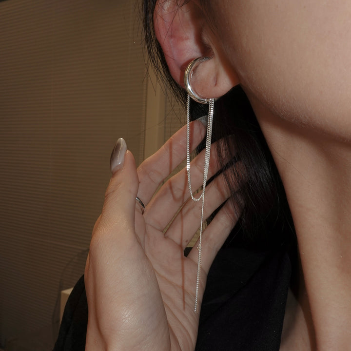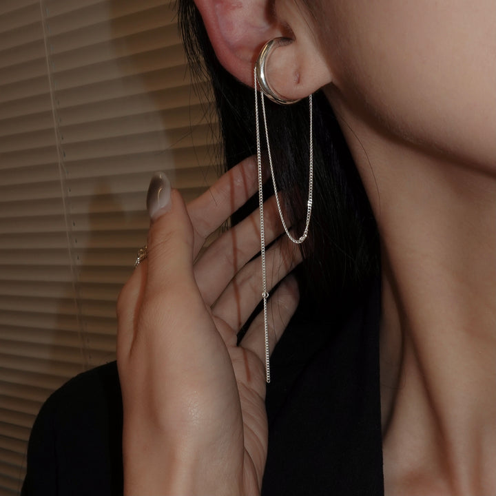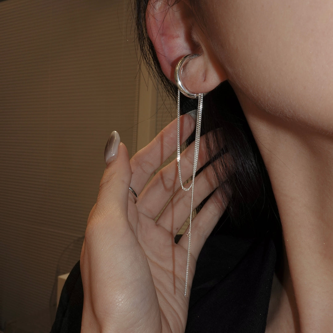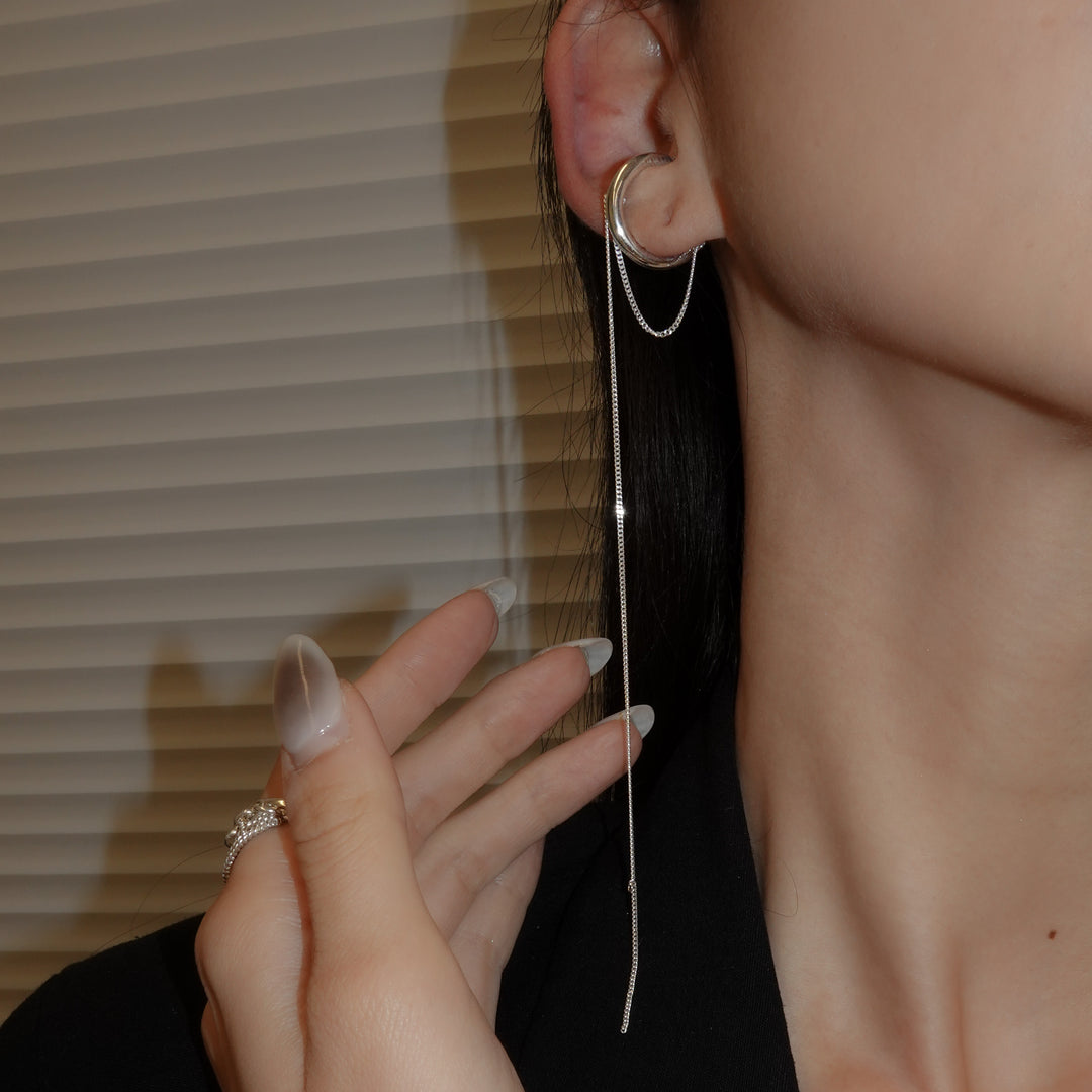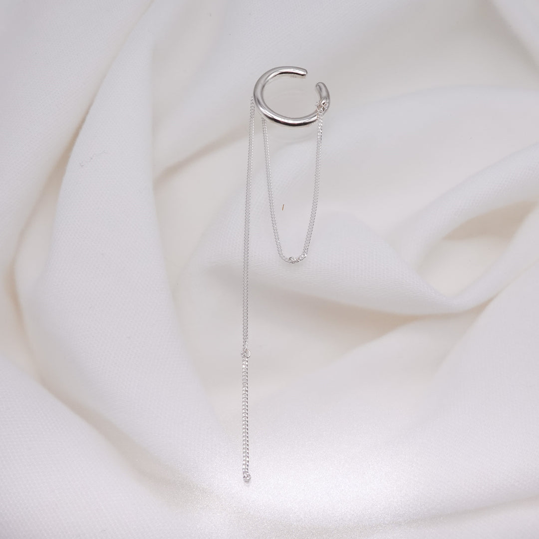 “Līlā • लीला”── “リーラ”は、サンスクリット語で「創造の自由」や「遊び心」を意味する言葉からインスパイアされたコレクション。 カオスに戯れるように揺れる、美しいチェーンのレイヤード。 最短から最長まで、絶妙なテンションを保ったまま調整ができるイヤカフです。