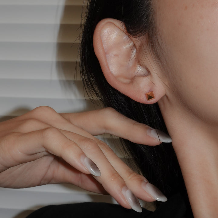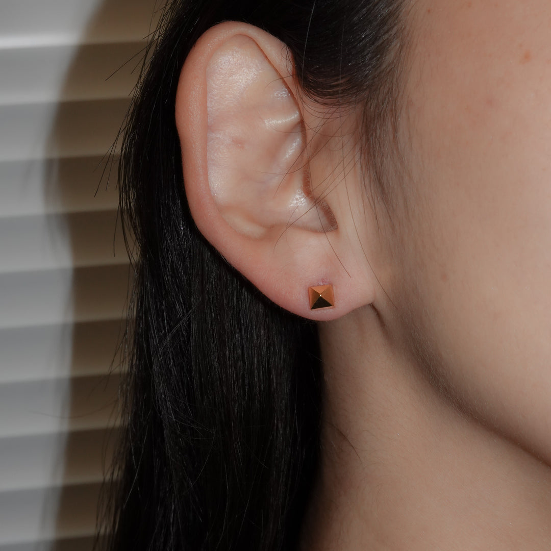 丁寧な面取りを施したシャープな面が、動きに合わせてキラッと反射するミニマルなスパイクピアス。 シンプルながら存在感を放ち、日常使いから特別なシーンまで幅広くご使用頂けます。