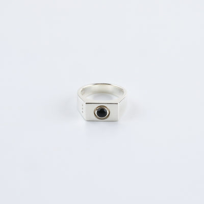 オニキス石を使用したシグネットリング。シンプルな形のシグネットリングとオニキス石が手元に上品な存在感をもたらします。オニキスは魔除けの効果があると言われています。男女を問わずお使いいただけるユニセックスアイテム。