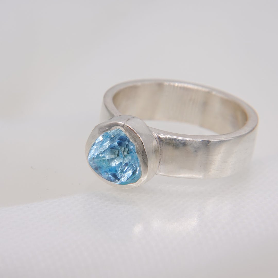 トリリオンカットのブルートパーズをセットしたシンプルなリング。