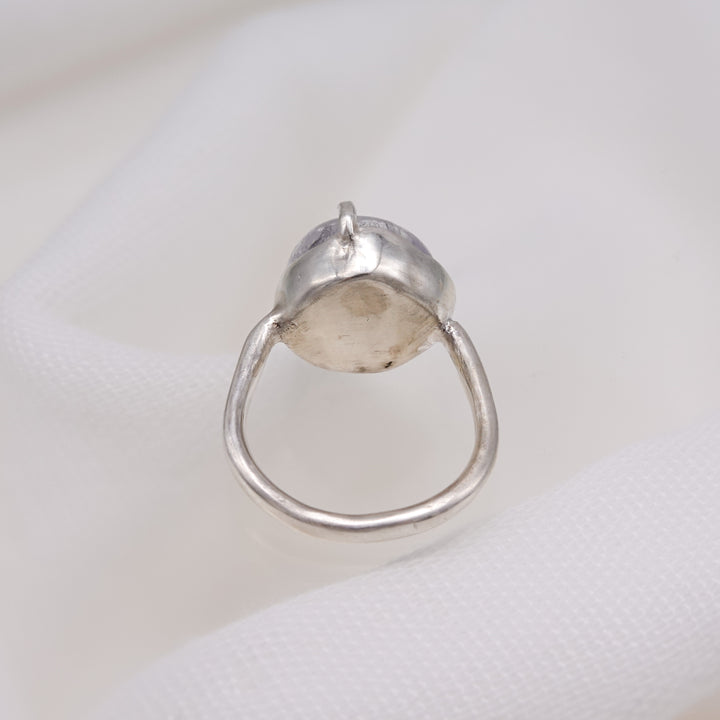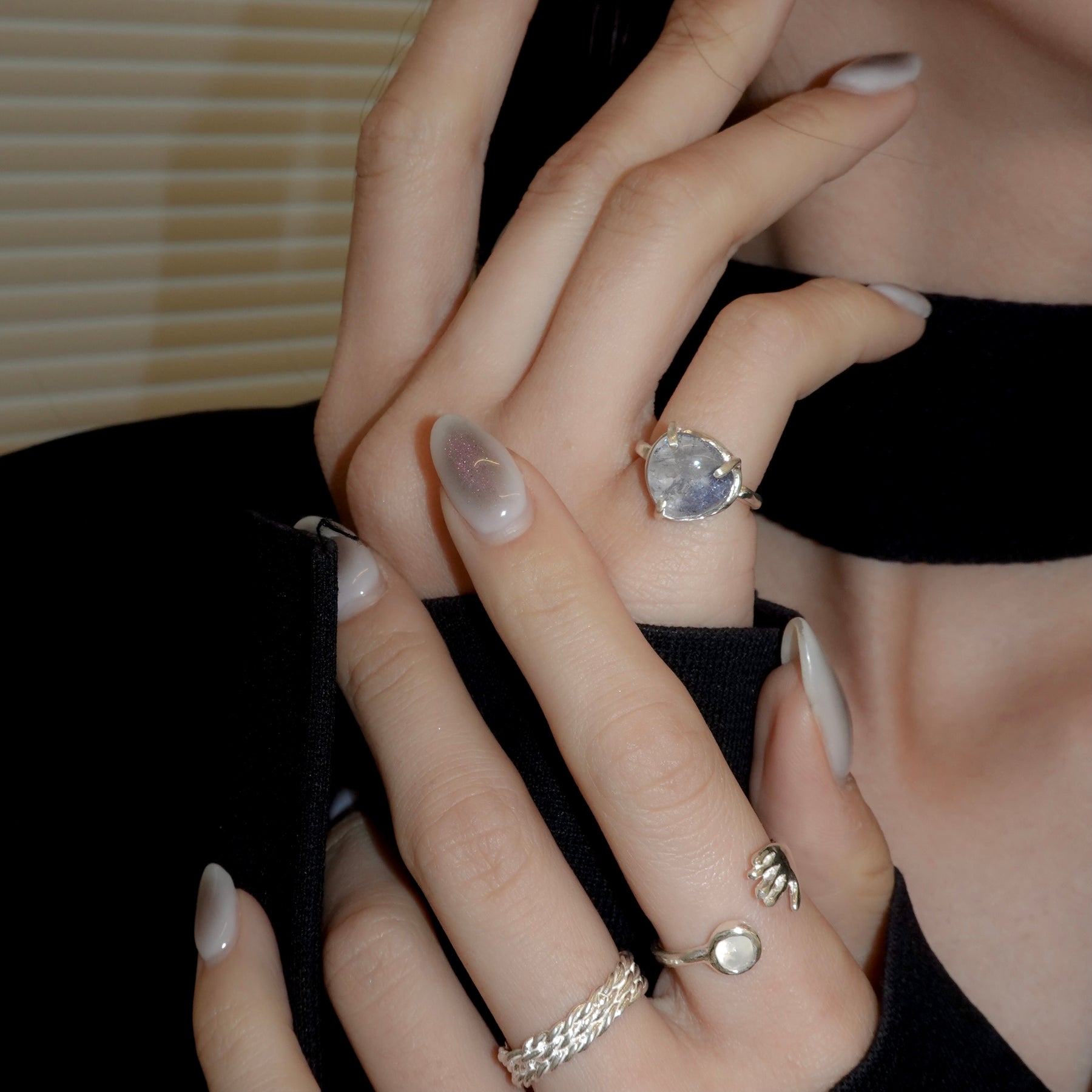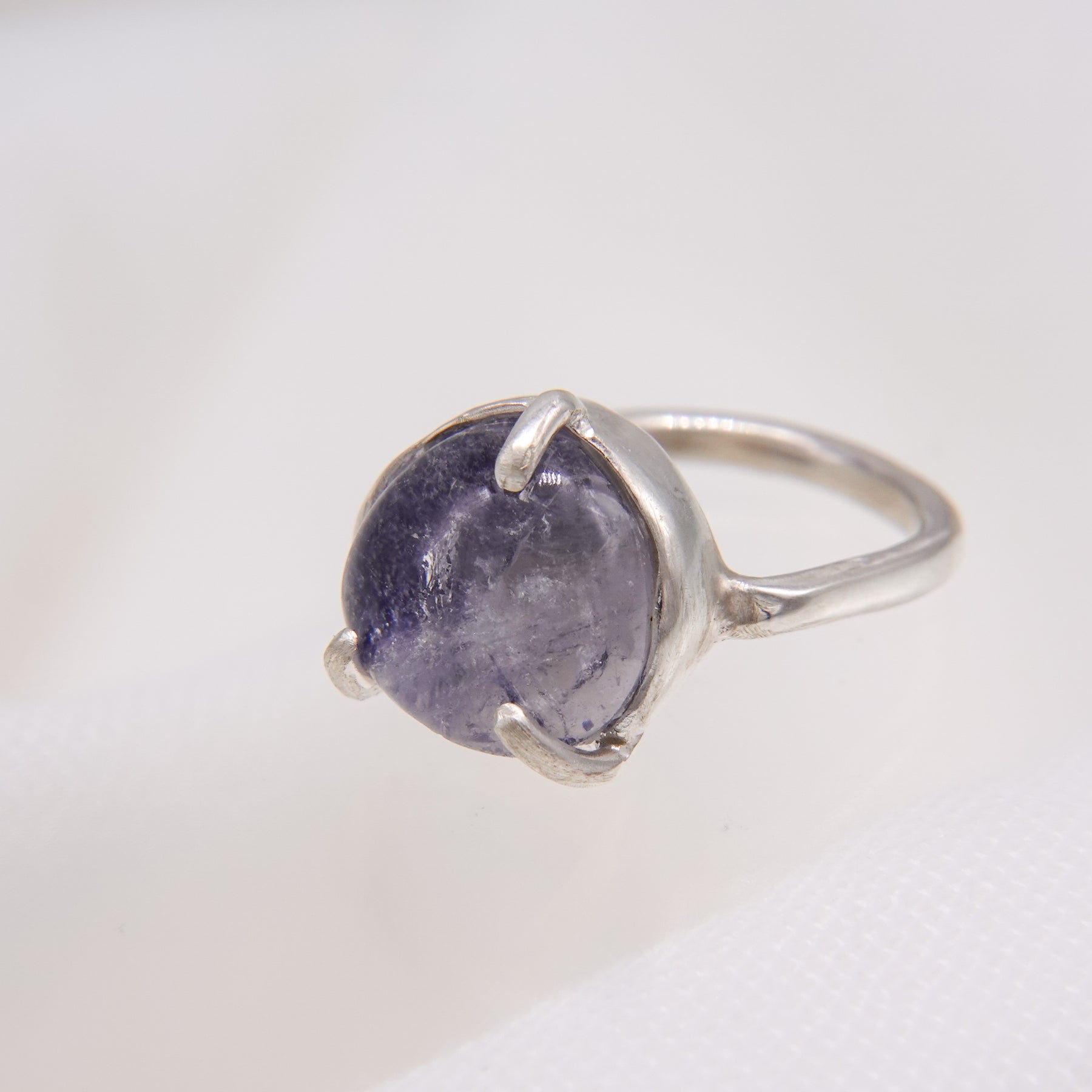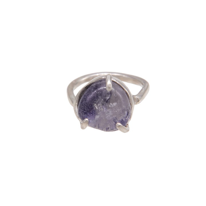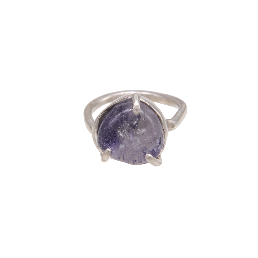 デュモルチェライトインクォーツの石をあしらったシンプルな一点もののリング。 溶けない氷の結晶を閉じ込めたようなインクルージョンが魅力的。