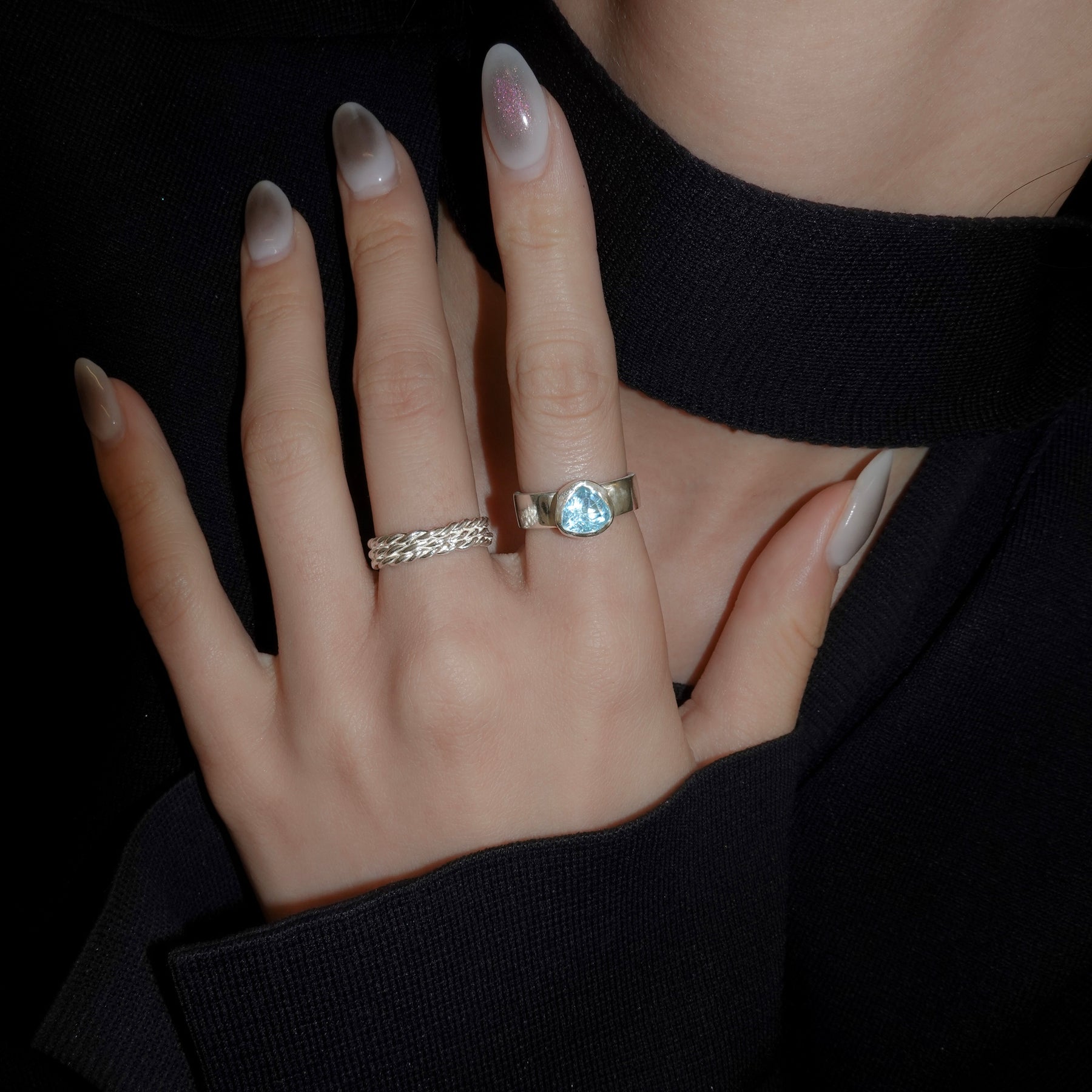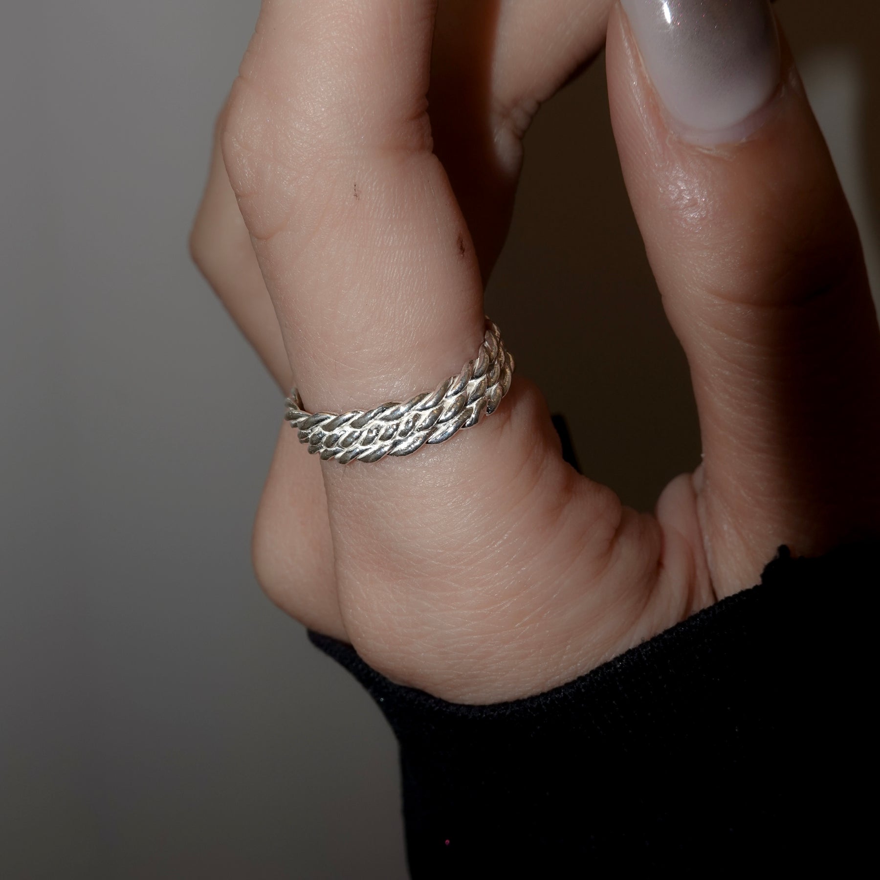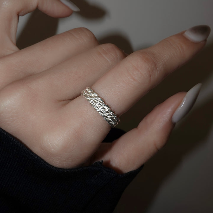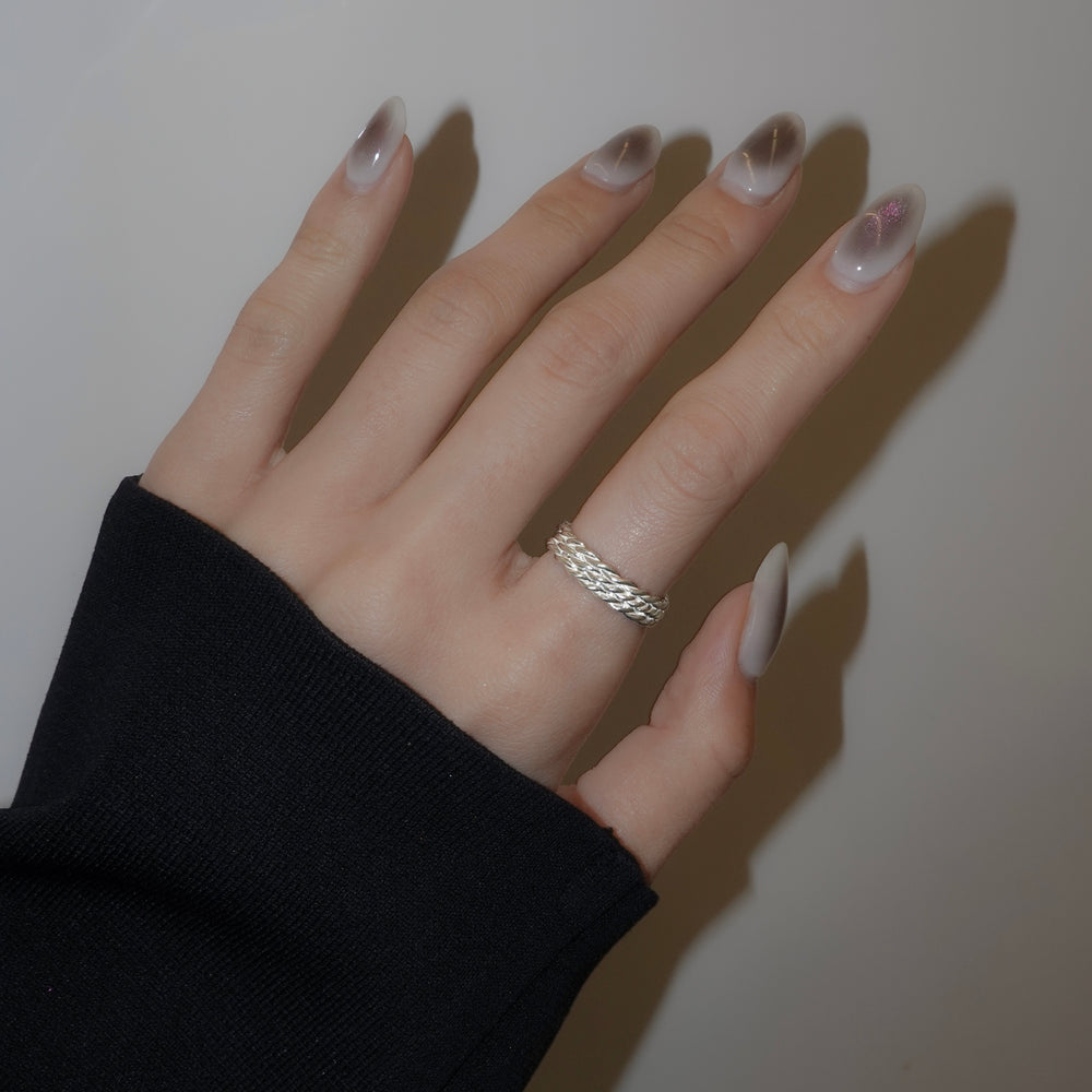 捻ったロープを3つ重ねたリング。着用感も軽く、お手持ちのリングとの重ね付けもしやすいアイテム。
