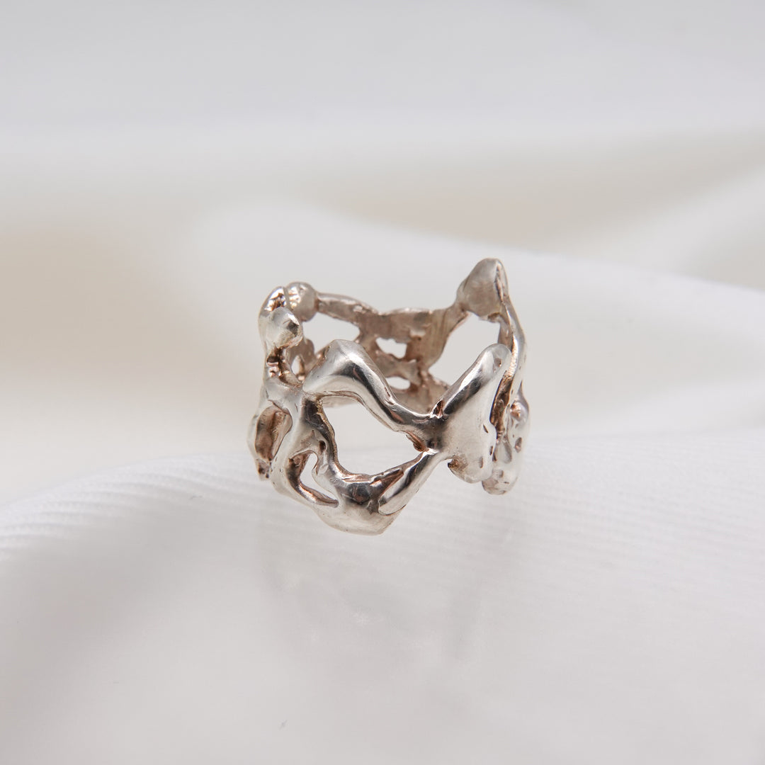 裁縫道具の指貫からインスパイアされたリング。 本物と同様に第一、第二関節のファランジリングとしてお使いいただけます。 どこを手前に持ってきても様になるデザインなので、ご自身の気分に合わせてお楽しみいただけます。