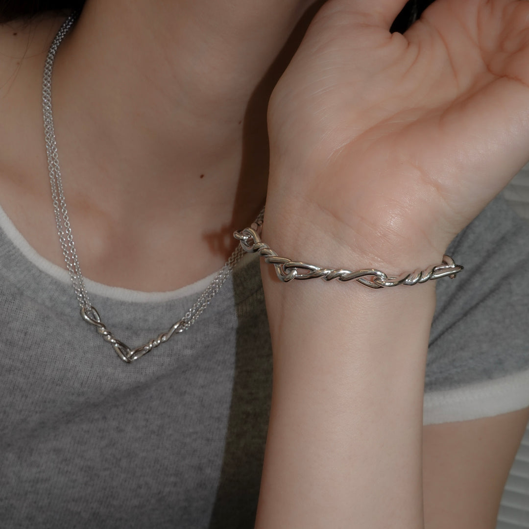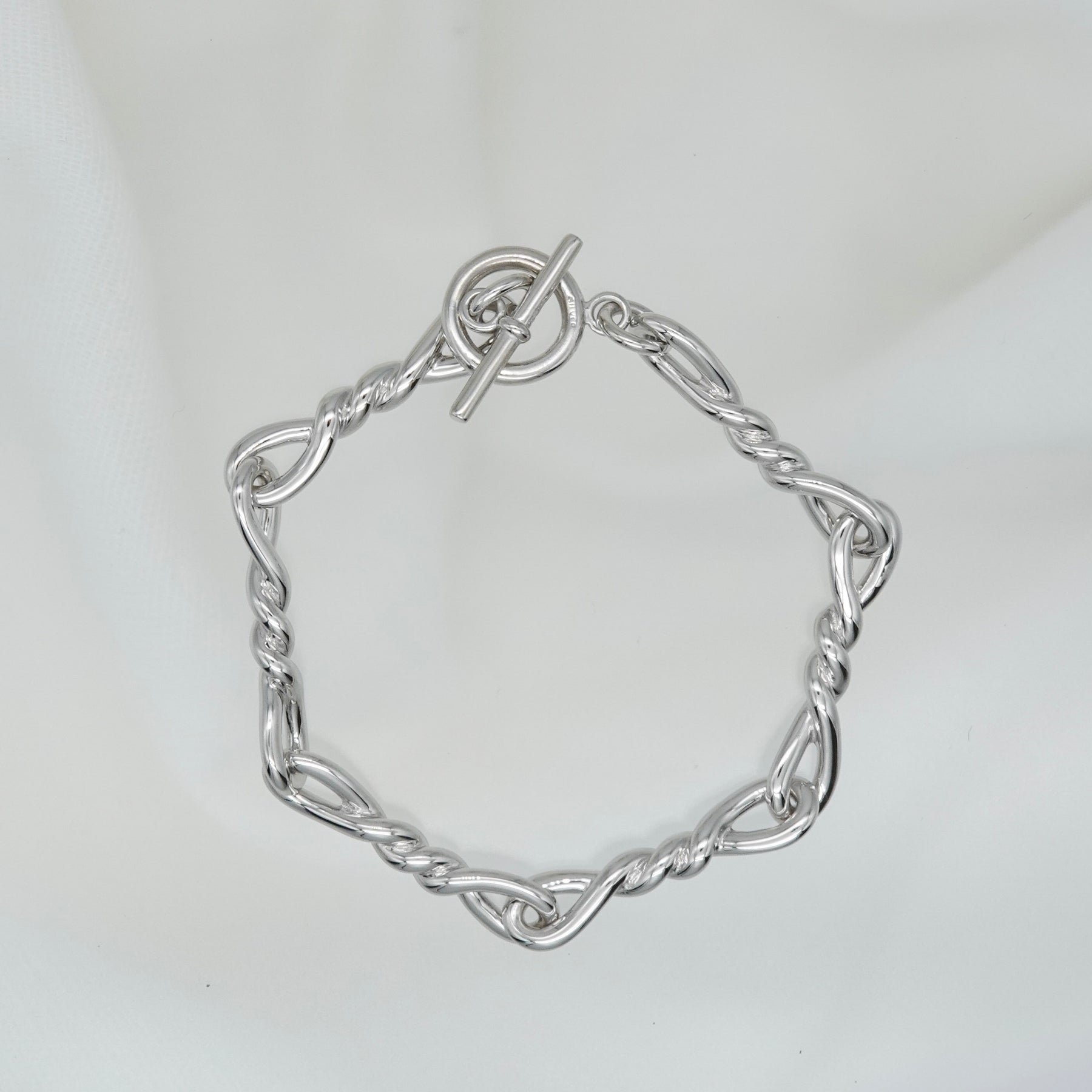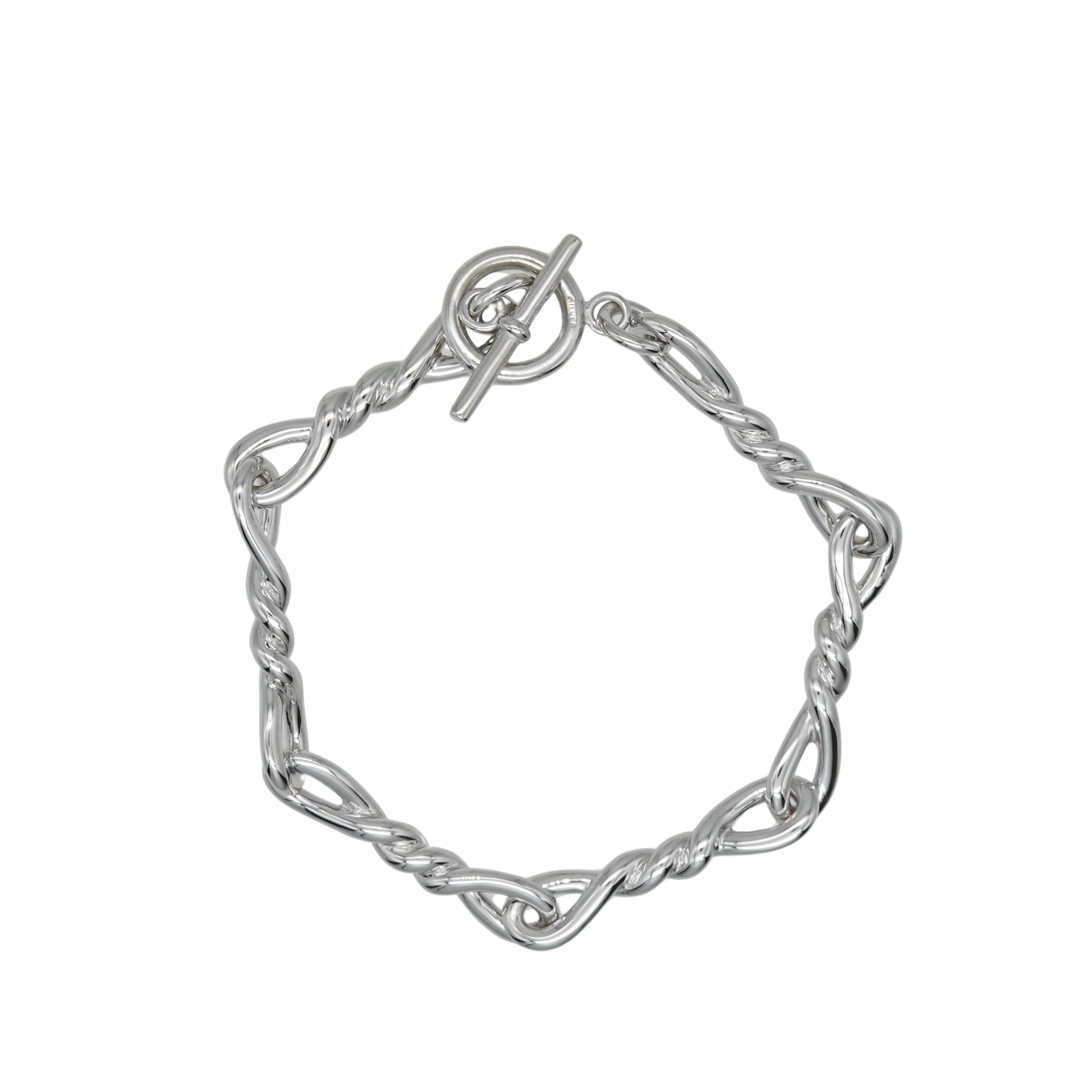 ねじれたモチーフが連なる、ユニセックスで着用できるデザインのブレスレット。2サイズよりお選びいただけます。
