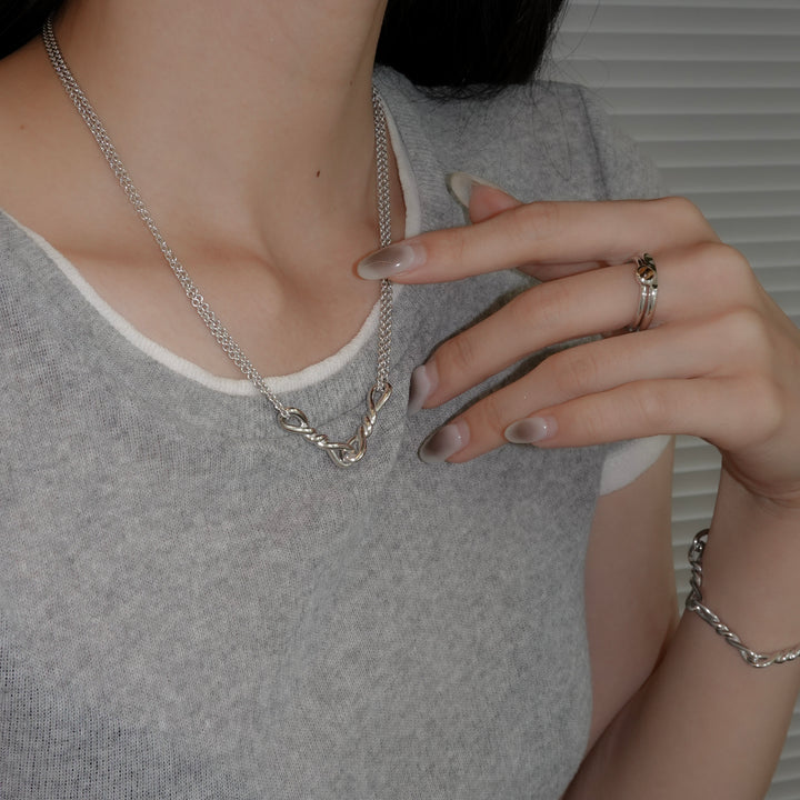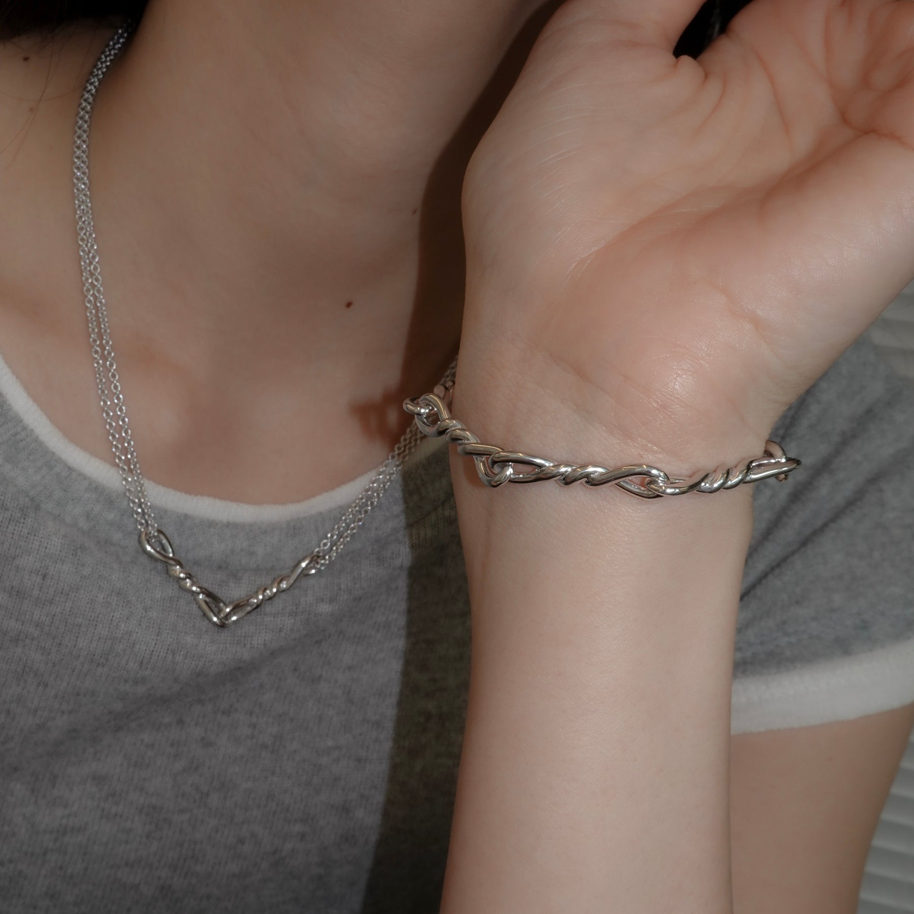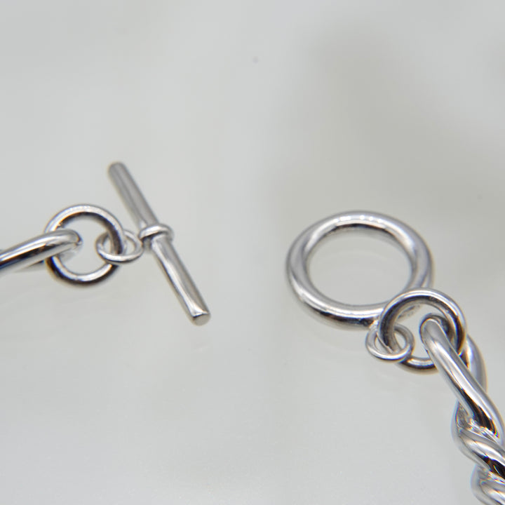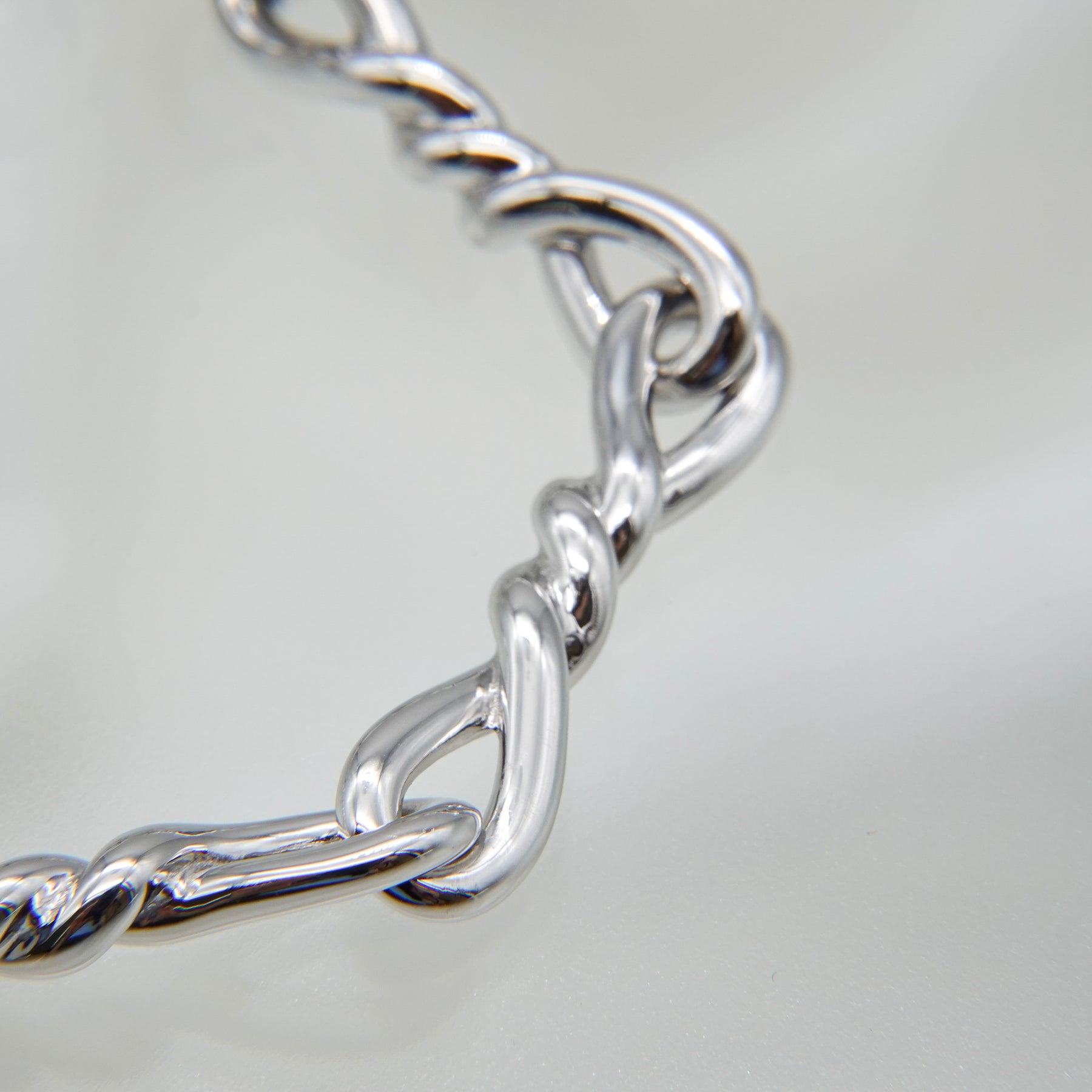 ねじれたモチーフが連なる、ユニセックスで着用できるデザインのブレスレット。2サイズよりお選びいただけます。