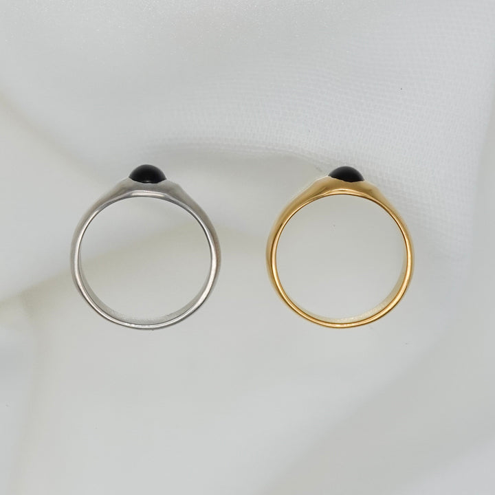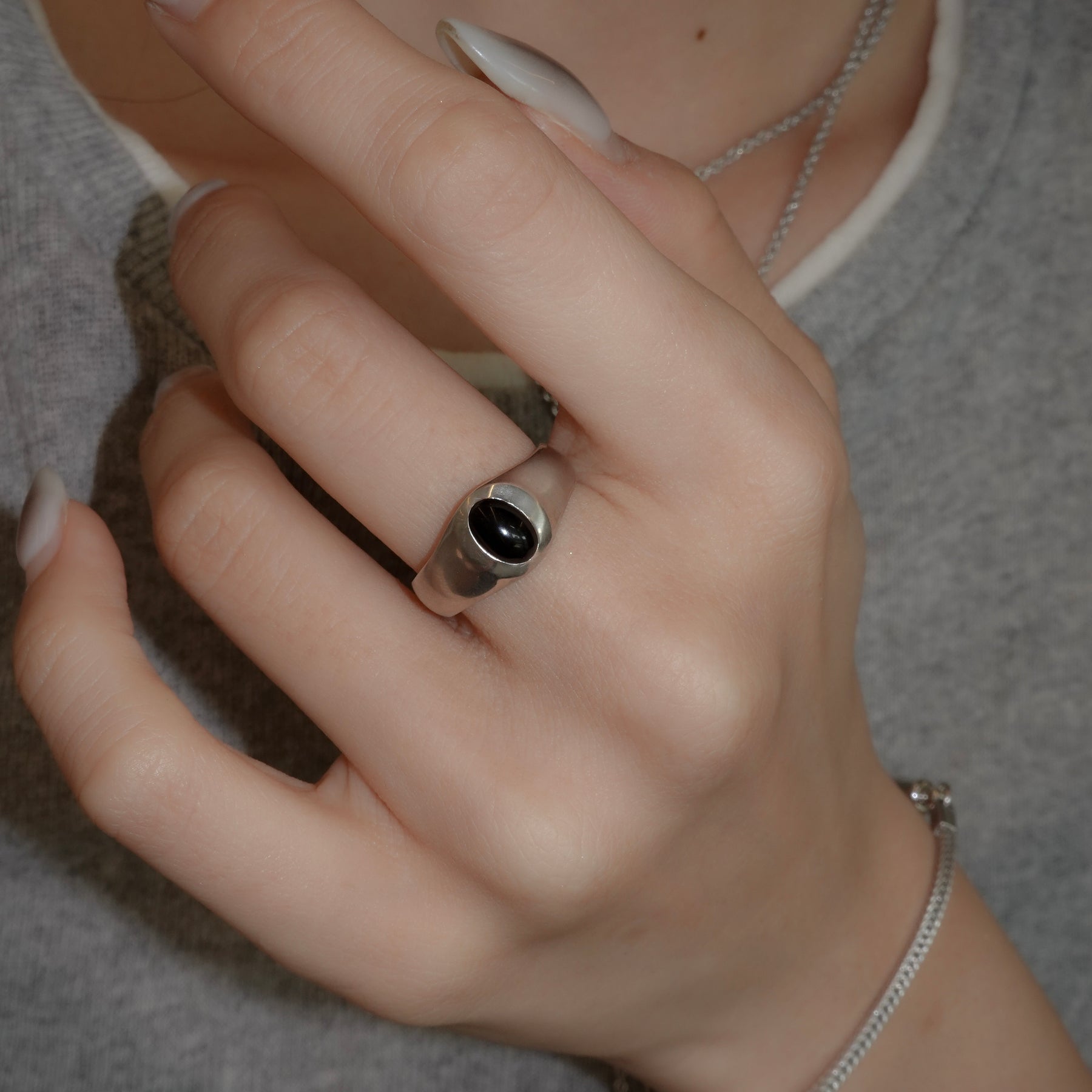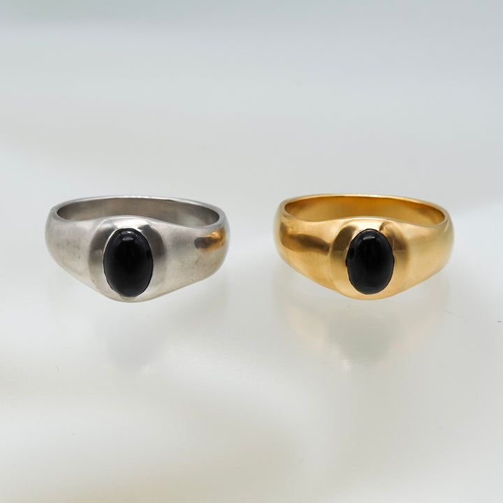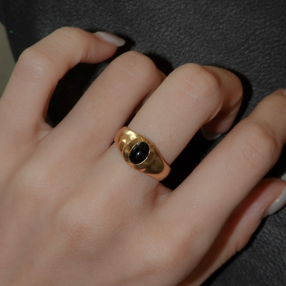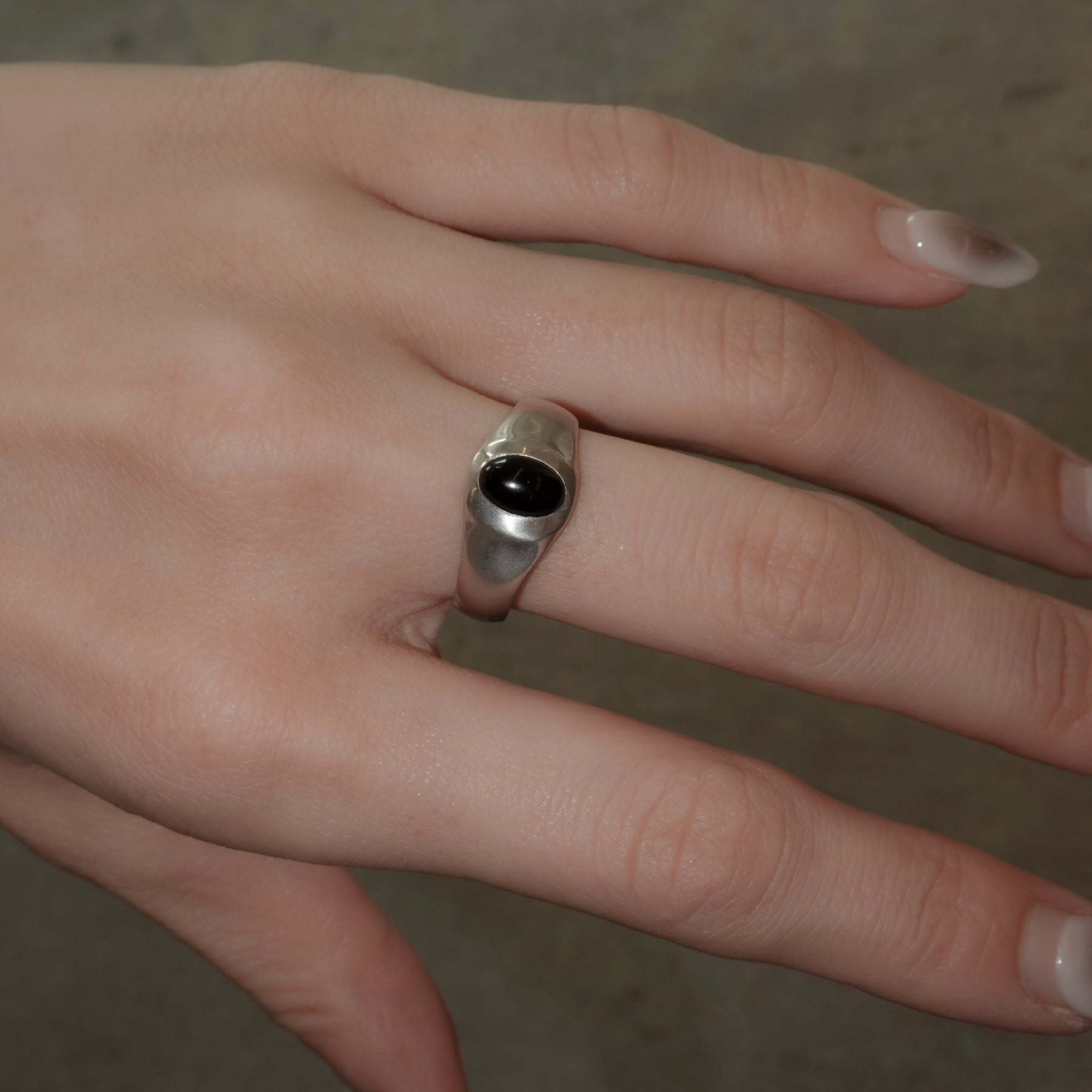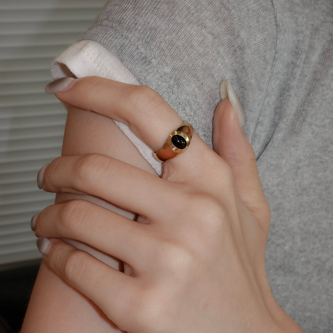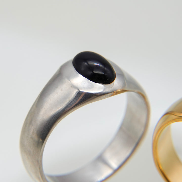 オーバル型のオニキスがポイントになったリング。アームはマット加工が施されています。
