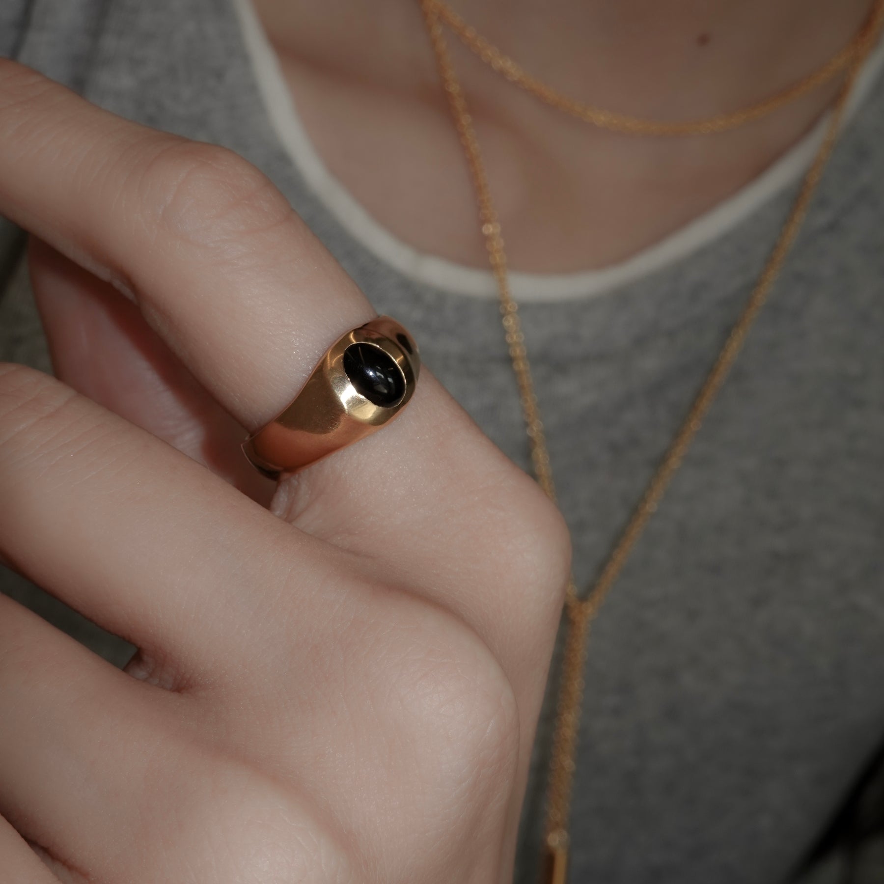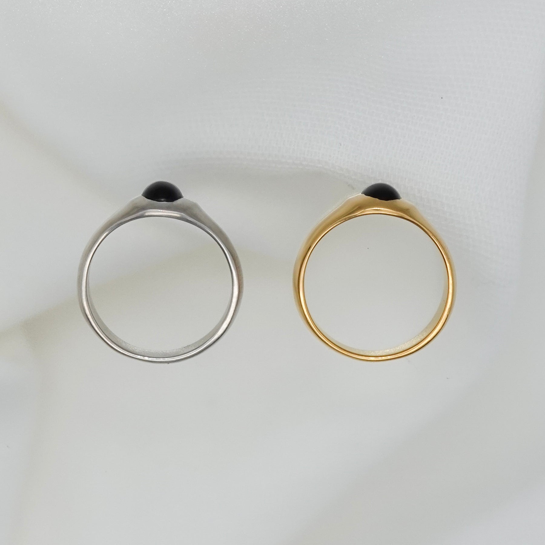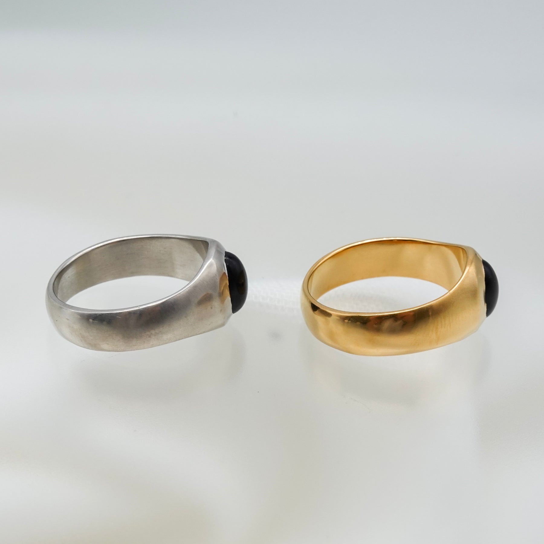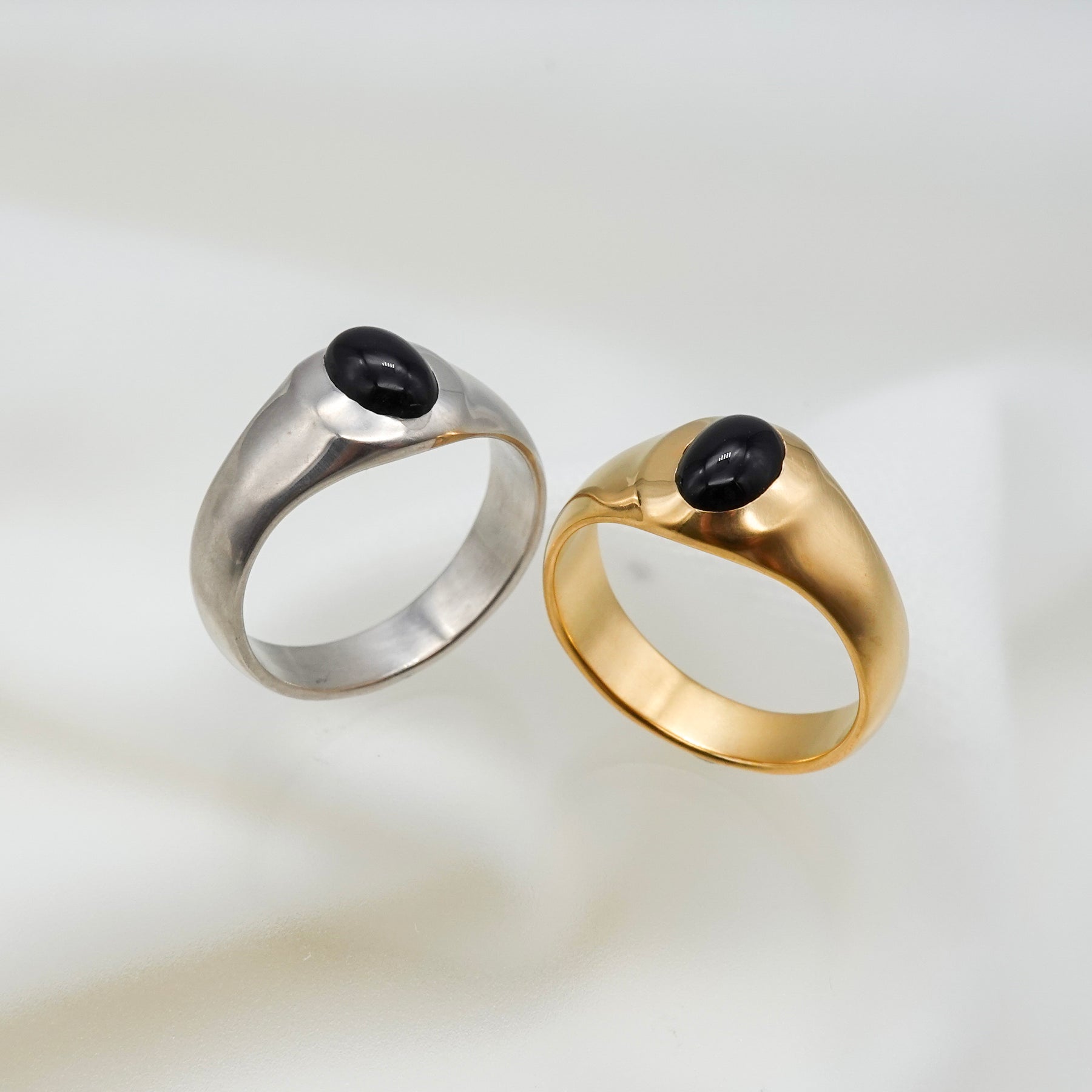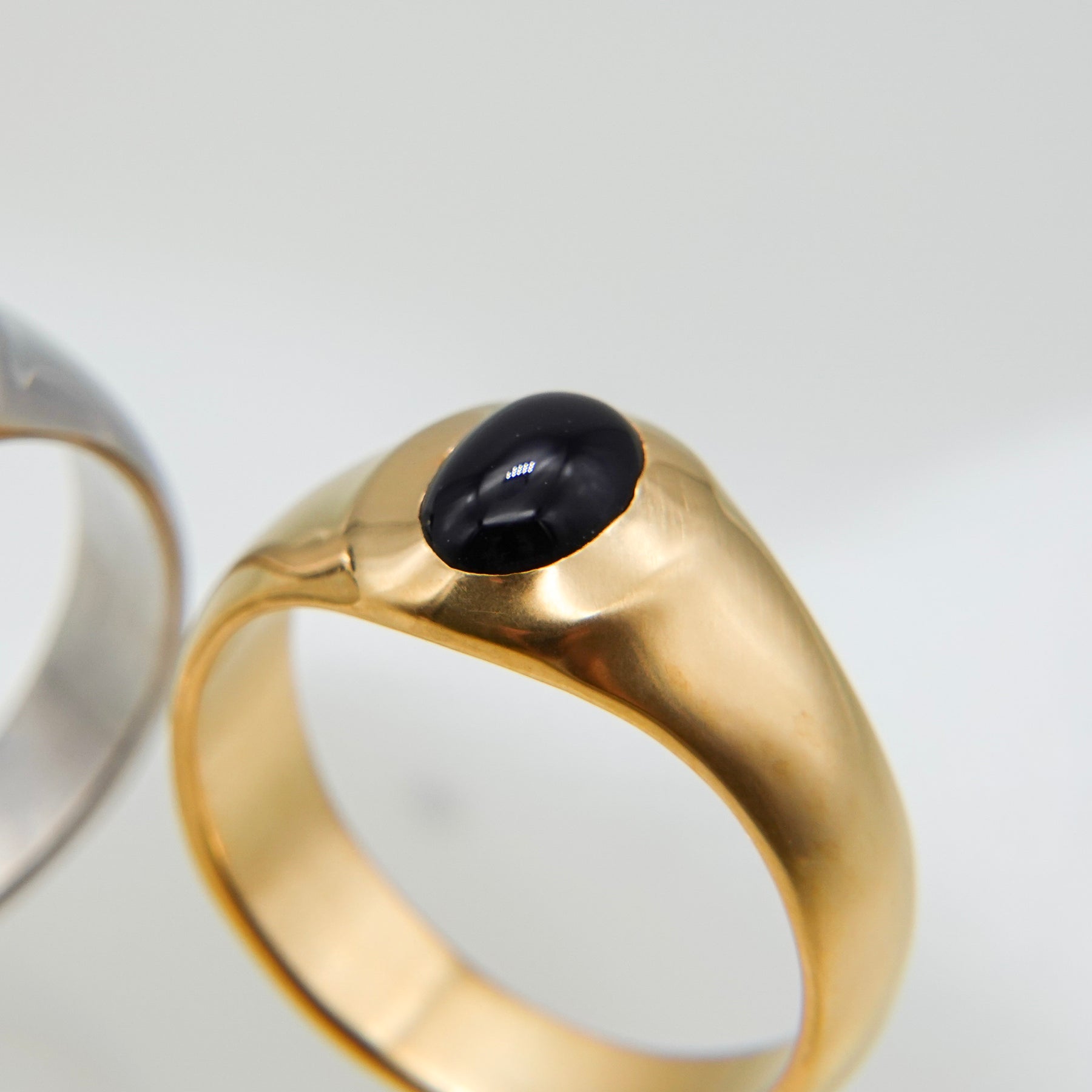 オーバル型のオニキスがポイントになったリング。アームはマット加工が施されています。