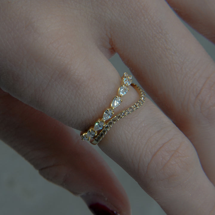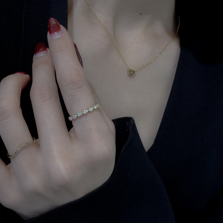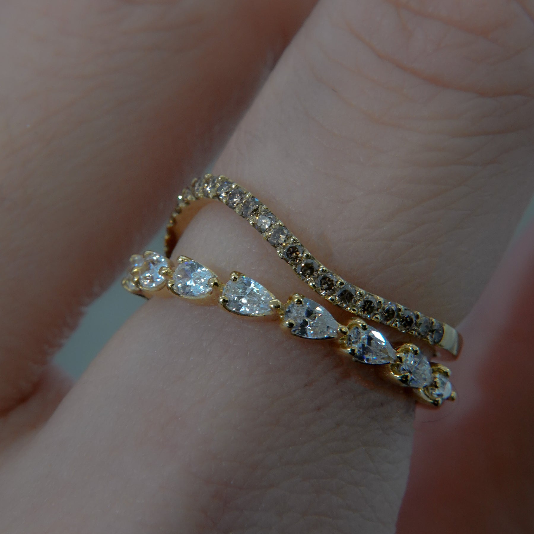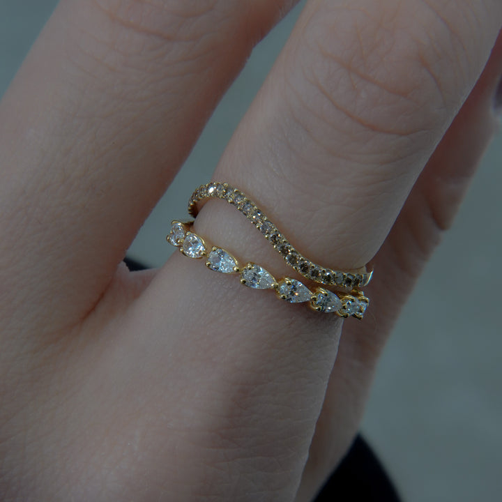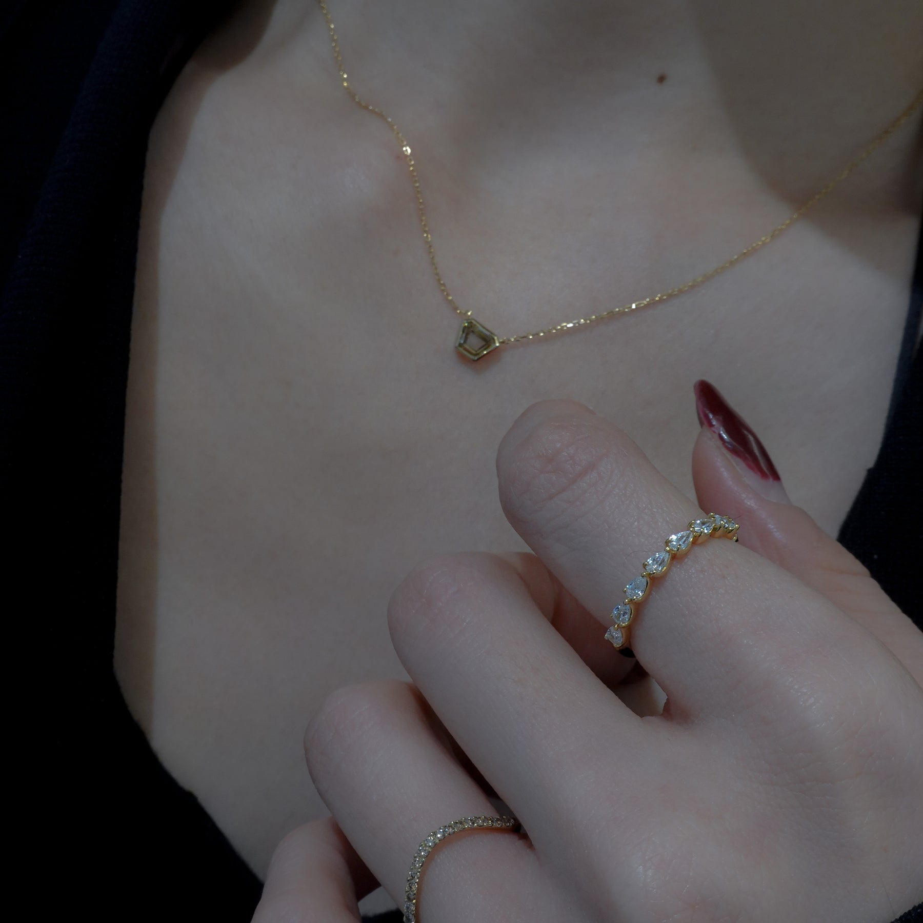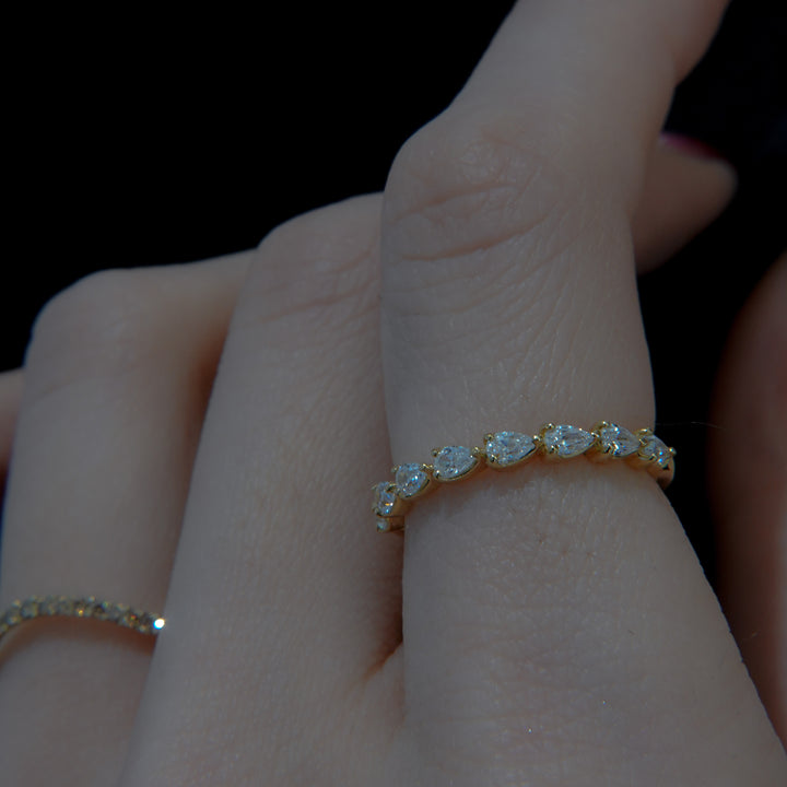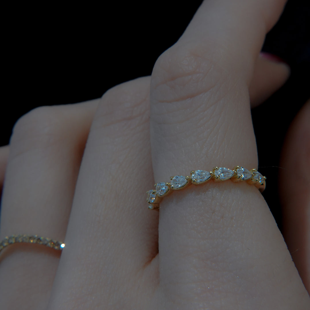 涙型のペアシェイプカットを使用したエタニティリング。人とは被りづらい形でお探しの方におすすめです。