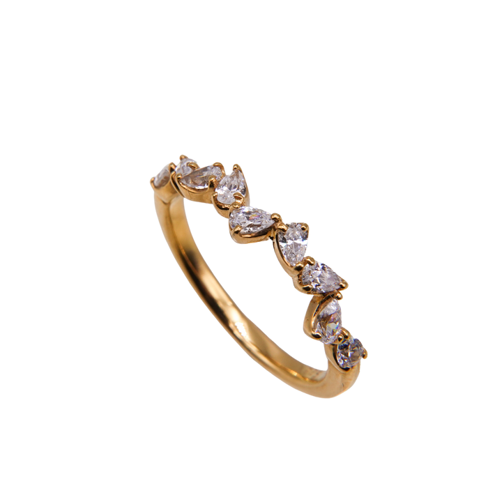 涙型のペアシェイプカットランダムに並べてデザインされたリング。人とは被りづらい形でお探しの方におすすめです。