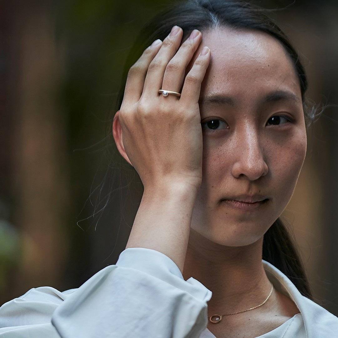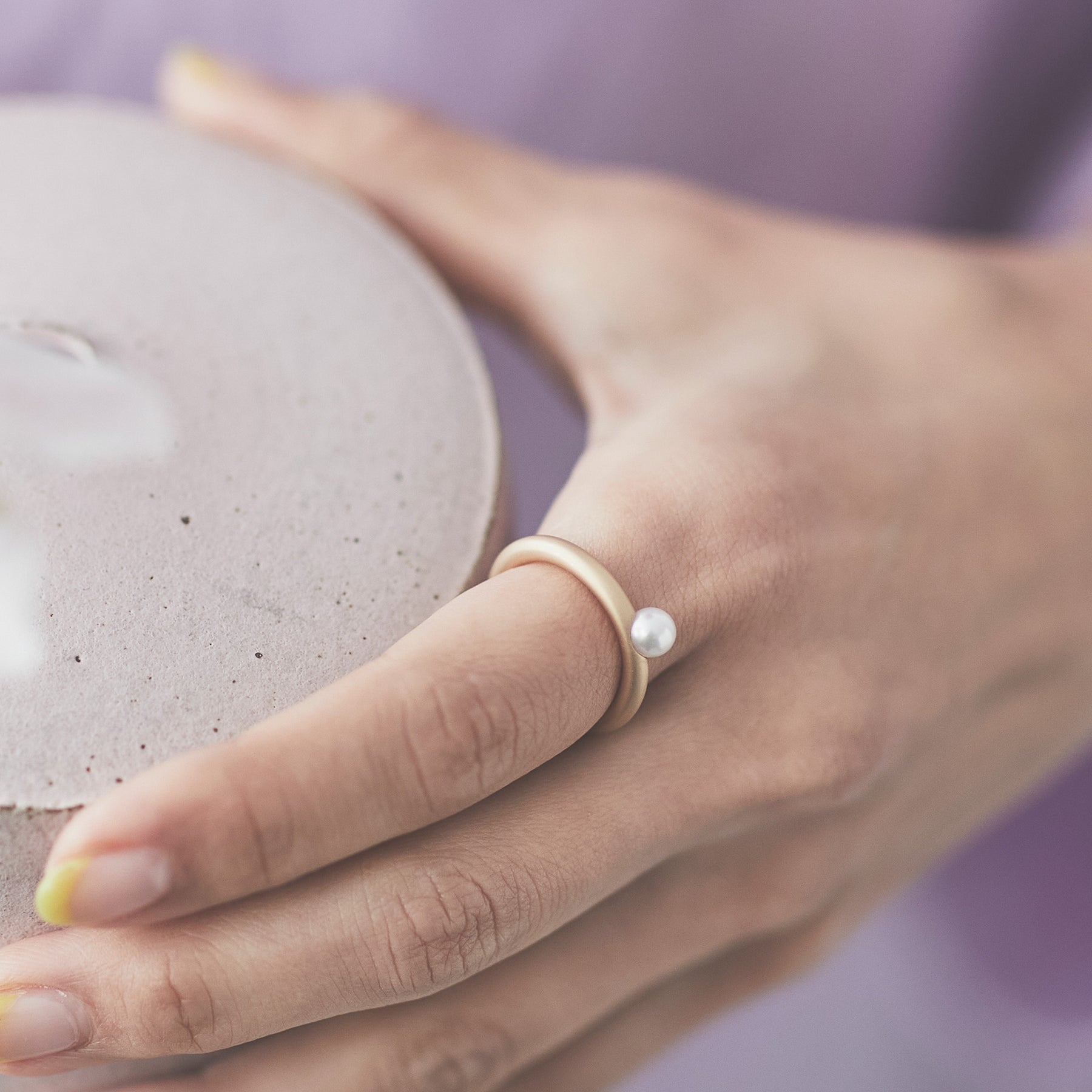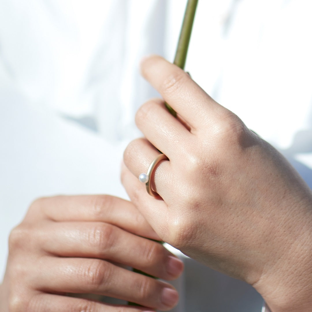 少しバランスを崩した位置にあるパールがアクセントになったデザイン。