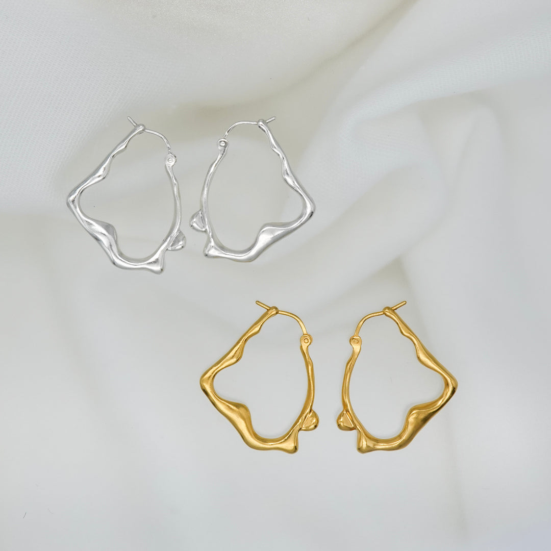 ヌード像をモチーフにしたフープピアス。一見モチーフがそれと分からない抽象画のような雰囲気を持っています。人体の柔らかな曲線がお顔周りを印象づけてくれます。