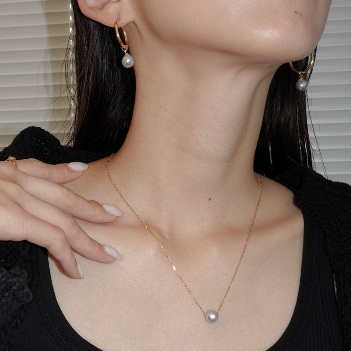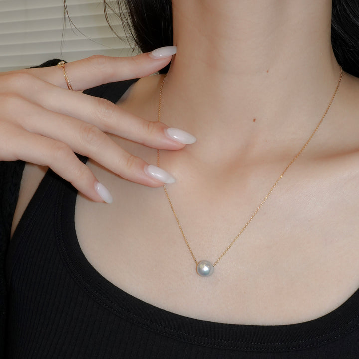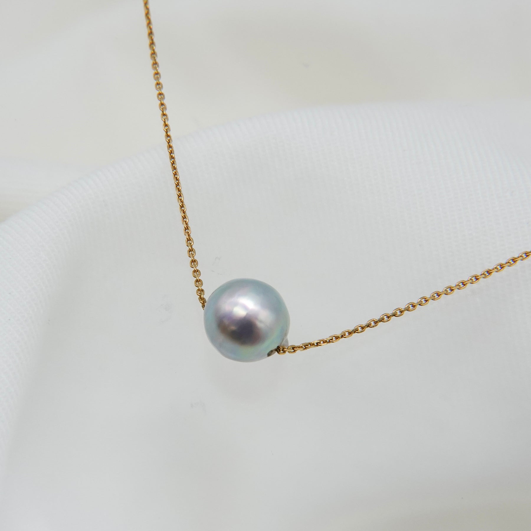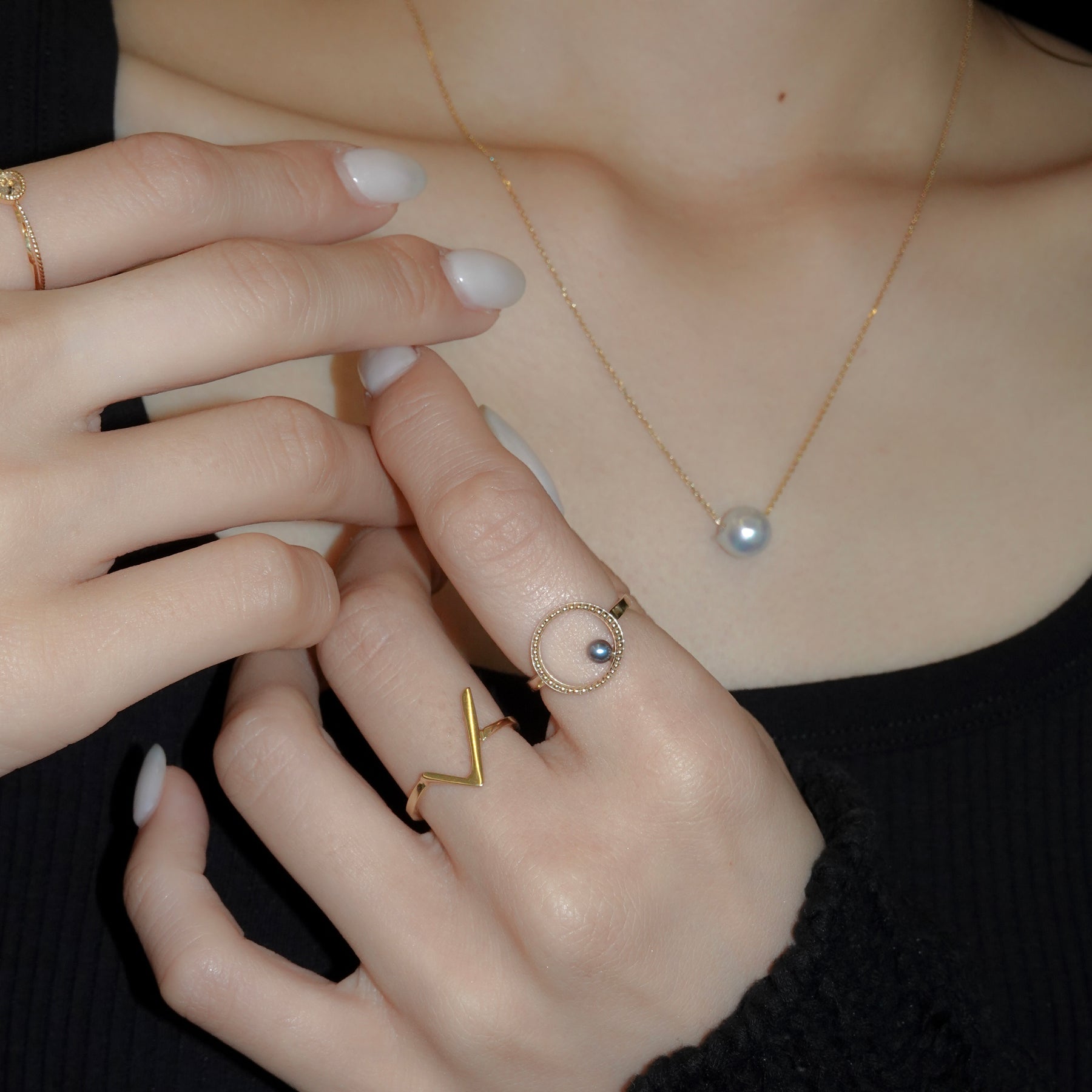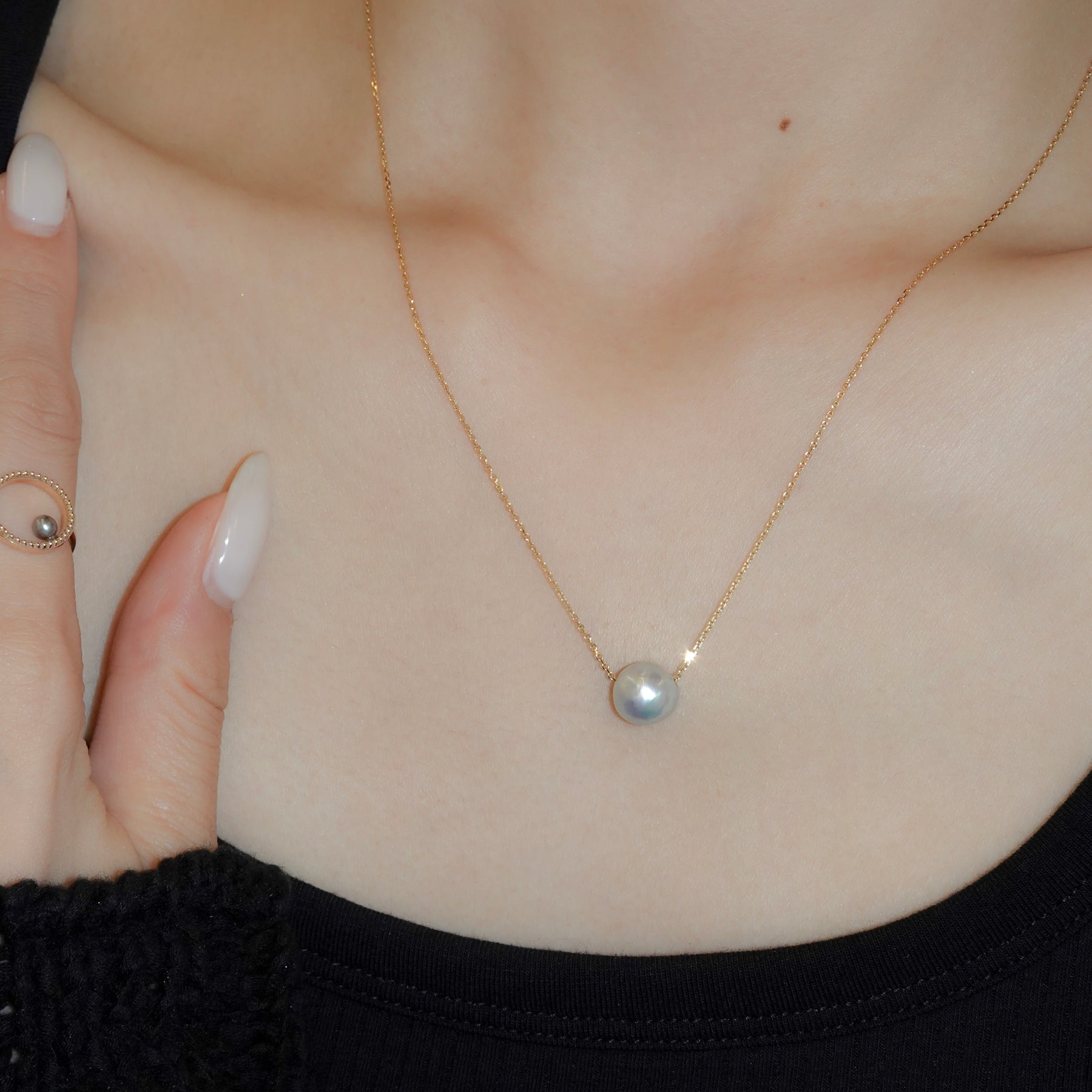 勢志摩産のアコヤ真珠が上品に漂う一粒ネックレス。バロックのアコヤ真珠で、角のようなとんがりがあったり、金魚のような尾ひれがあったり、シンプルでいて、個性が光ります。ネックレスチェーンは華奢なK18のあずきチェーン。アジャスターで調整可能なため、長めに落としても良し、短めにしてチョーカーのような使い方をしても良し、コーディネートを楽しめるアイテムです。