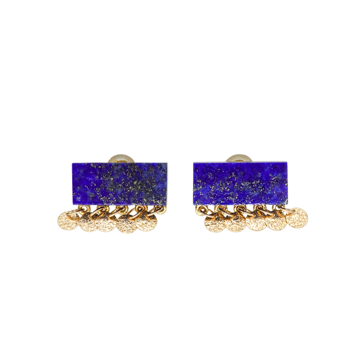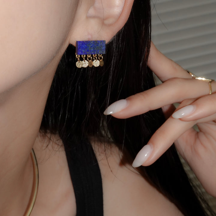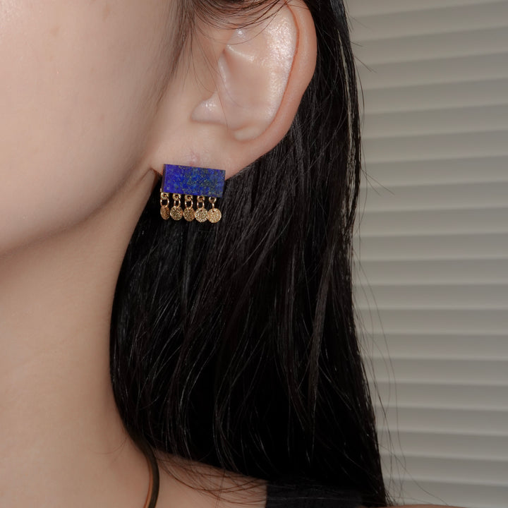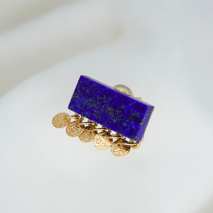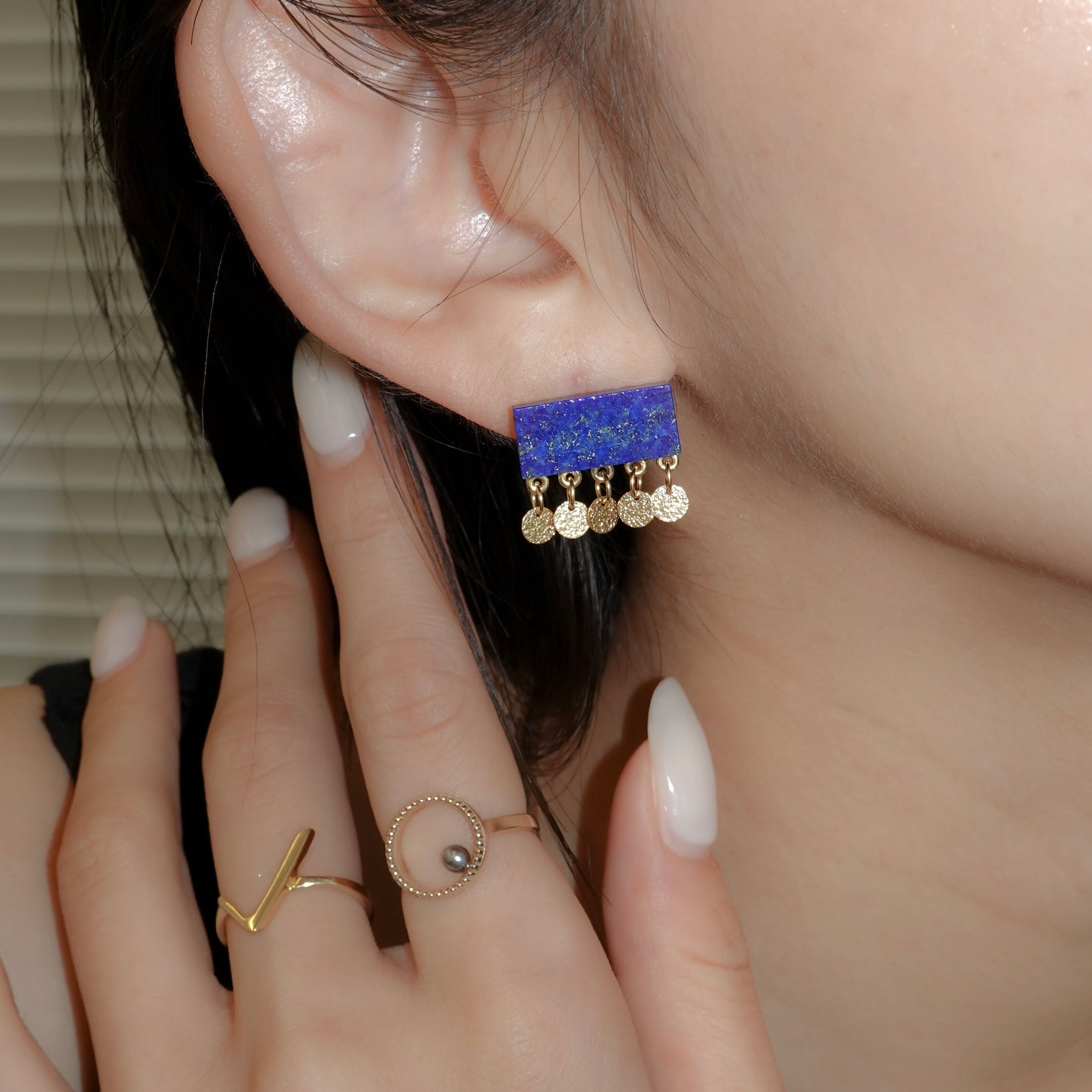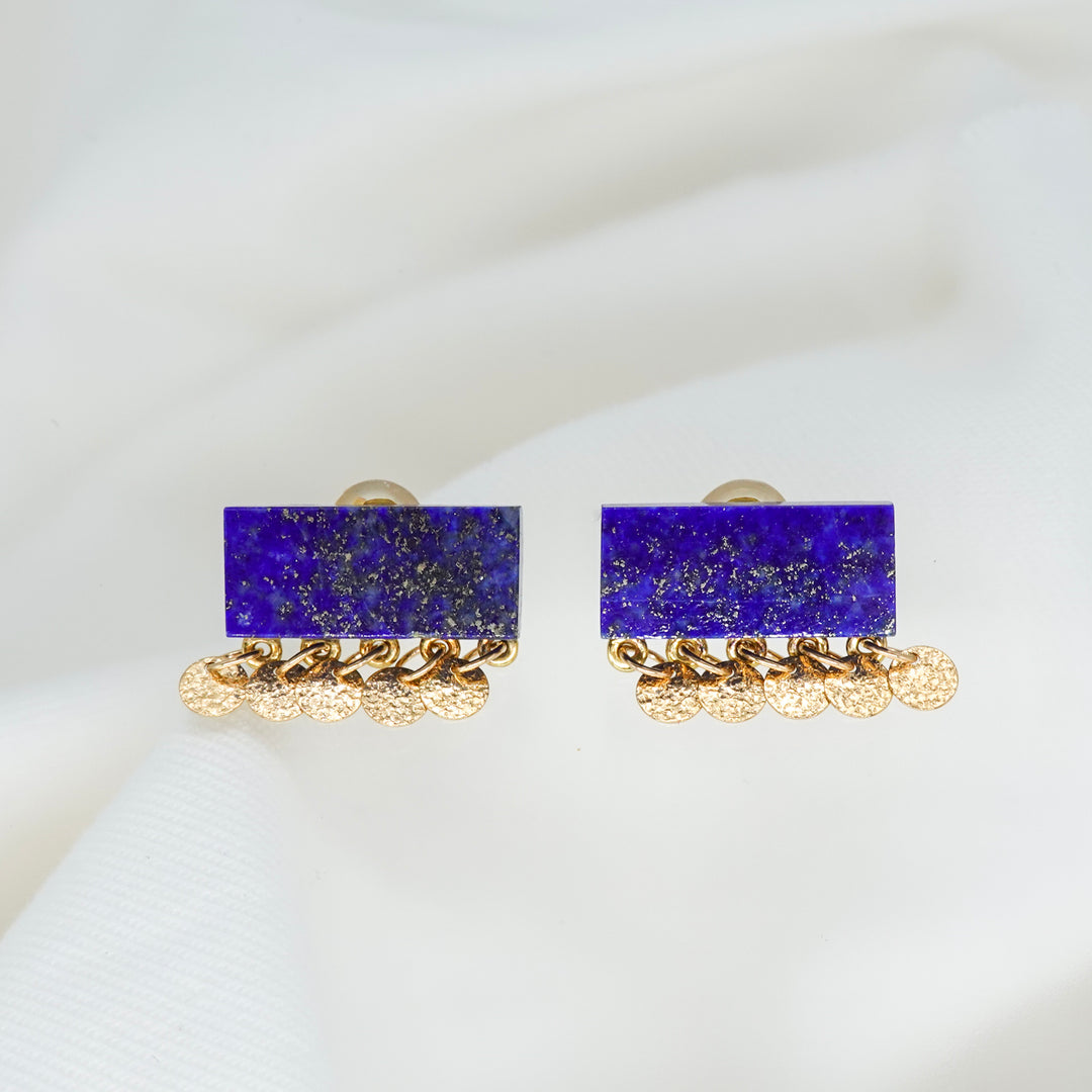 ラピスラズリに散りばめられた金色の輝きが、夜空に瞬く星々を彷彿とさせることから"Midnight Shine"と名付けられたピアス。