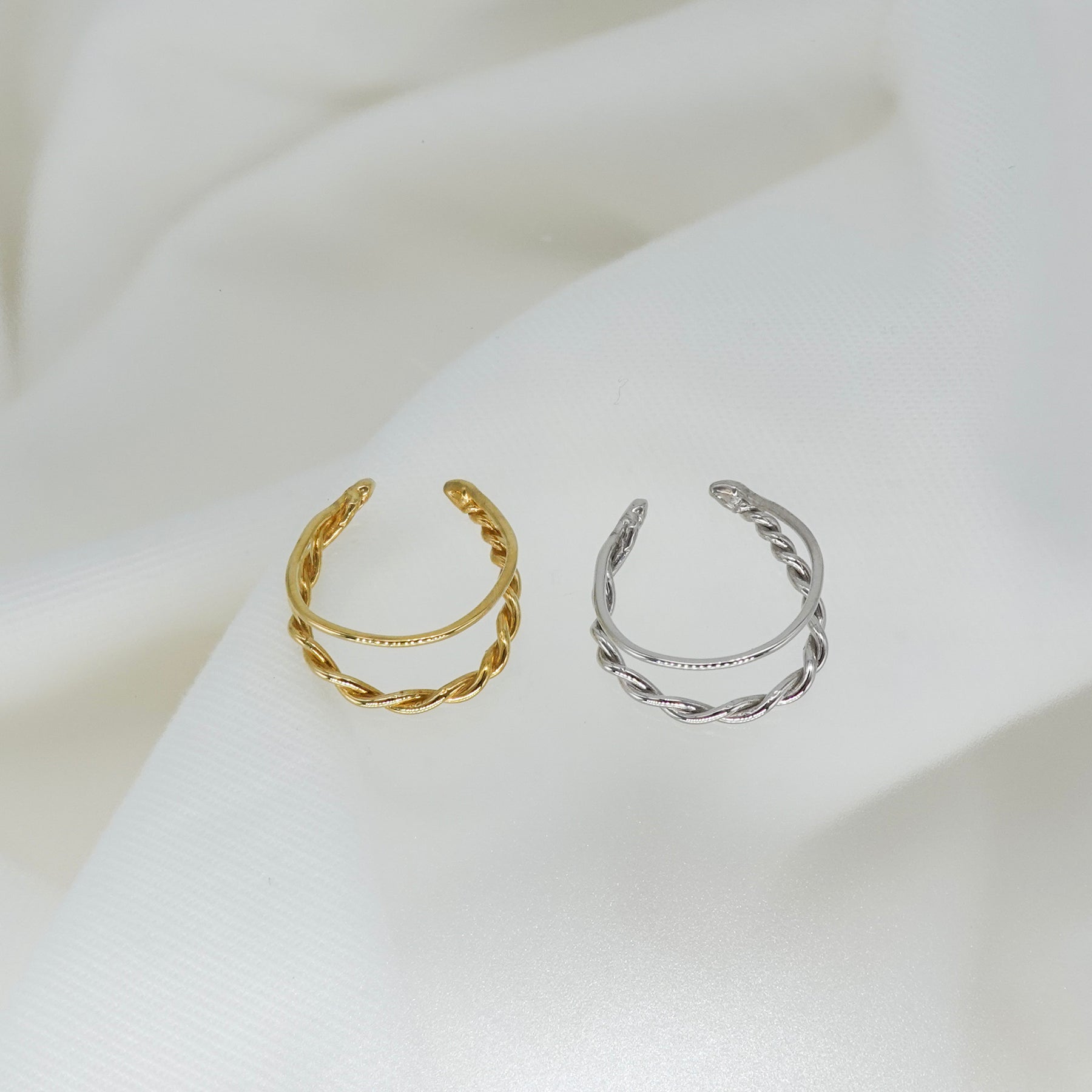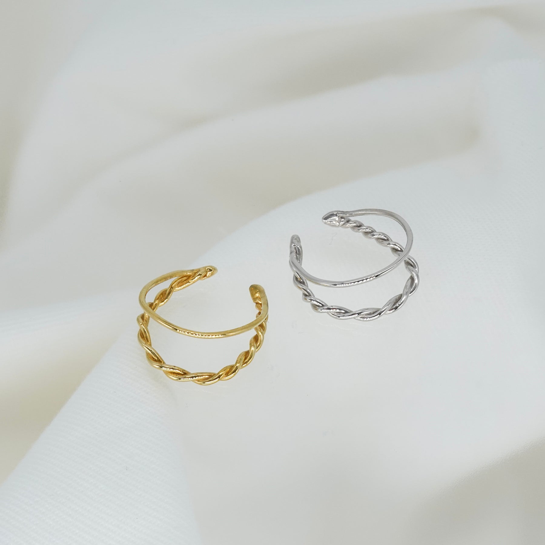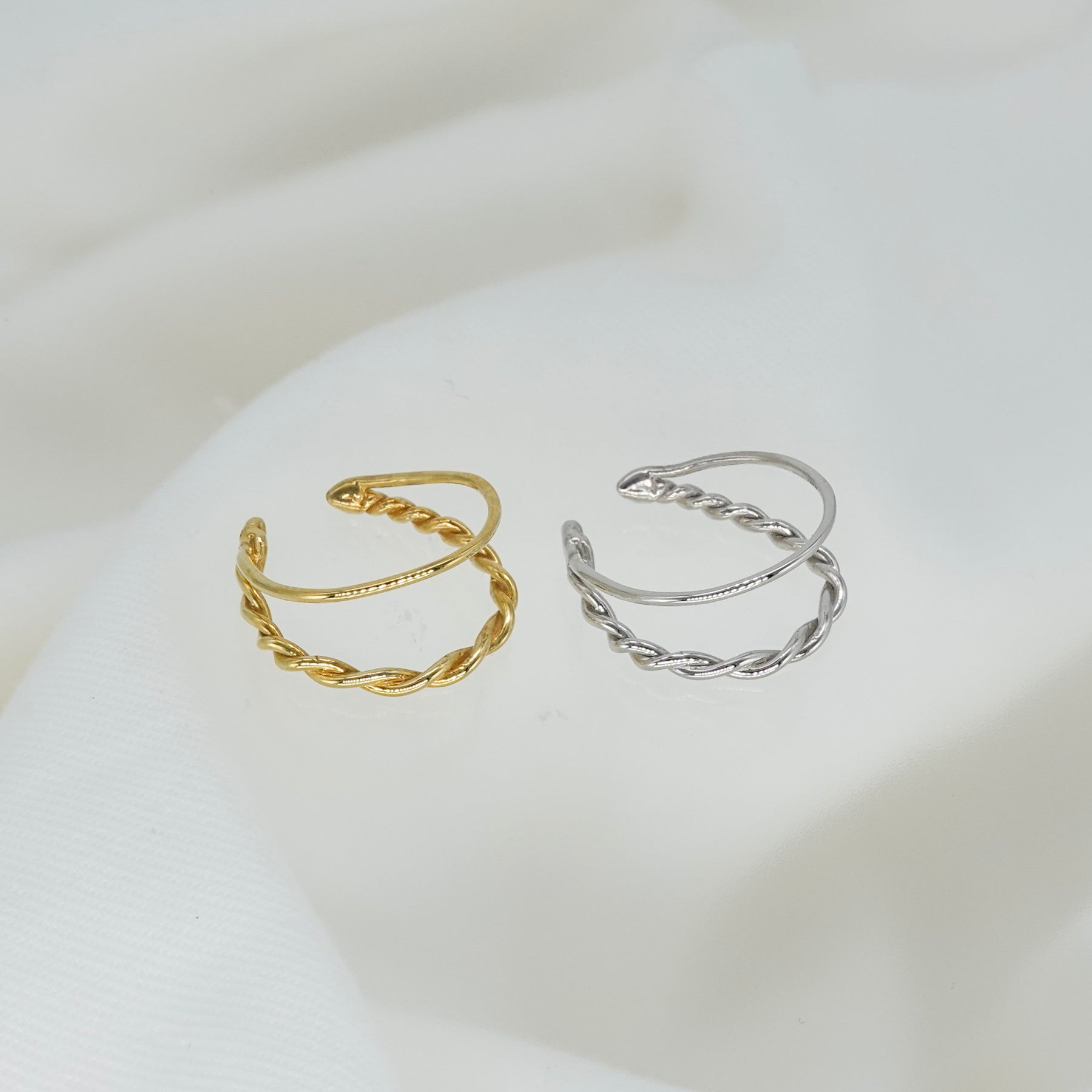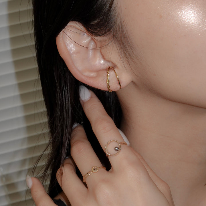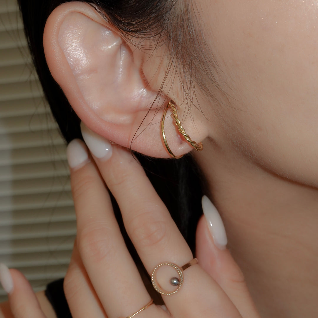 耳周りを個性的に、そして軽やかに彩る、単線と曲線が織りなす有機的なバランスが心地よいイヤカフ。軽くてデイリーに使いやすいデザインです。
