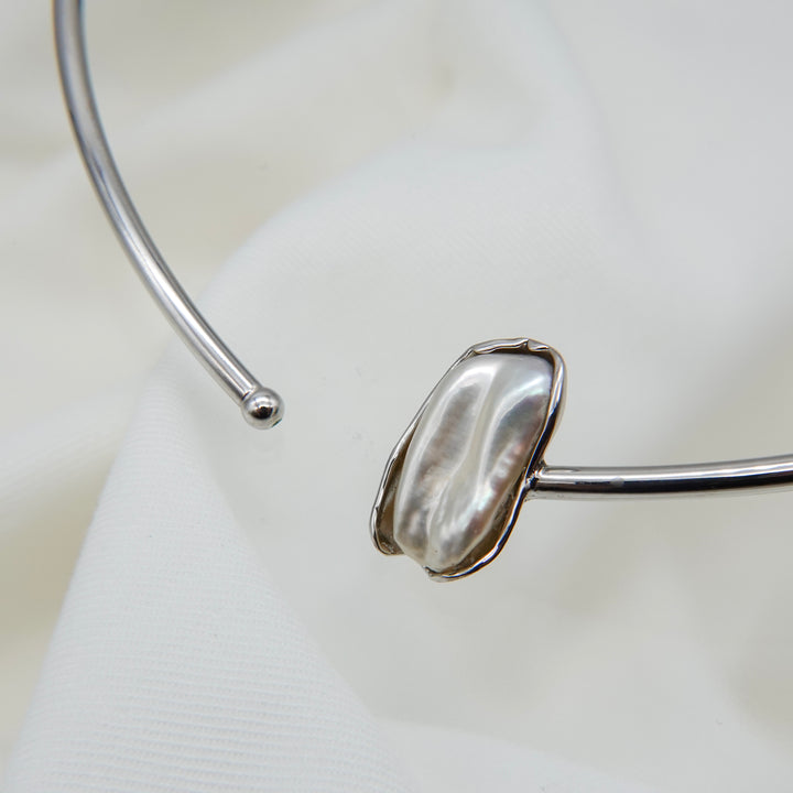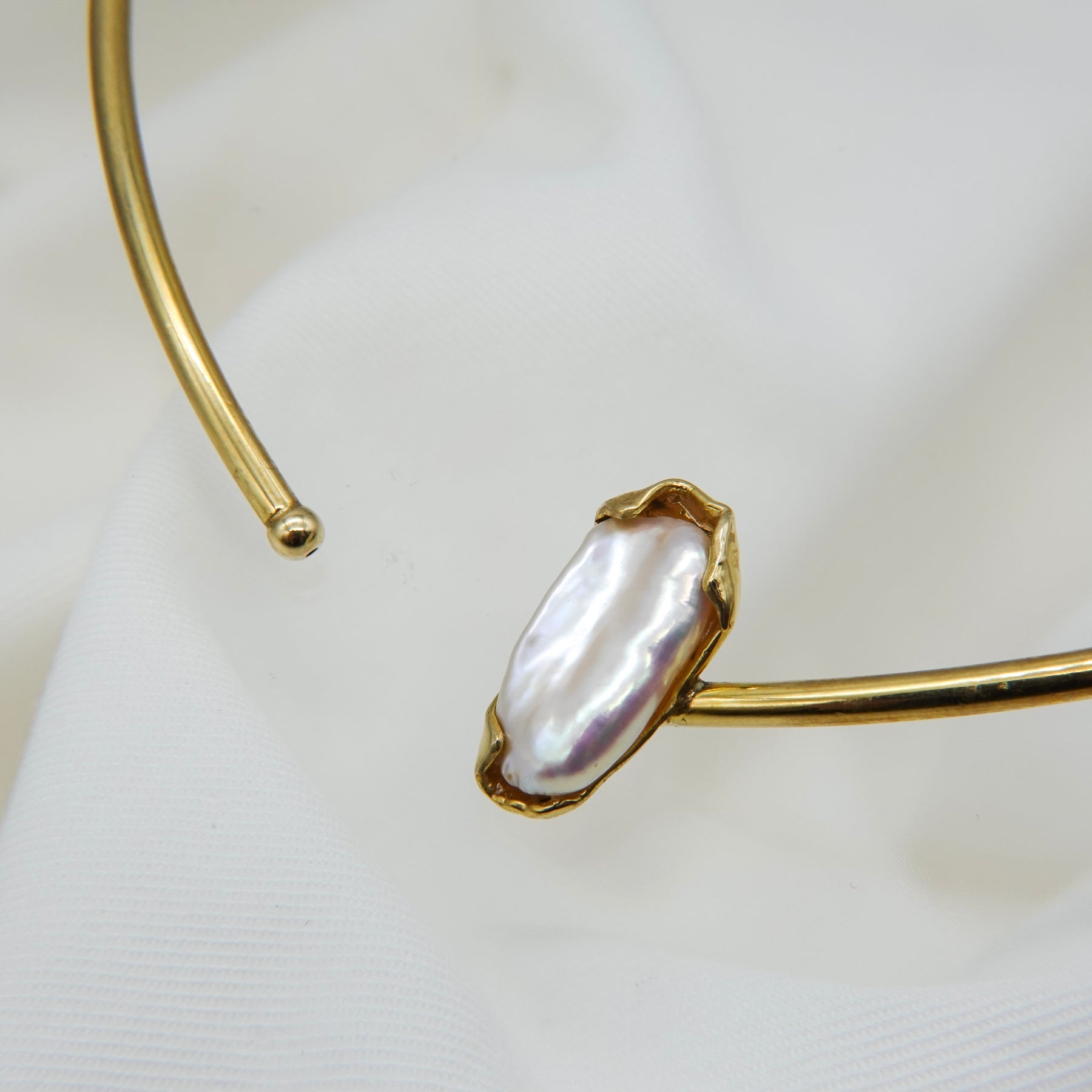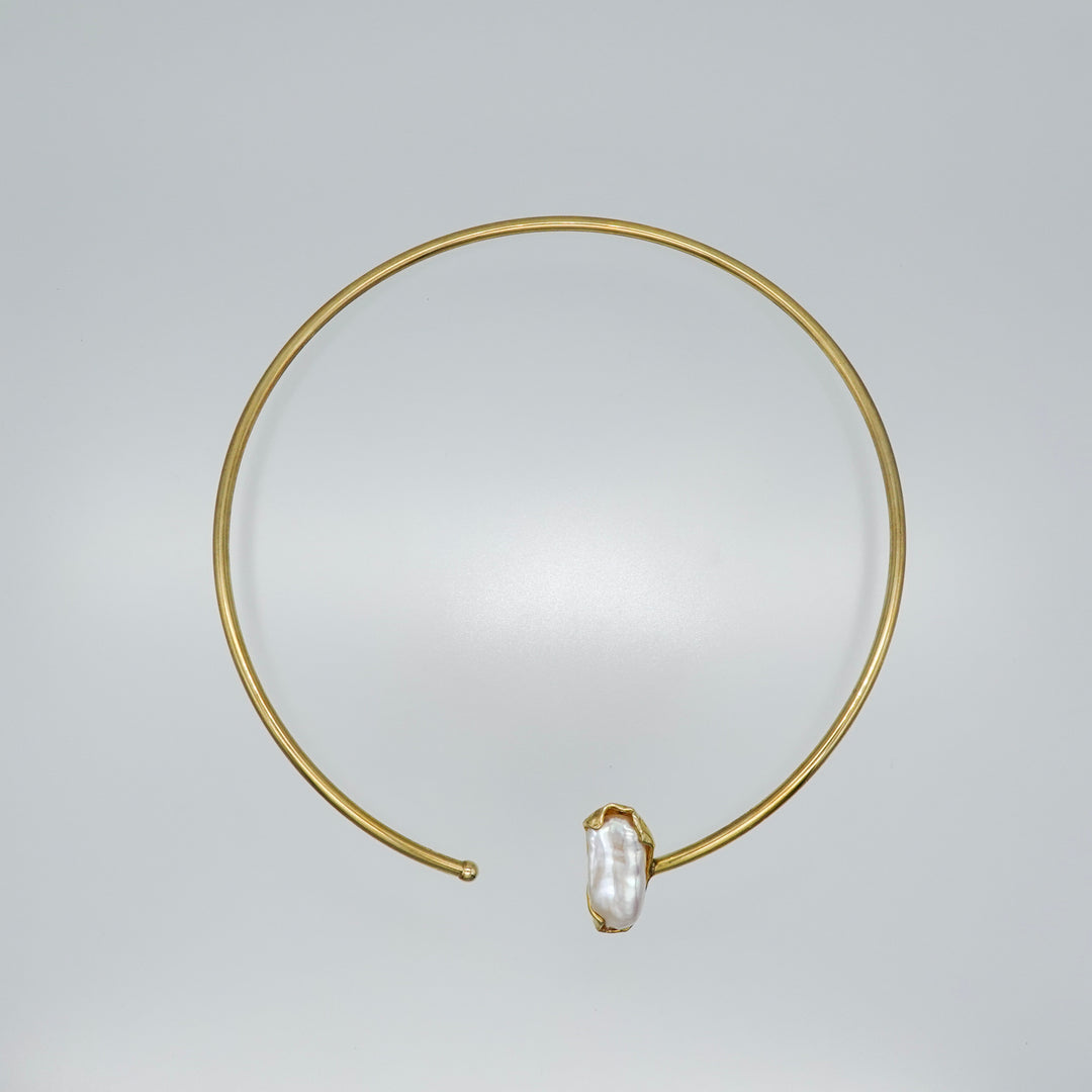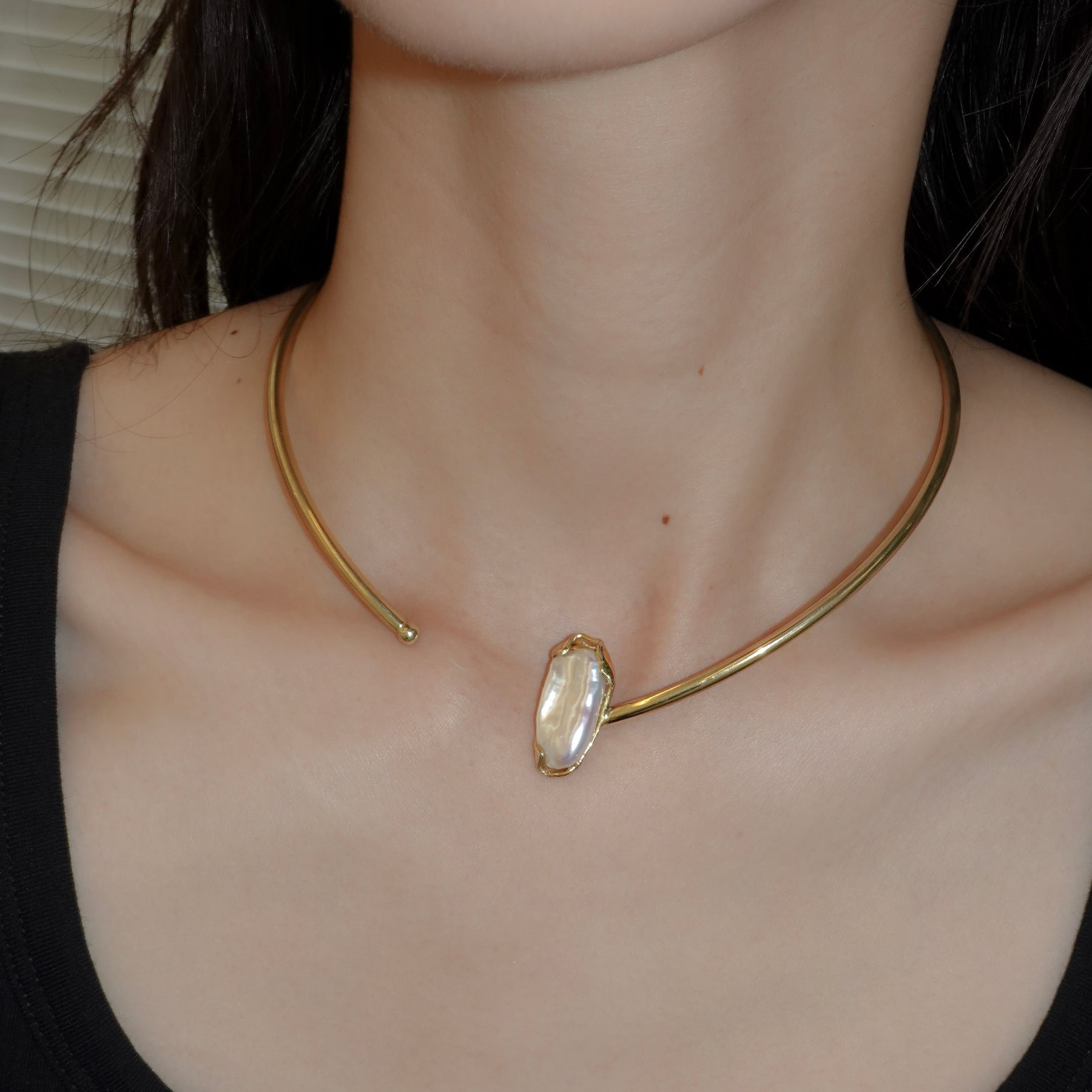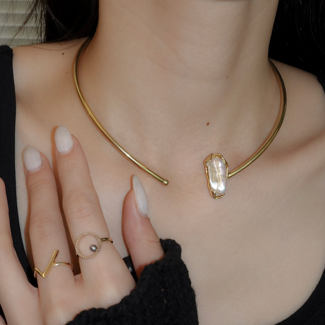パールが巣の中でそっと守られているような様子が印象的なチョーカー。大ぶりの淡水真珠を贅沢にシルバーで包みこんでいます。優しく上下に広げて簡単に着用できます。