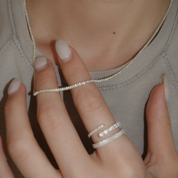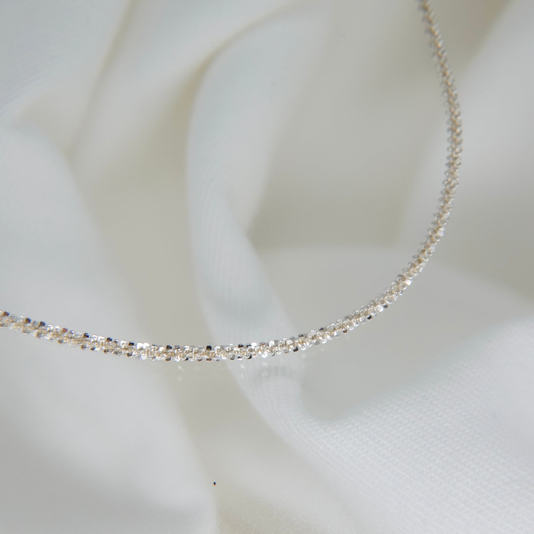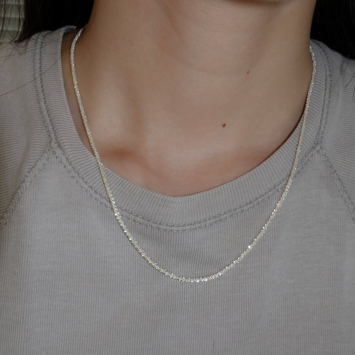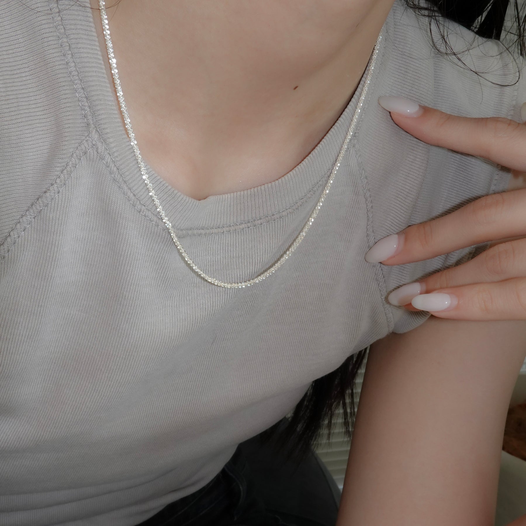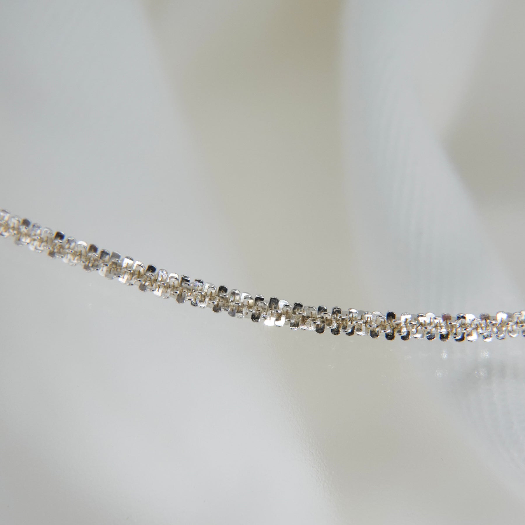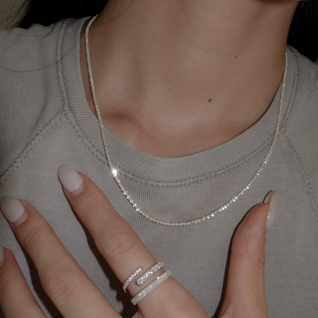 38.5〜44cmまで長さ調整ができるツイストチェーンのネックレス。目の細かいチェーンで繊細な輝きがデコルテをさりげなく華やかにしてくれます。