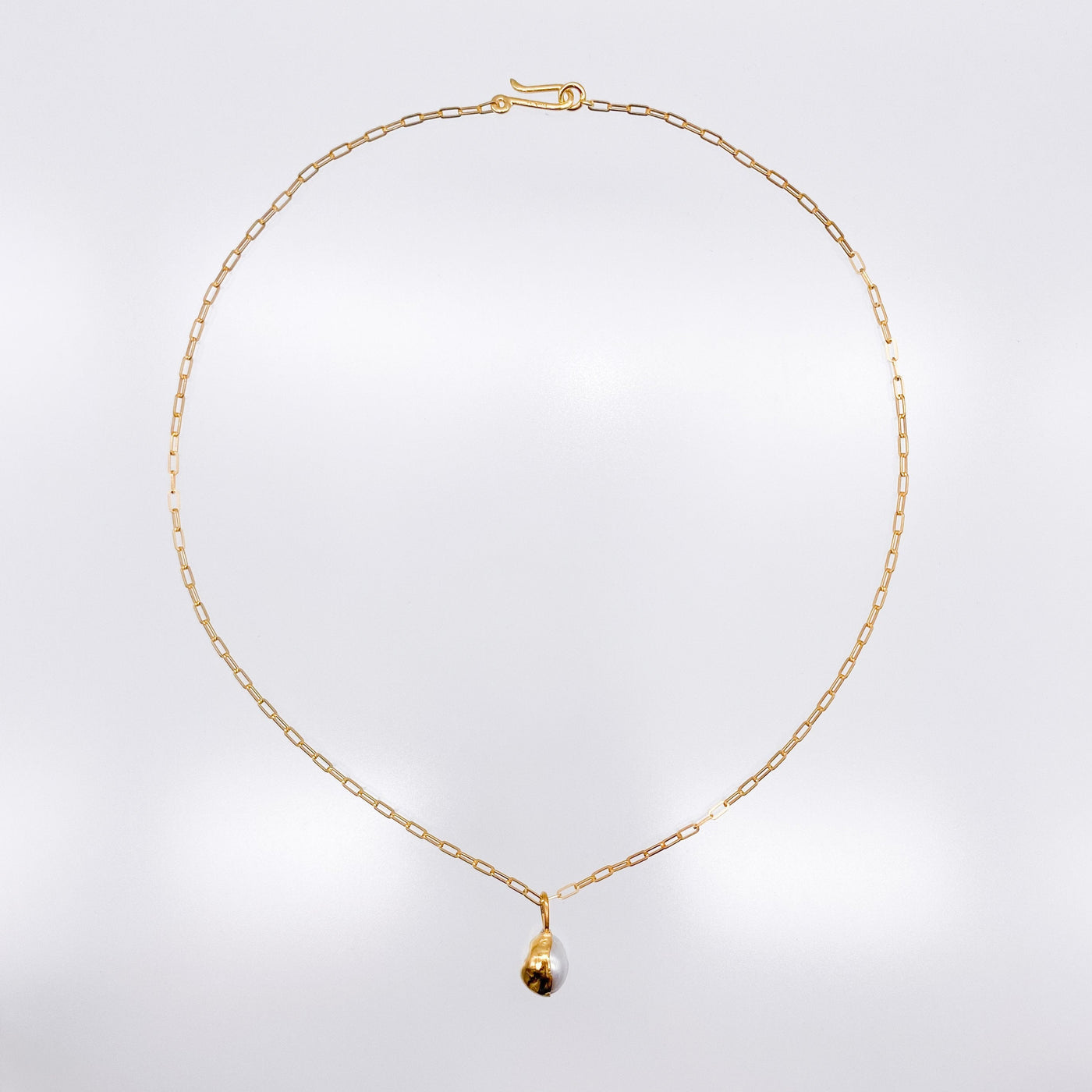 自然のままに生み出された、歪んだかたちの天然の淡水バロックパールを使用したBAROQUE PEARLシリーズ。その有機的で温かみのあるカーブをあえて活かし、ハーフサイドのみにゴールドのコーティングを施しています。パールとメタルの見せる異なる曲線が、コンテンポラリーでありエレガントな雰囲気を際立たせています。 こちらはデイリーに使いやすい小粒の淡水パールを使ったネックレス。1点1点異なる表情を持つ特別感のあるアイテムです。