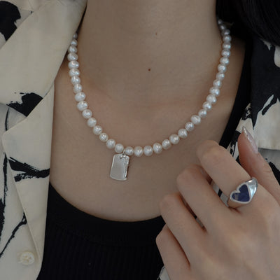ユニセックスでお使いいただけるドッグタグパールネックレス。