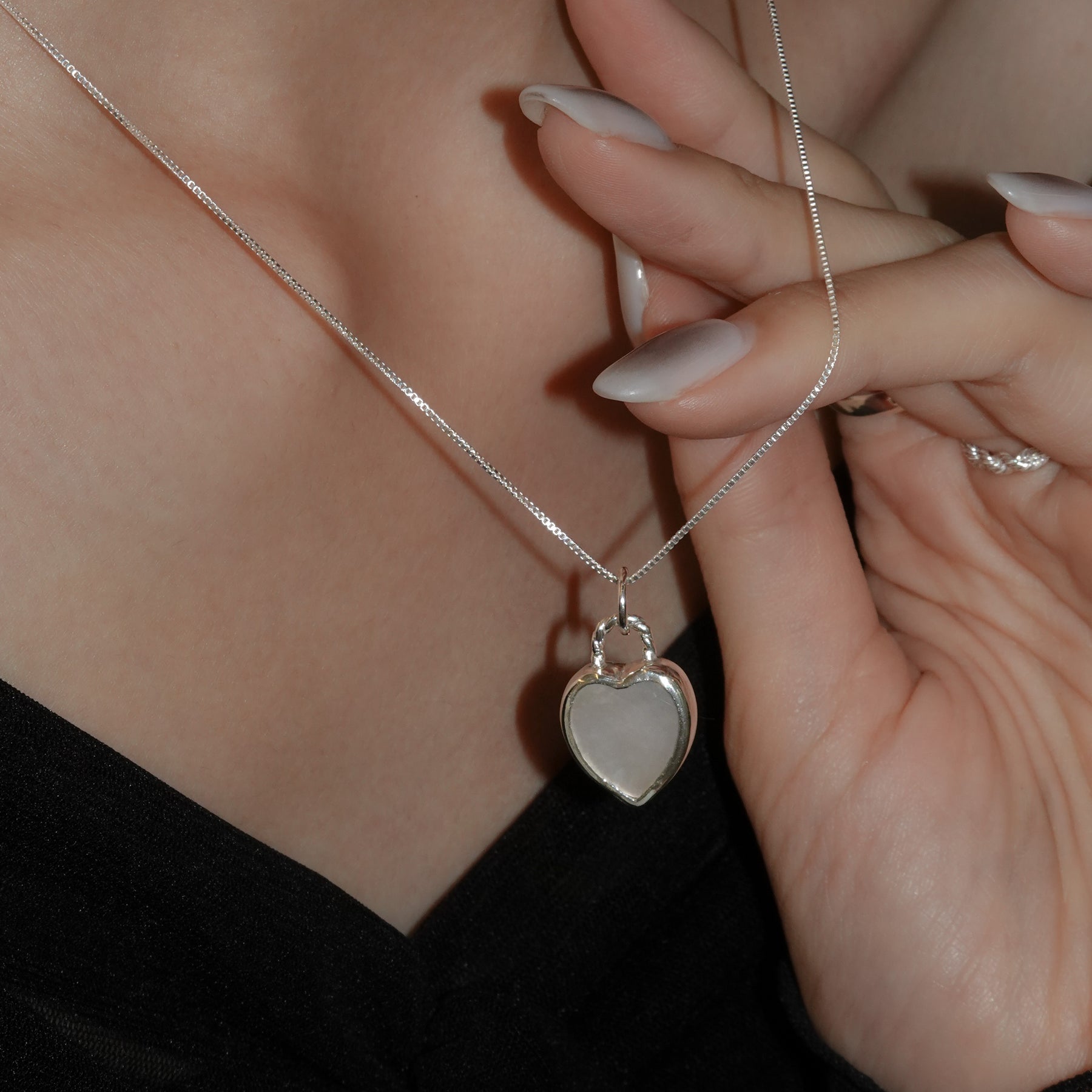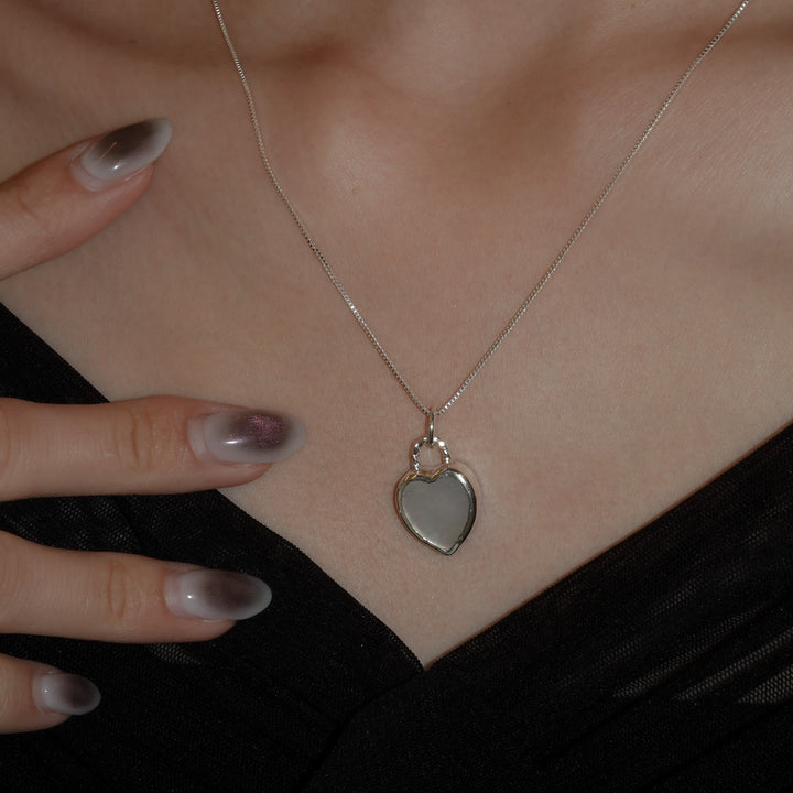 柔らかで上品な輝きを持つマザーオブパールを使った、シンプルながらも印象的なハートペンダントネックレス。
