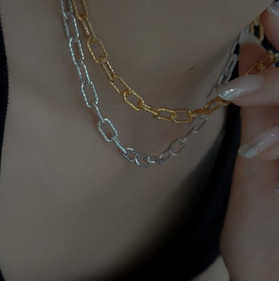 ラフな太めのチェーンに細めの二連小豆チェーンが連なる、デイリーにぴったりのネックレス。