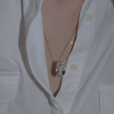 "SADHER"とは"shadow of the other"をもじった造語で、対立するものが出会い、新しいものを生み出すというテーマを掲げたコレクション。こちらは洗練されたフォルムに加えられた贅沢な質感と3つの小さなリングによる抜け感が程よいネックレス。