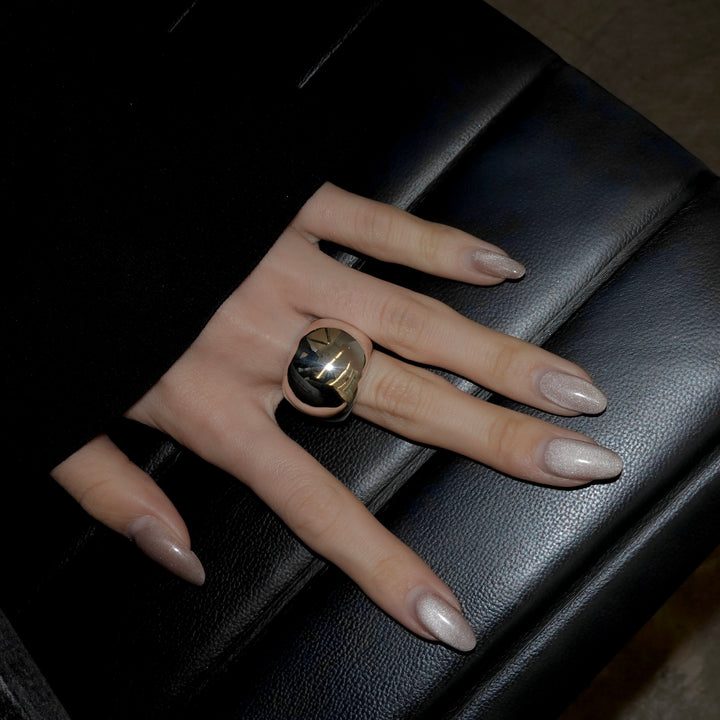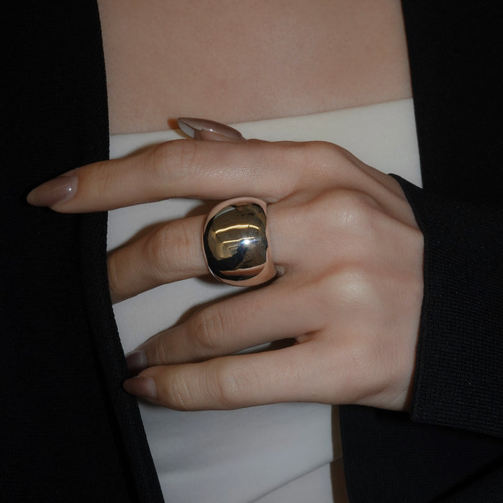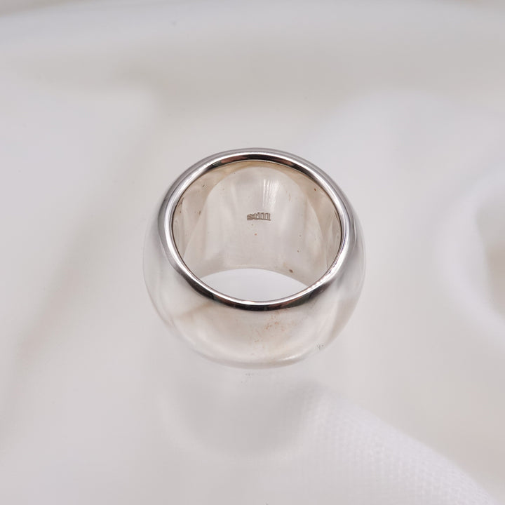 月の形を再現したリング。 裏抜きをしない重厚感とフィット感、丸くボリュームのある形に光沢のある鏡面仕上げが魅力。