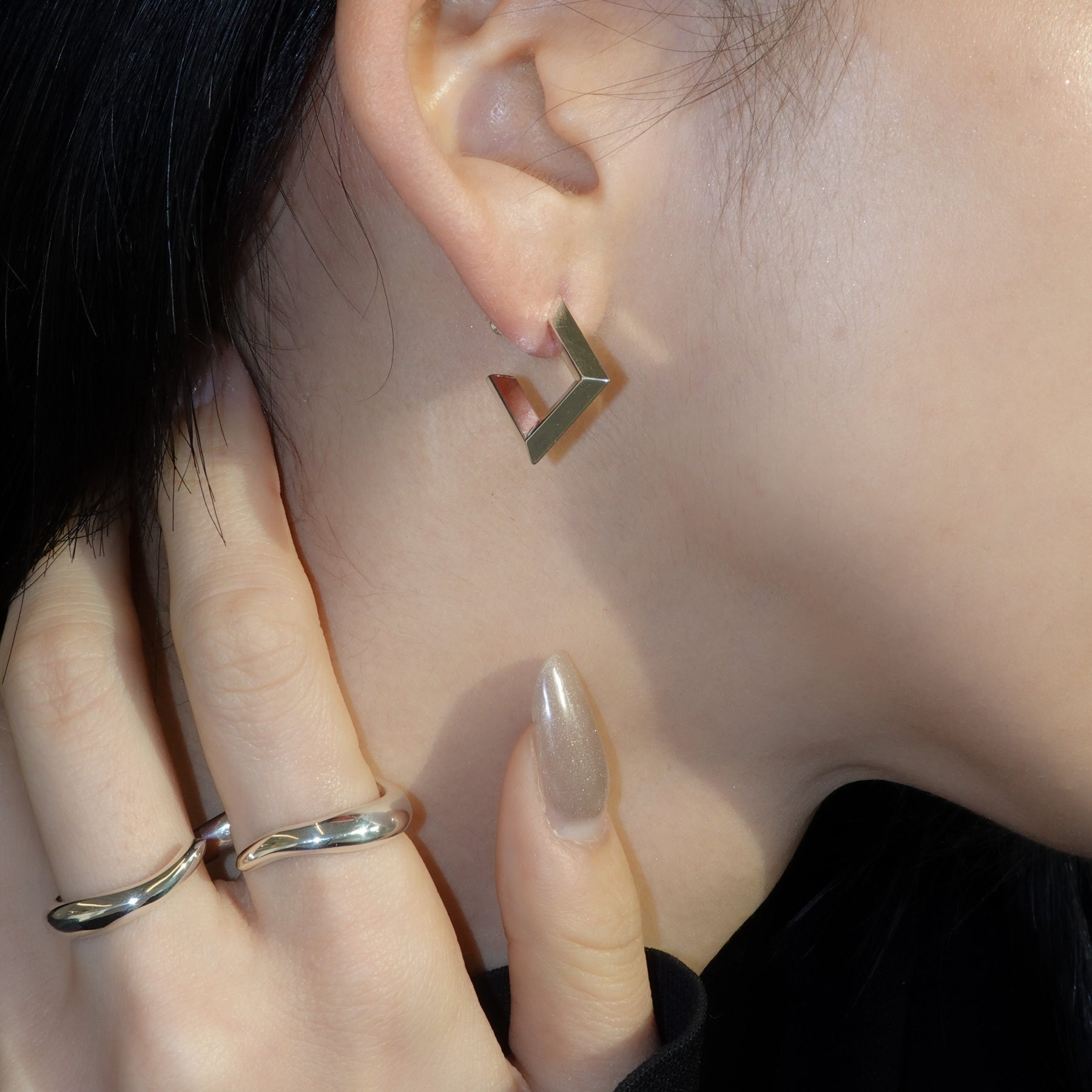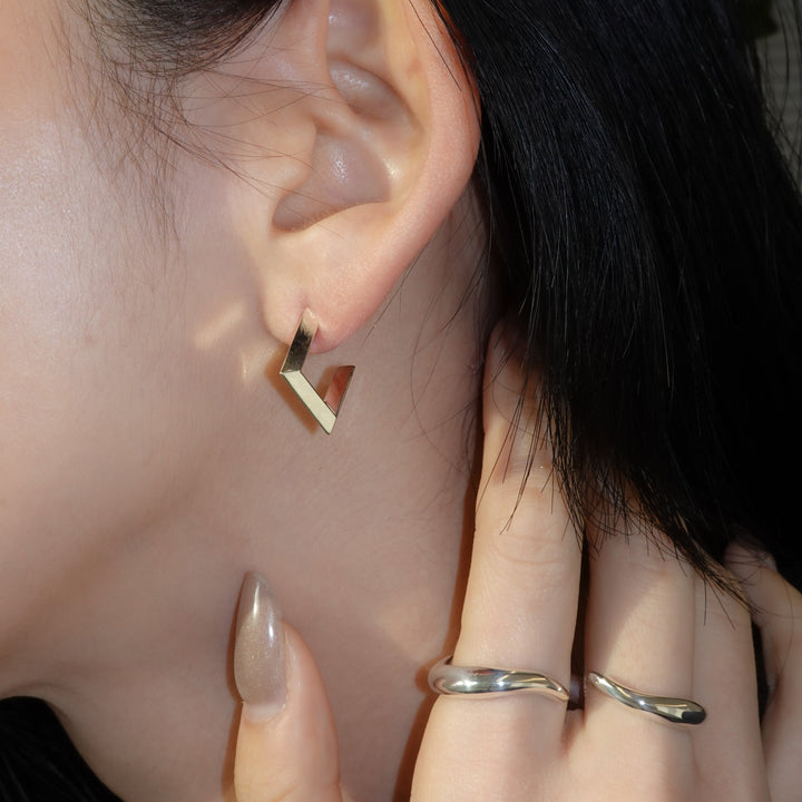 静かに佇む高層ビル、ガラス張りに映る光の反射を形に残したピアス。ポストはK18を使用。