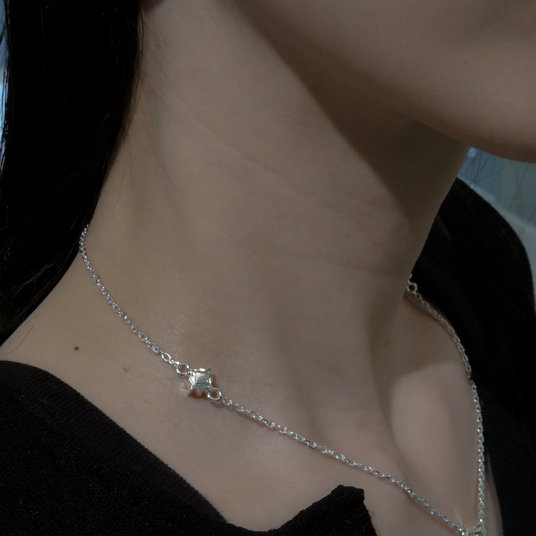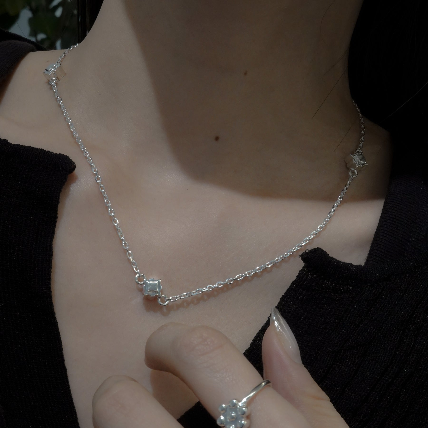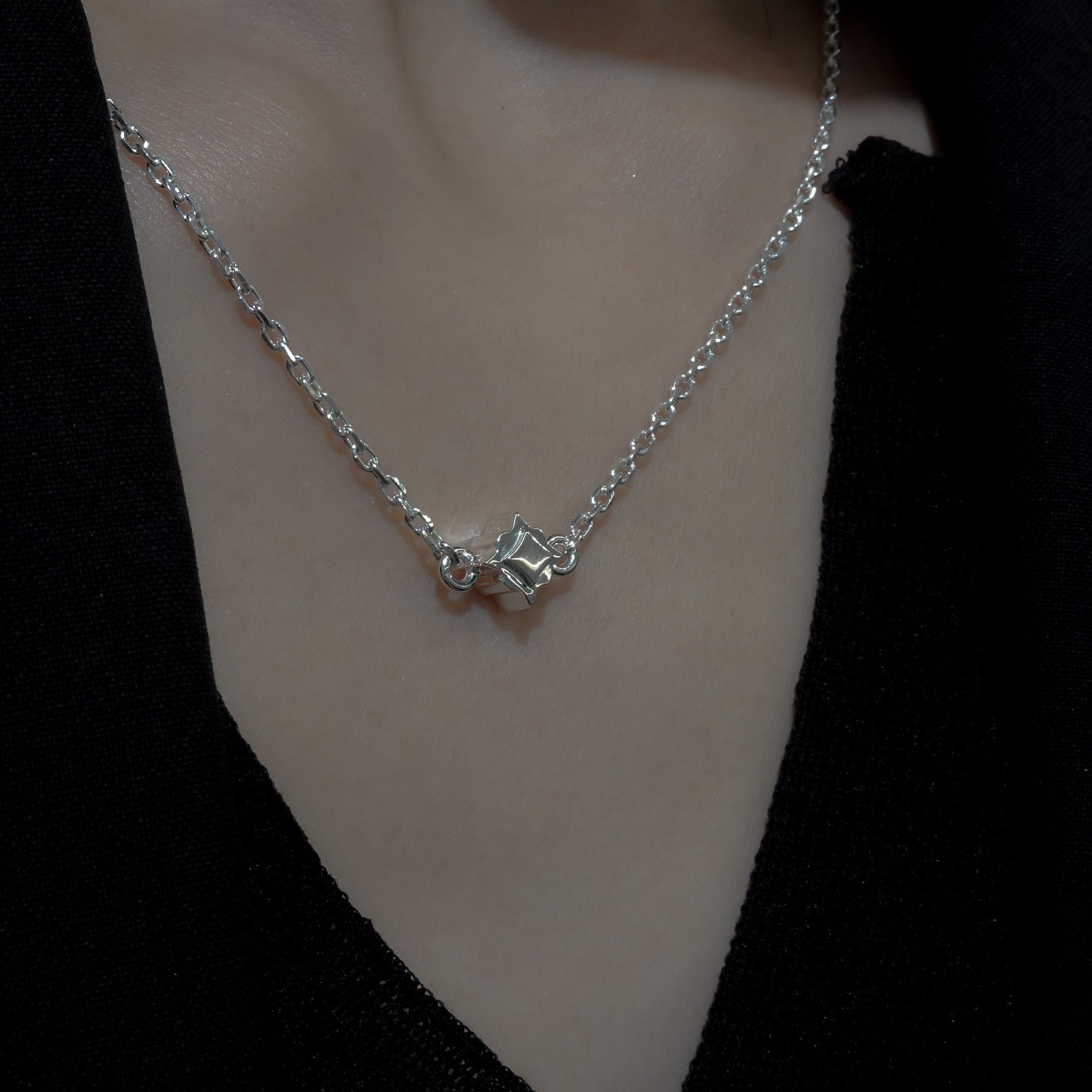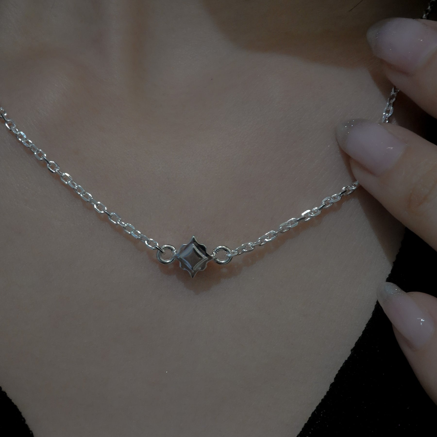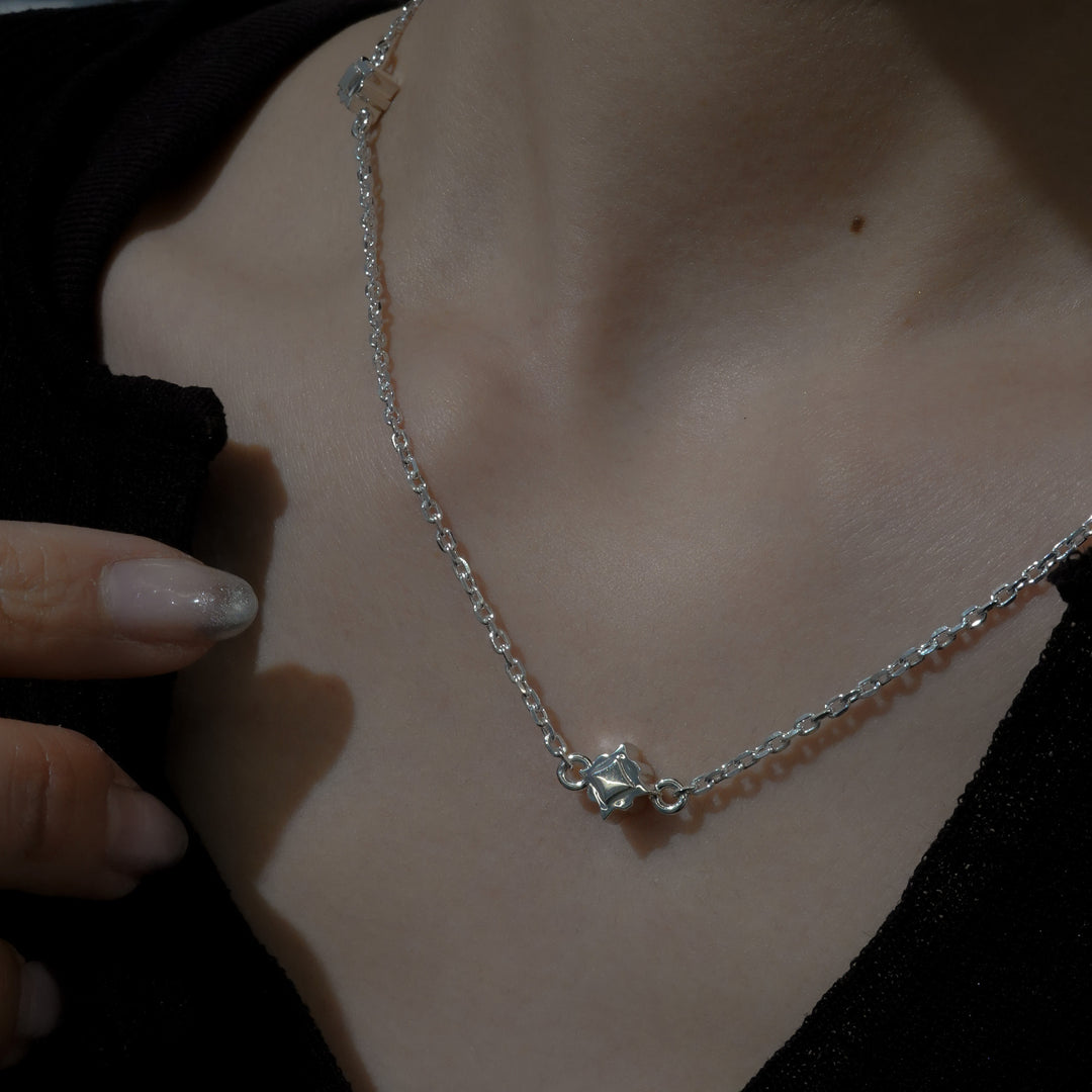 Stern(ドイツ語で星)をイメージしたシルバーネックレス。鏡面仕上げの幾何学模様と、見る角度によって、光を感じられ、様々な場面で使えるアイテムです。