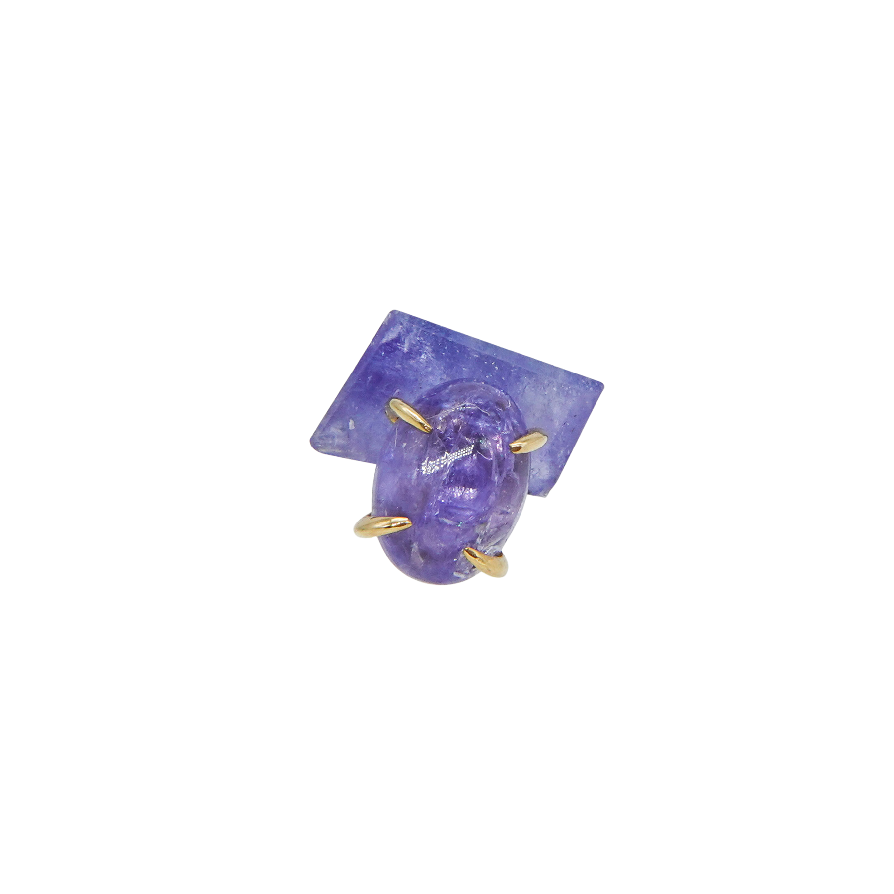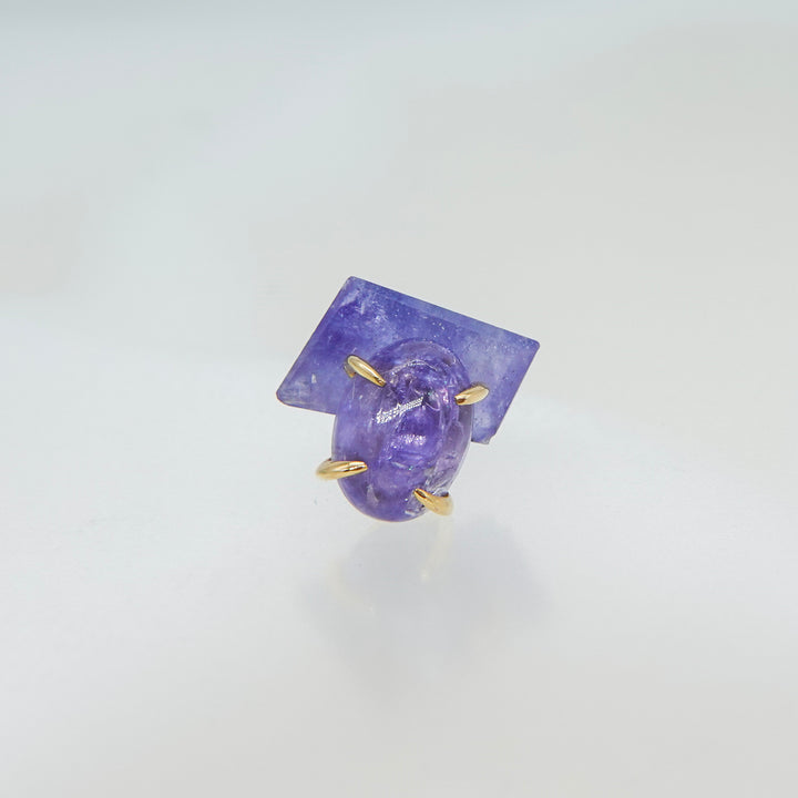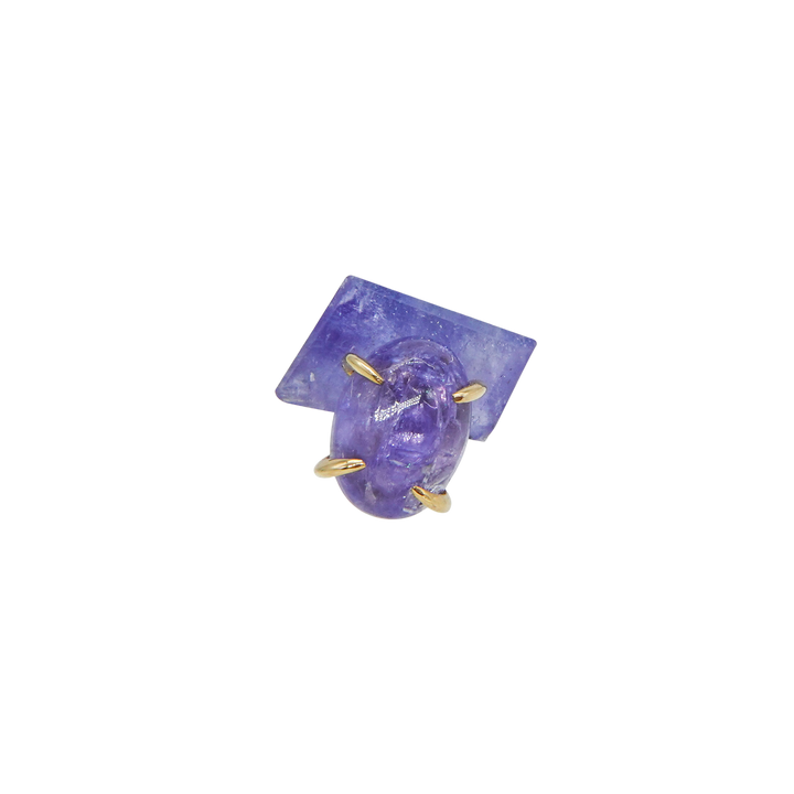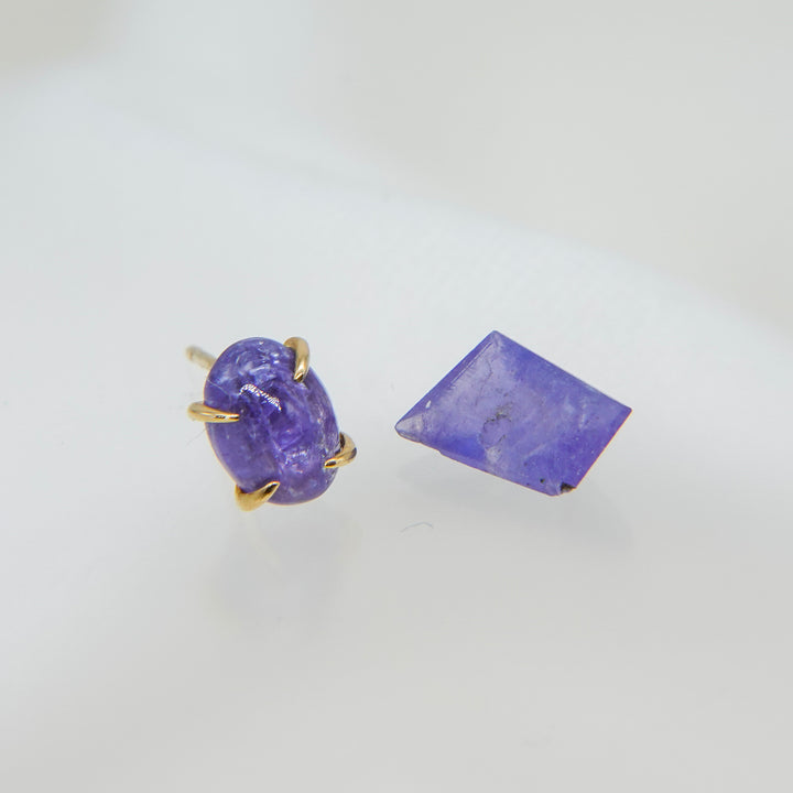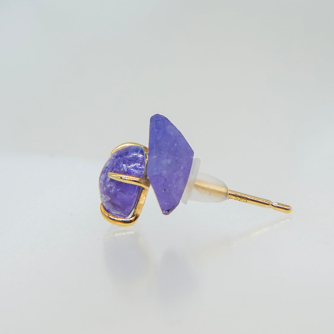 こちらは、ナチュラルなフォルムのタンザナイトとカボションシェイプにカットされたタンザナイトのコンビネーション。
