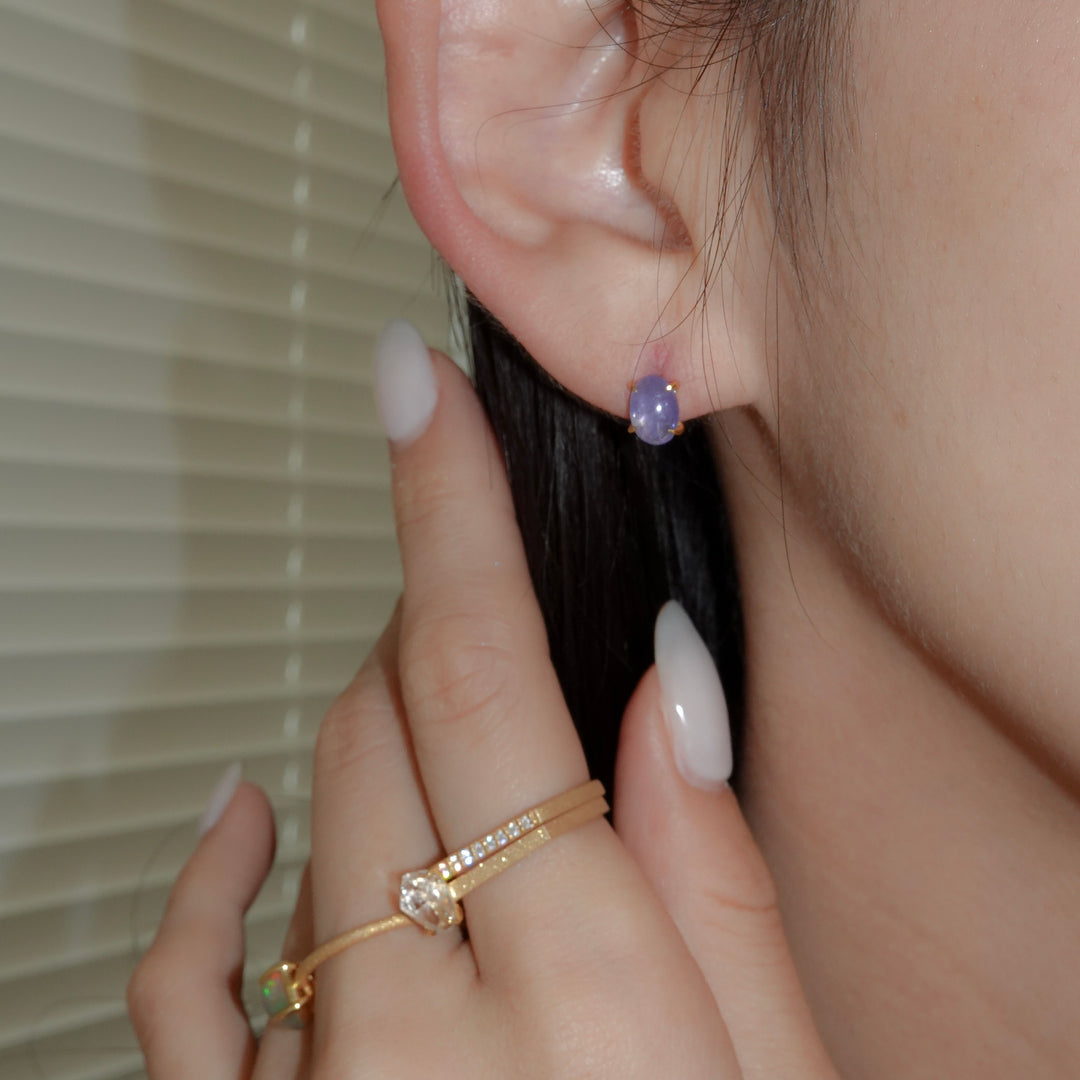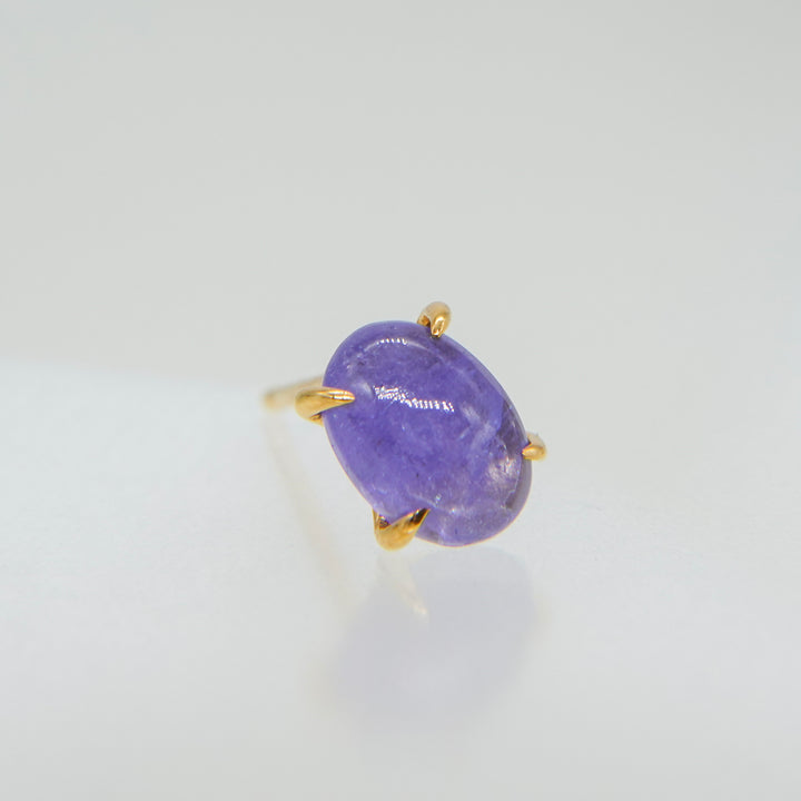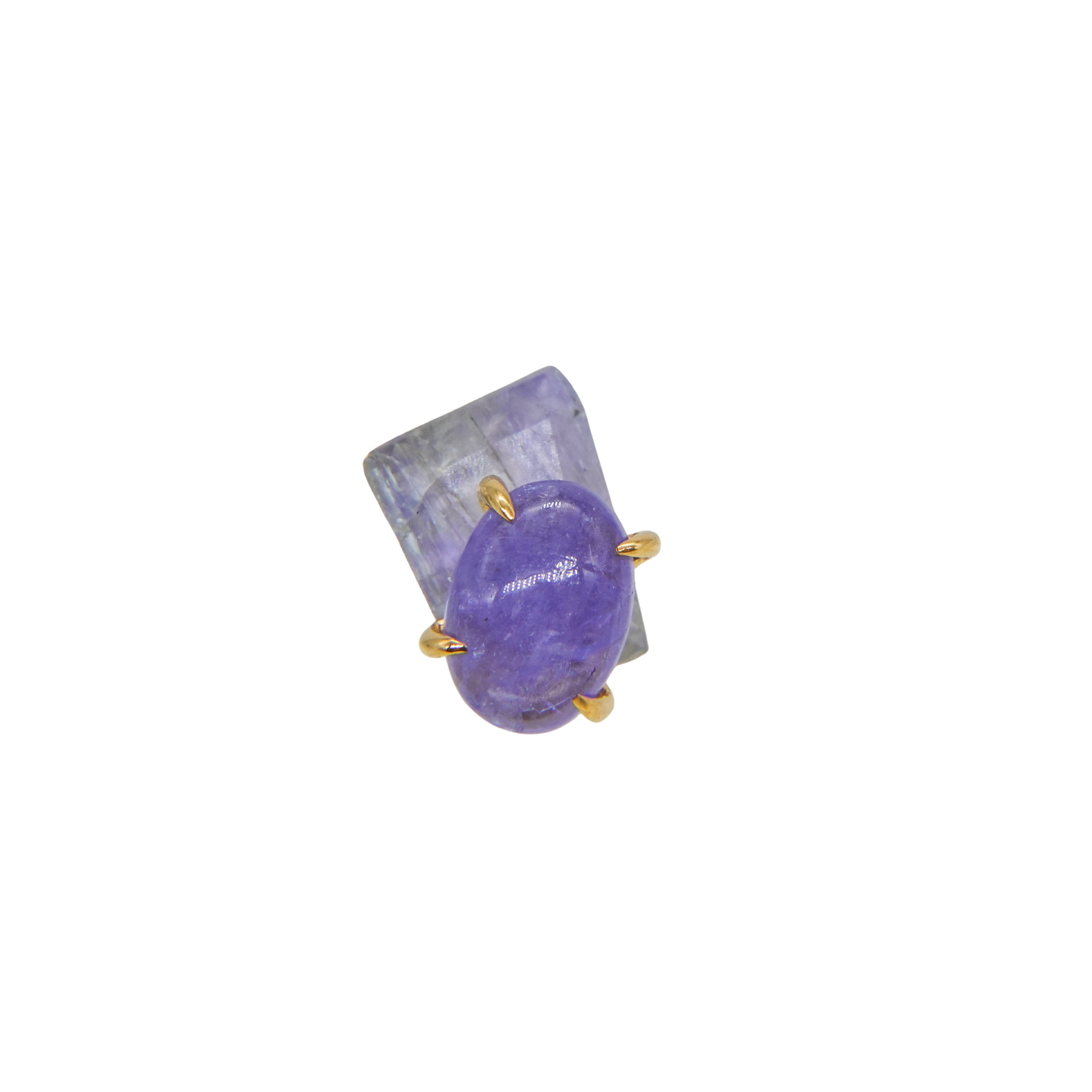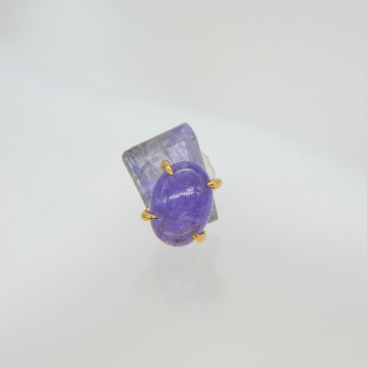こちらは、ナチュラルなフォルムのタンザナイトとカボションシェイプにカットされたタンザナイトのコンビネーション。