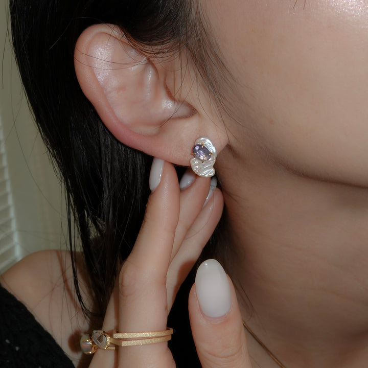 ナチュラルなフォルムのパールとストーンの組み合わせが印象的な、片耳用ピアス “Katamimi” シリーズ。アイコニックなデザインが、耳元にさりげない個性と華やかさを添えます。パールは取り外し可能で、シンプルにも華やかにも楽しめる2way仕様です。