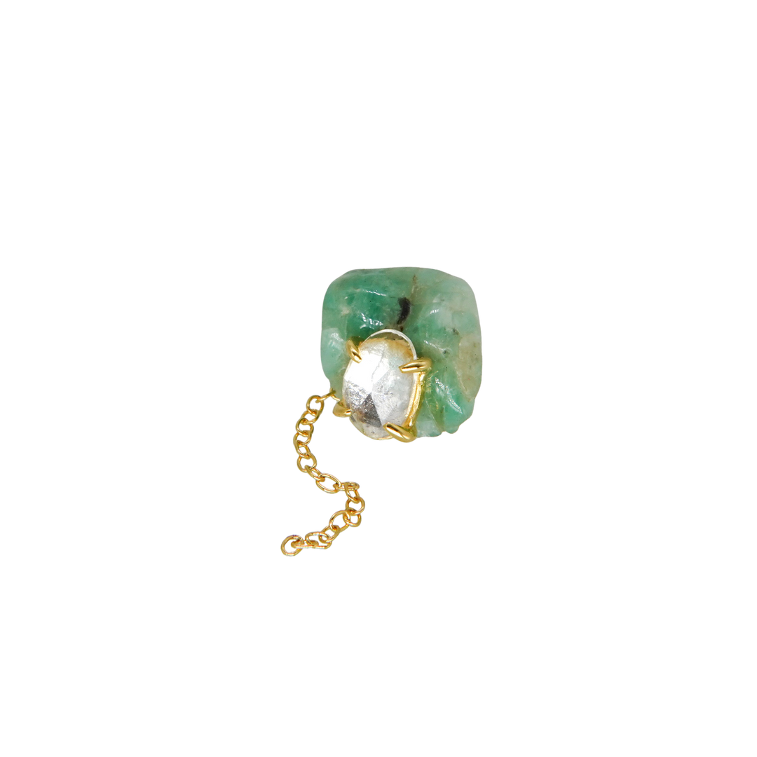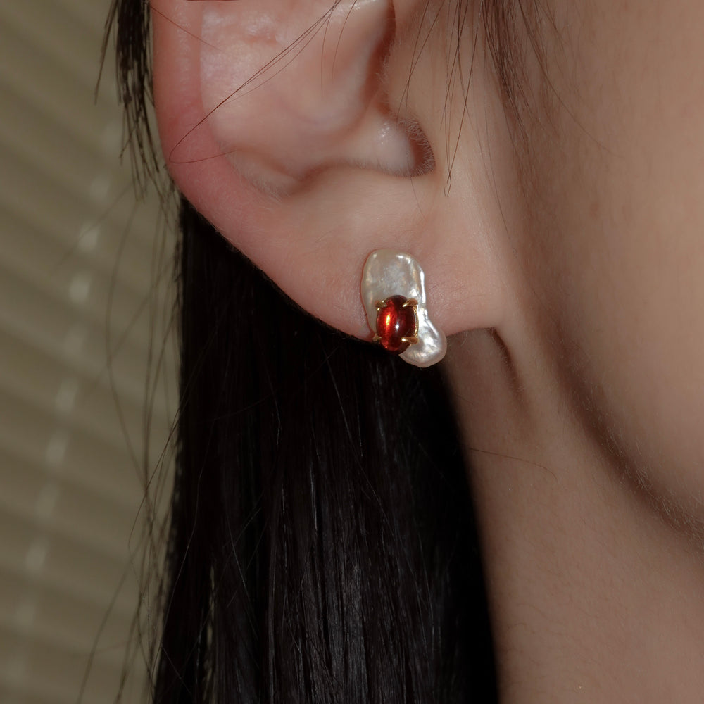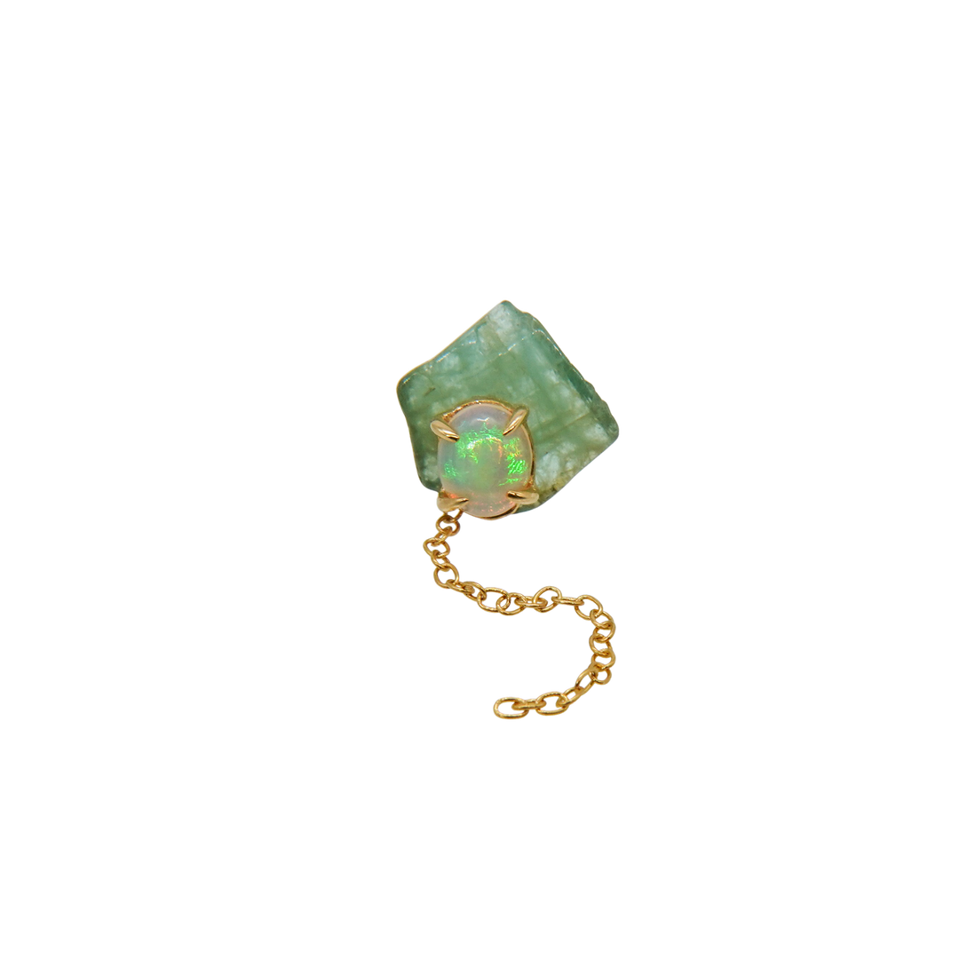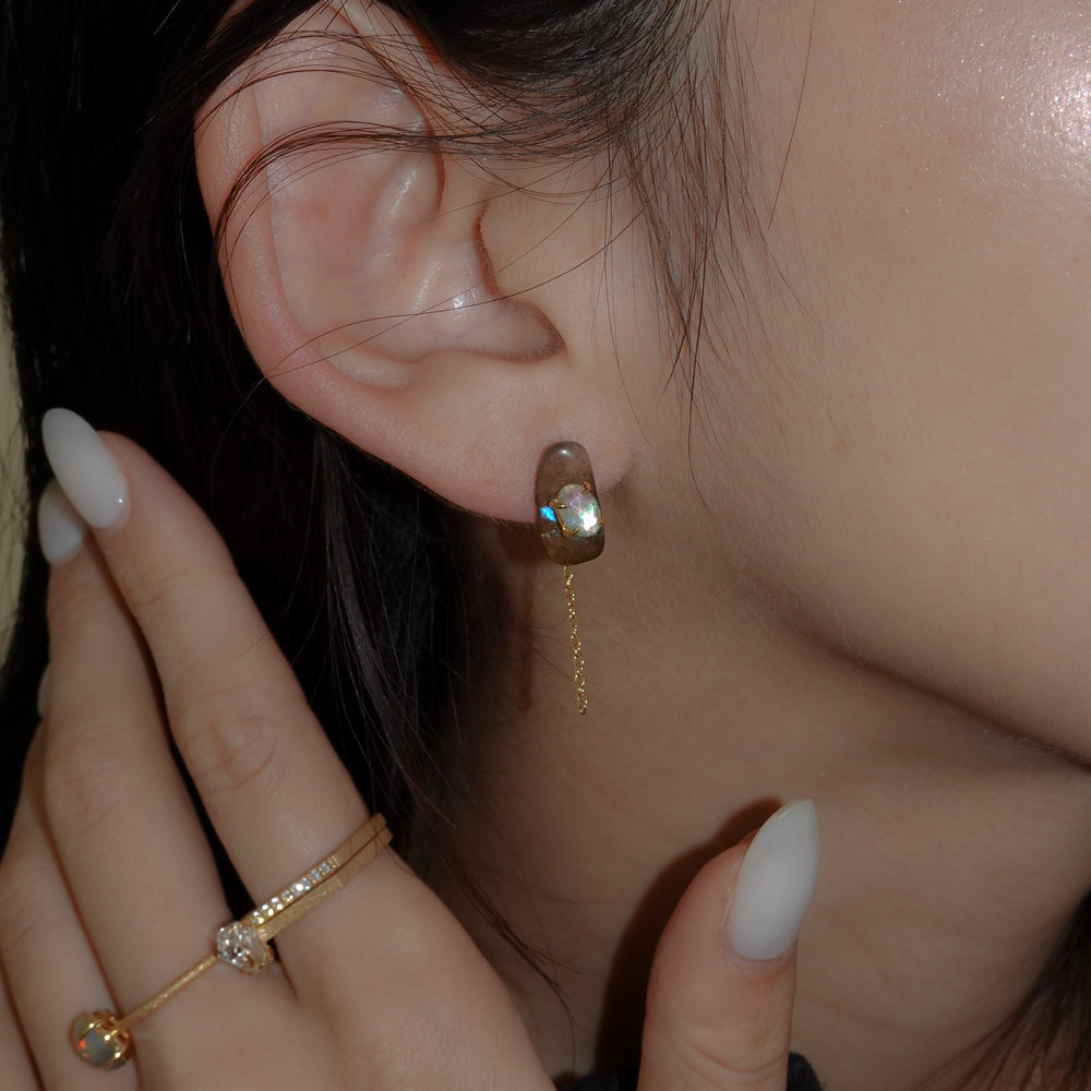 夜光貝の神秘的な輝きを贅沢に楽しめる、リング兼イヤカフ。見る角度によってわずかに表情を変える虹色の艶めきに、先端のゴールドがさりげないアクセントを添えています。洗練されたデザインで、指元にも耳元にも上品な個性を演出してくれます。