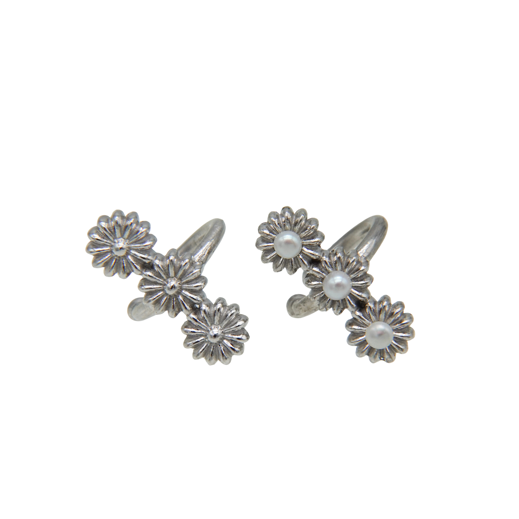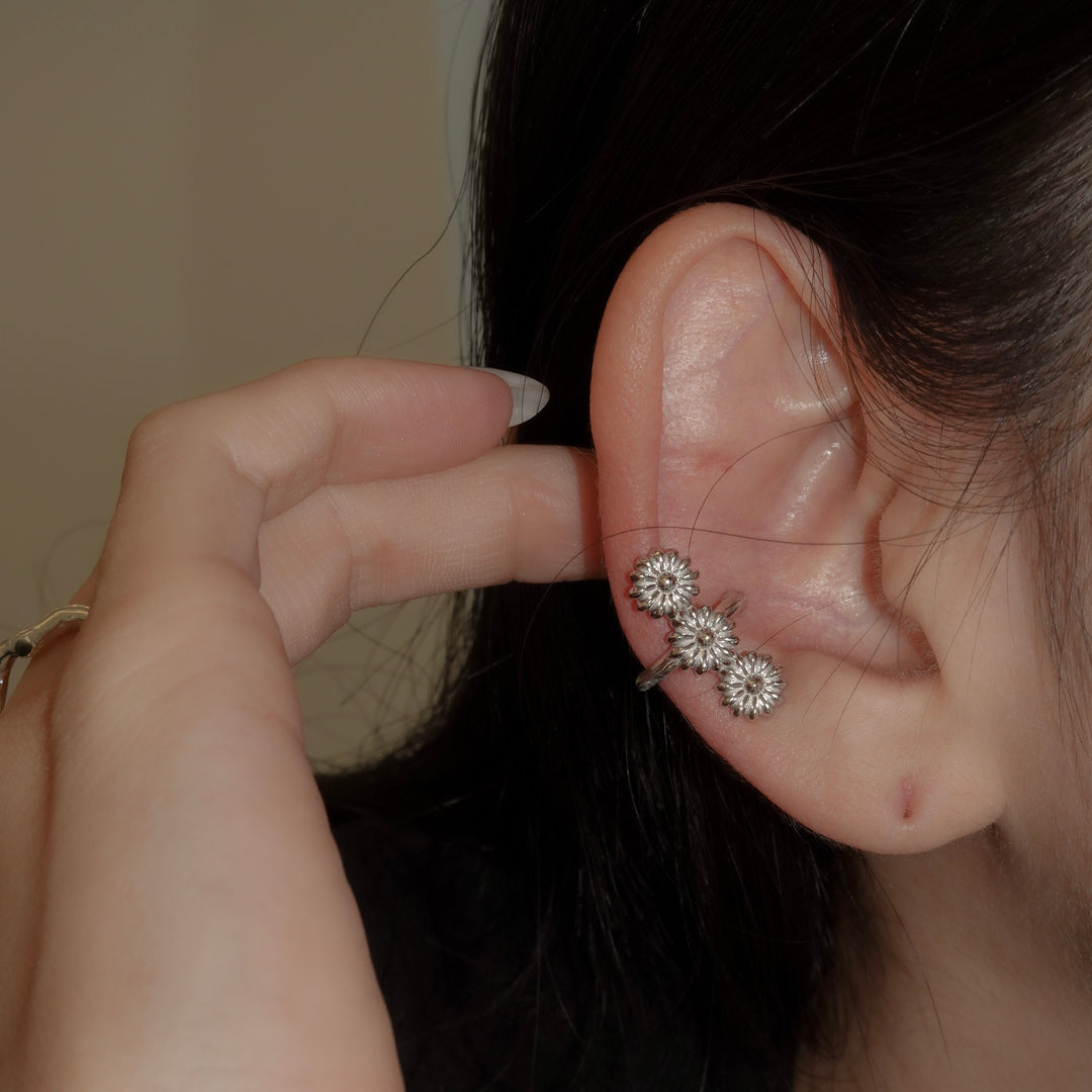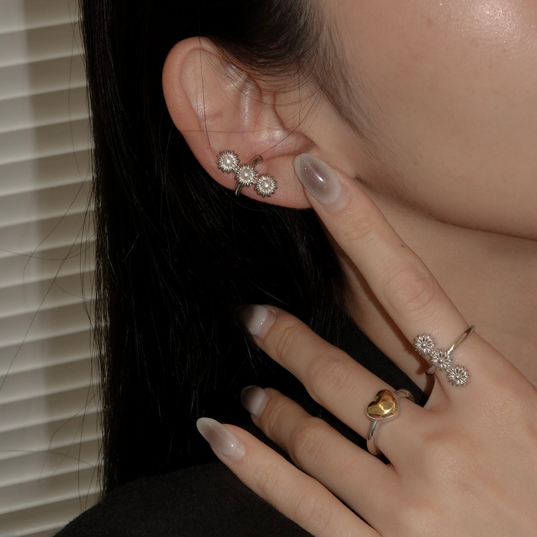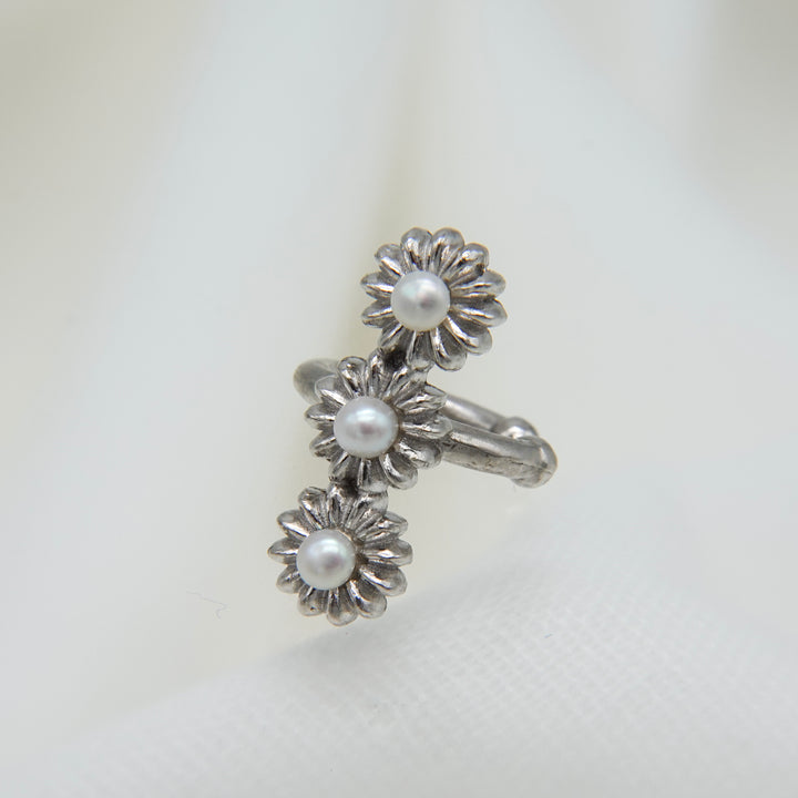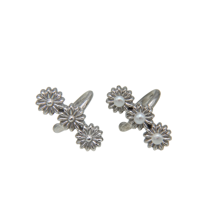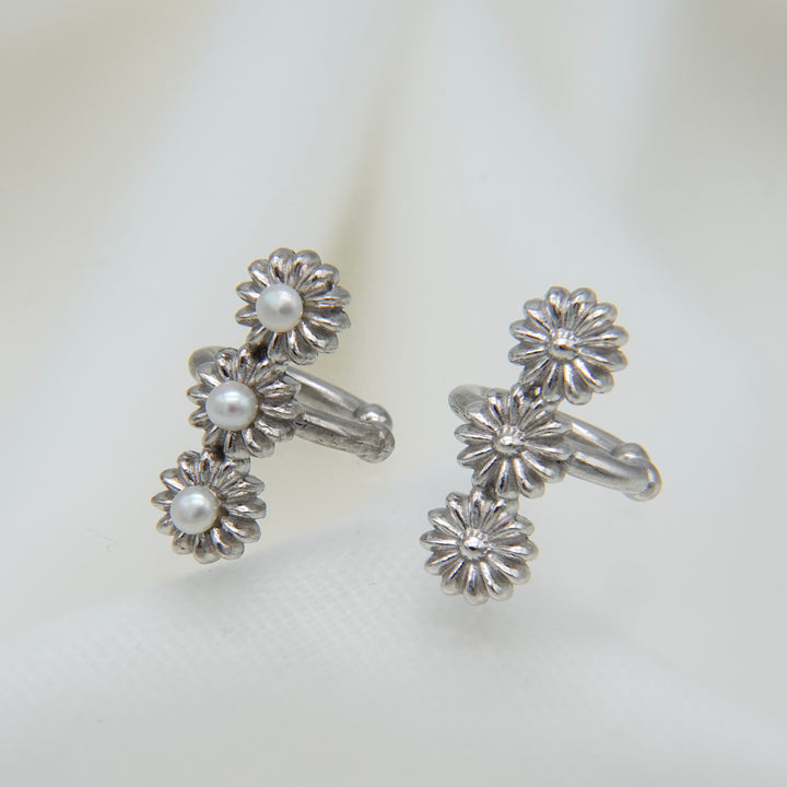花が連なったデザインの華やかなイヤカフ。プレーンなタイプとパール有りのタイプからお選びください。