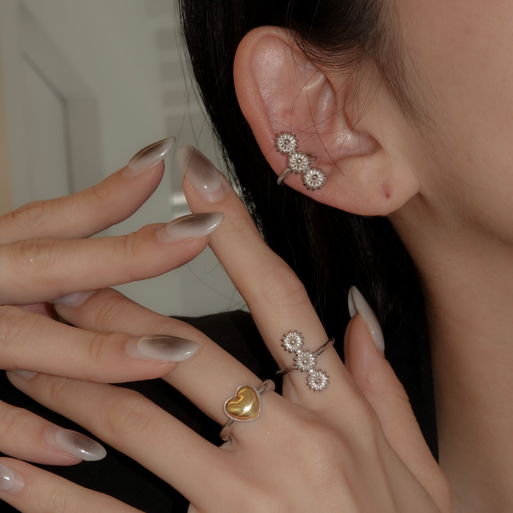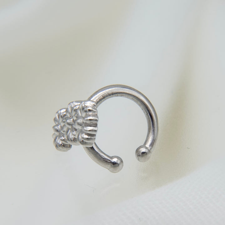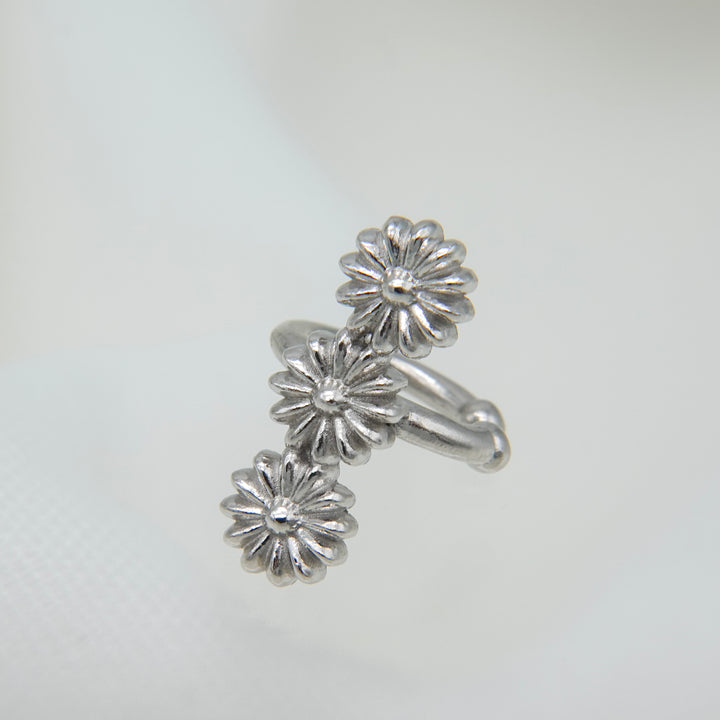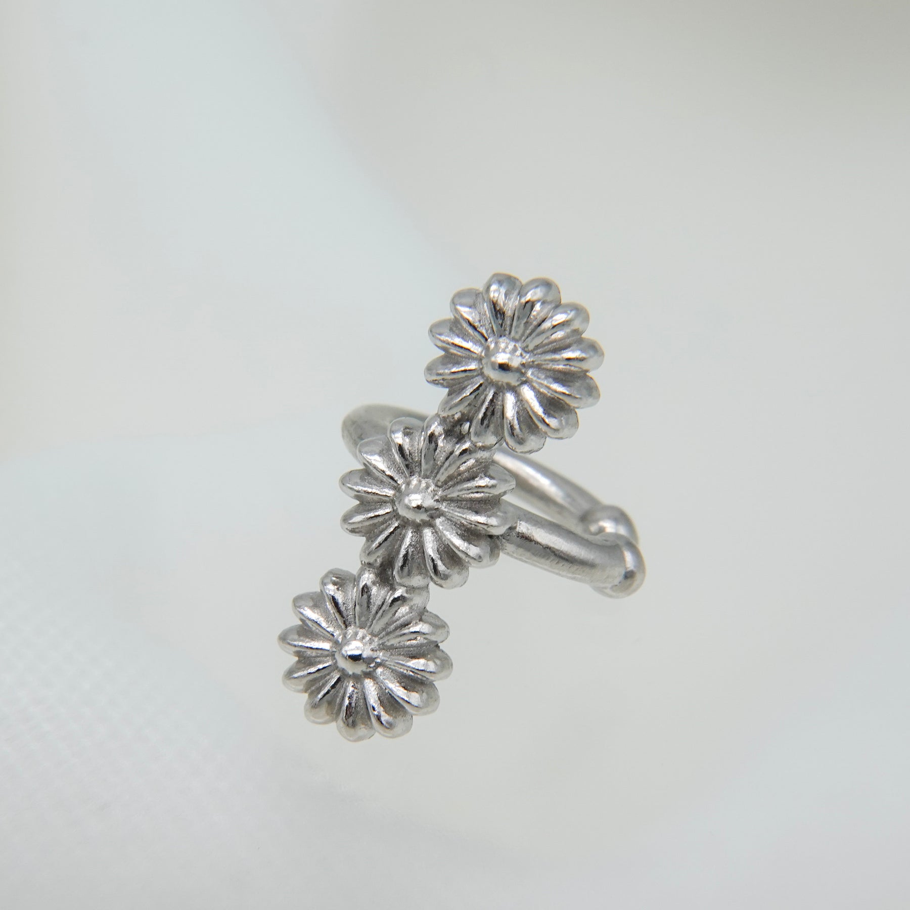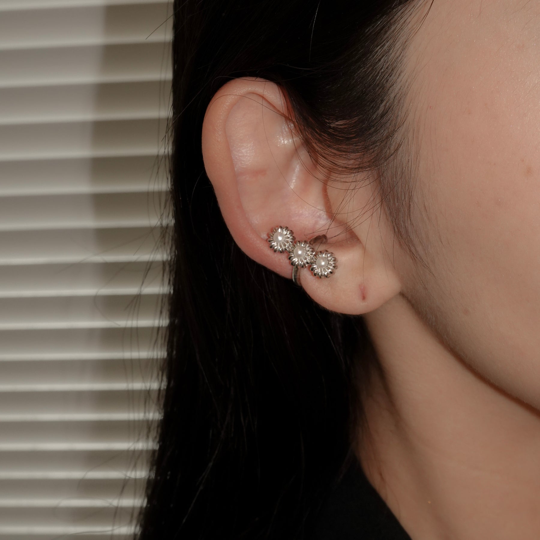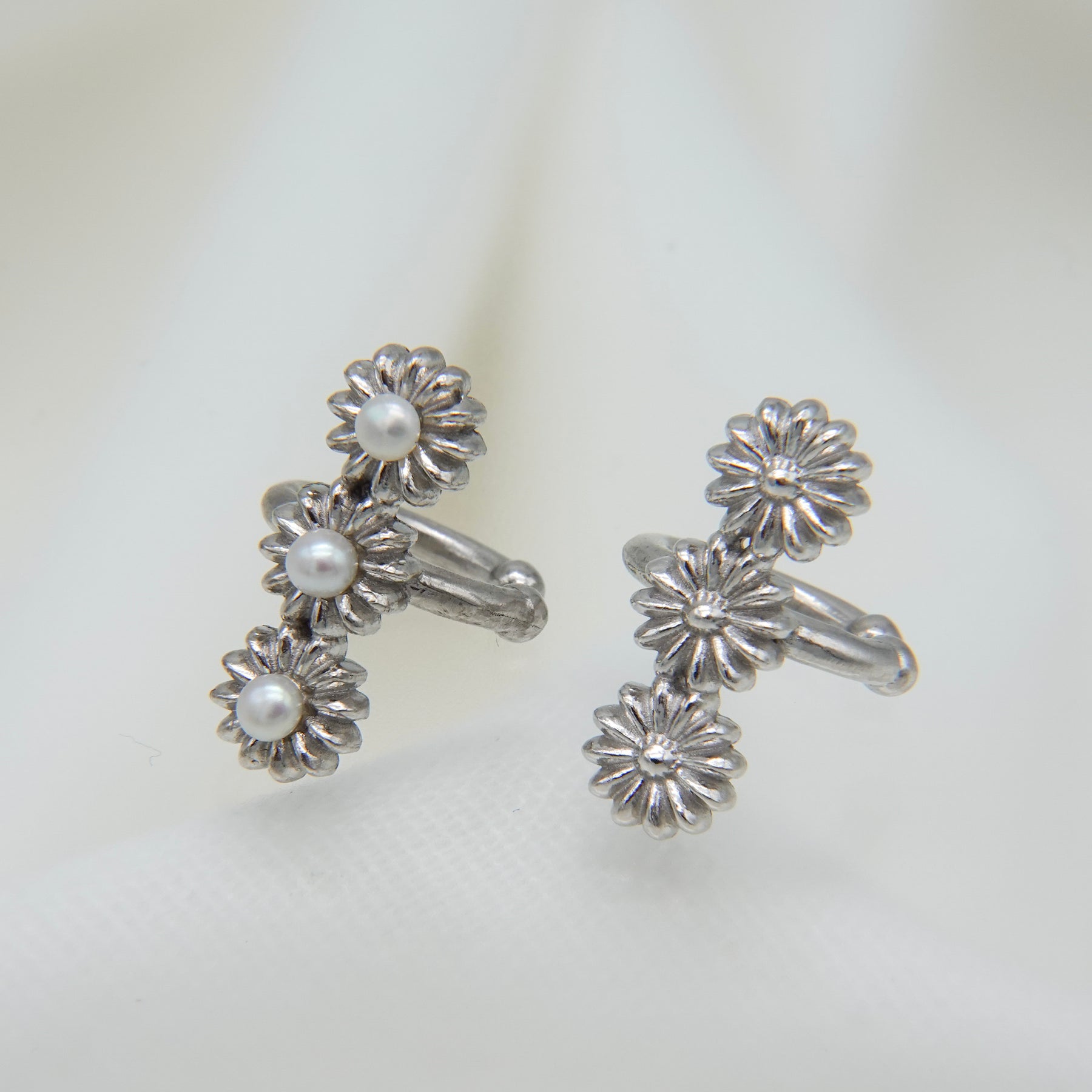 花が連なったデザインの華やかなイヤカフ。プレーンなタイプとパール有りのタイプからお選びください。