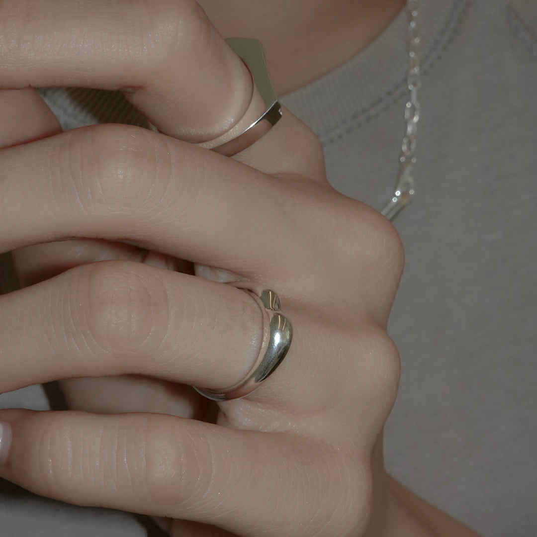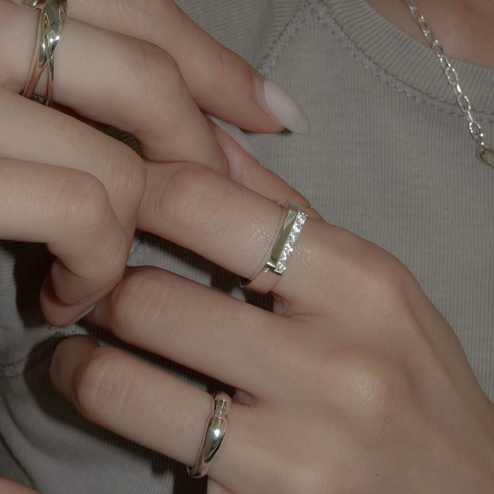 どの向きで着けても表情が異なるように、0.1mm単位の調整を繰り返し完成させたというリング。様々な向きでその表情をお楽しみください。