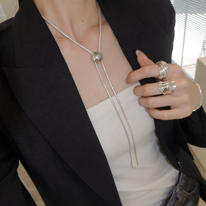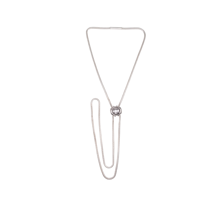 前後2wayで使用できるデザインネックレス。パーツ類を極限まで排除したミニマルなアイテムです。